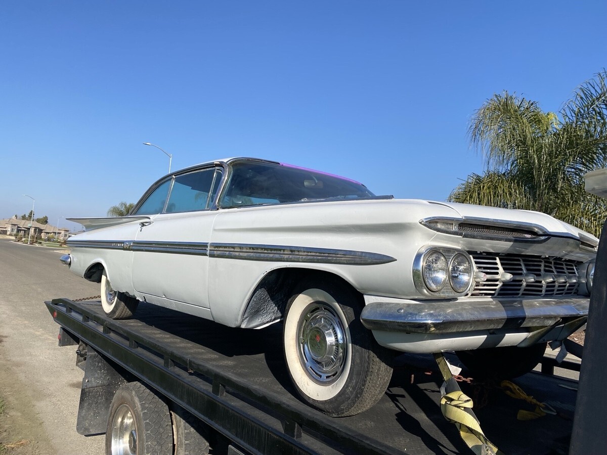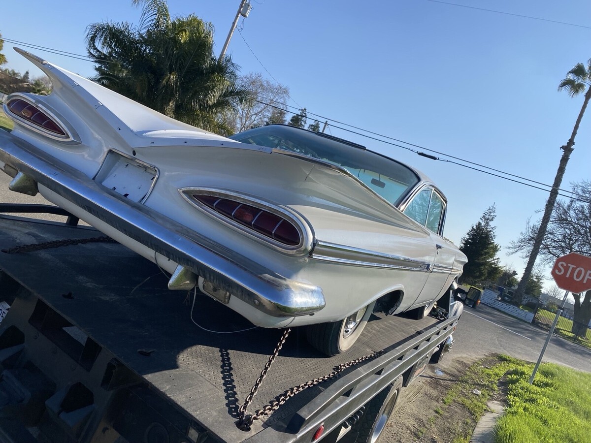 This 1959 Chevrolet Impala is an original vehicle that needs work and is not regularly driven. The car has a grey color and has been owned by the current owner for 1 year. The mileage on the vehicle is 74000. The title of the car is clean.