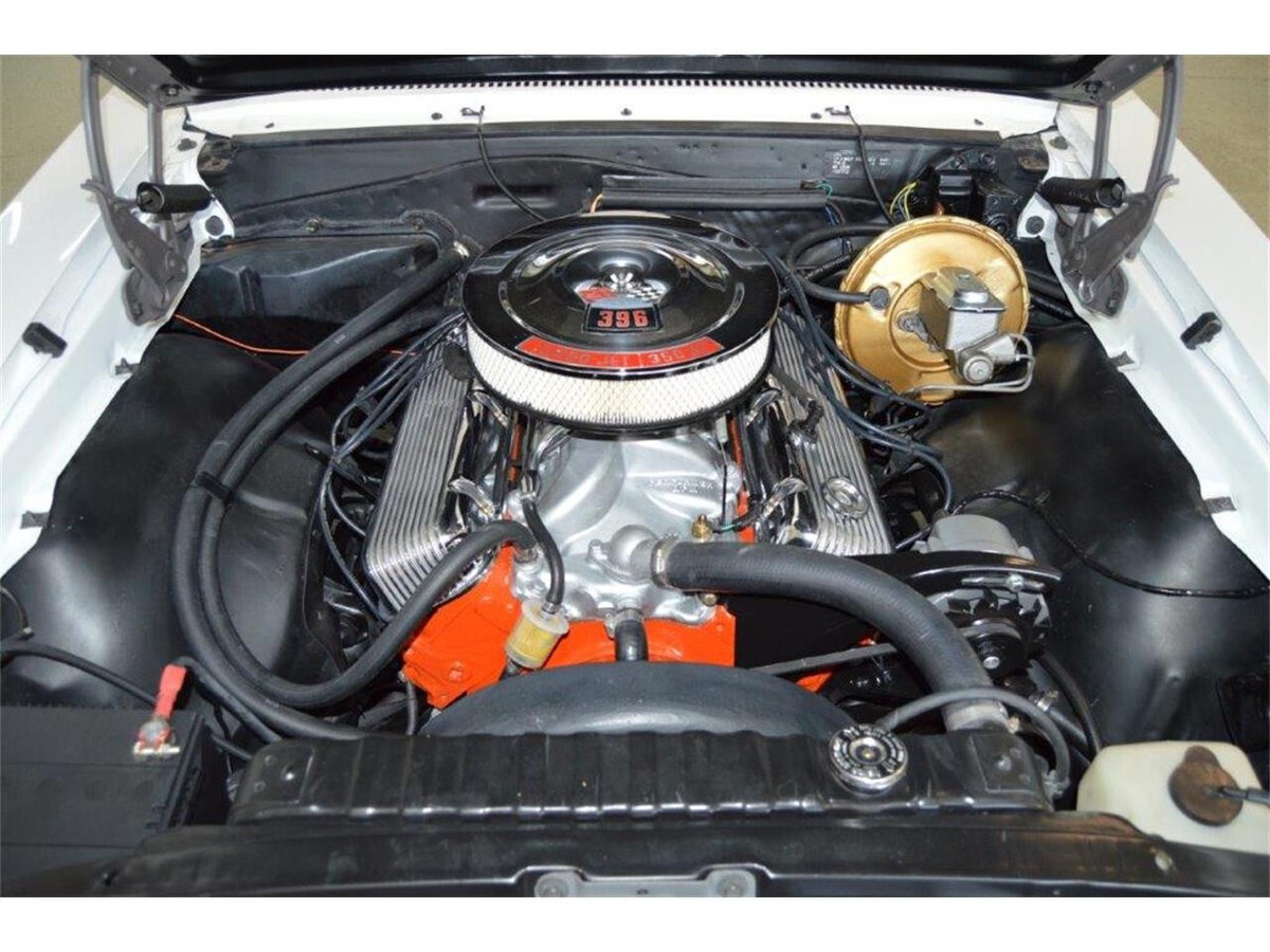 Period correct 396 V8 engineTH400 automatic transmission12 bolt posi rear end with a 3.73 gearPower steeringPower brakesBlack Jack headersHEI IgnitionEdelbrock Performer intake750 Holley carburetorTrue 138 SS carExcellent black bucket seat interiorDoor panels, headliner, dash and console are like newAftermarket AM/FM stereoDetailed trunk space like from the factoryBeautiful exterior base/clear finishSanded and buffed to perfectionMost of the chrome, glass and trim has been replacedDetailed undercarriageNew fuel tankSway bars front and rearDual exhaustOriginal floors, rust freeOriginal metal throughout this car
