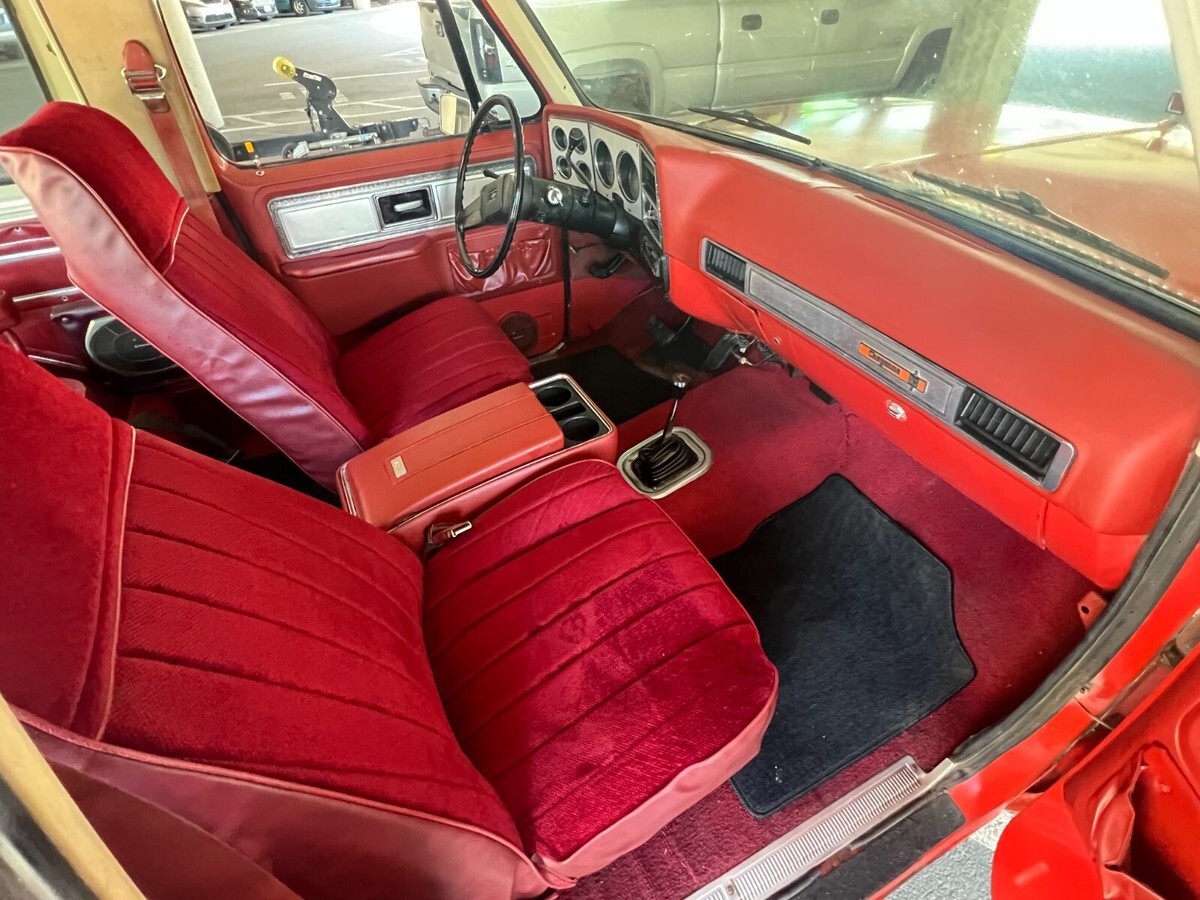The factory cardinal red paint is pretty amazing for 47 years with the normal touch ups over the years. The front seats have been freshly reupholstered with top notch materials. The engine runs flawlessly, and the new transmission shifts excellent. Original carpet still shows well for its age. Factory A/C functions but could use some freon. Brakes are very good, tires are nice 31x10.5R15, and she goes down the road straight and comfortably. Edelbrock performance intake manifold/Edelbrock carburetor with new distributor, gaskets, points, plugs, wires and she fires up easily every time. Its equipped with a heavy-duty tow/trailering package that can definitely handle whatever you throw back there. The factory dual exhaust sounds great and has newer mufflers and pipes, tips. The Manual Roll-Down Rear Glass functions seamlessly. Factory 6 lug rally wheels and beauty rings are the icing on the cake. The original owner’s manual still resides in the glovebox ???? and the original sales brochure- which is just pretty awesome! It’s also equipped with rear mount spare tire for easy access. The dash has a Kenwood Am/Fm cassette deck and there are 4 mounted speakers which function and sounds good. Lights/horn/gauges all function and we just ordered a new speedo cable only as the original needle has the typical bounce ???? the undercarriage is in excellent condition as expected. This is a remarkable and beautiful k5 with excellent care over the years and definitely gets thumbs up wherever we drive.