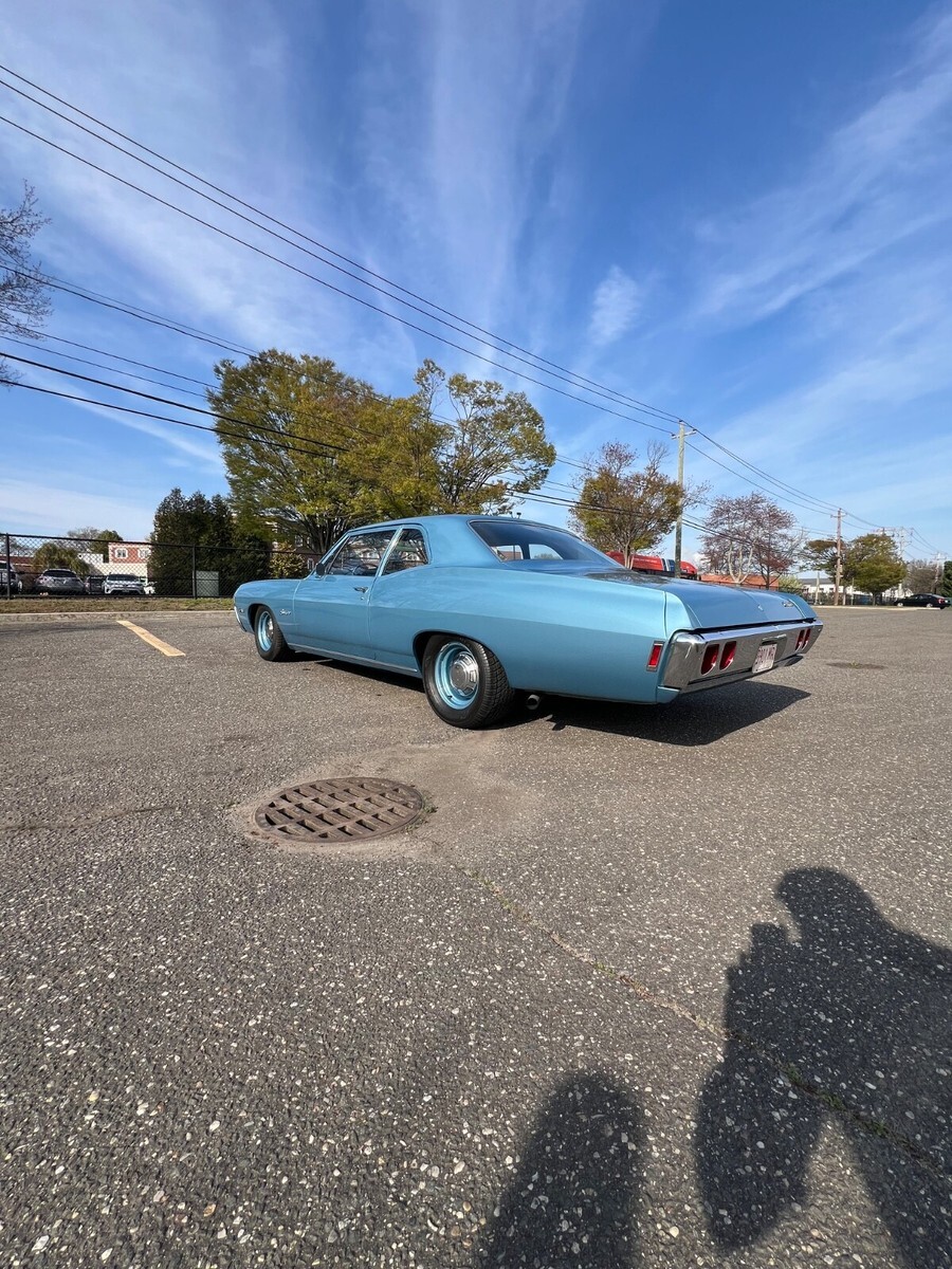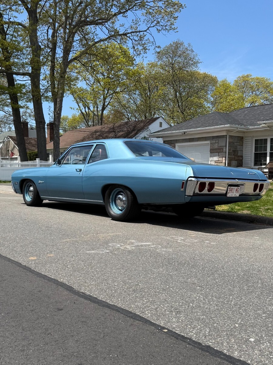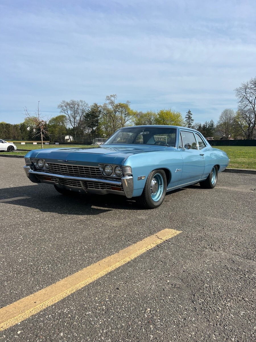 Re-Listed with lower reserve! Up for Auction 1968 Chevrolet Biscayne - Equipped with the Big Block L72- 427-425HP-Factory 11 to1 Pistons -4 Bolt Main -Factory Solid Lifter -Aluminum Snow Flake large rectangular aluminum intake manifoldwith the Factory 780CFM Holley carb- 4 Speed Muncie Transmission, 12 bolt differential with 3.73 gears and Bench seat !1 of 124 4 speeds built, with only a hand full remain and rarely come up for sale . This is a great opportunity to obtain one of these Sleepers. Besides the 427( CE854469) and the 4 speed the car is equipped with the gauge package,Tilt Wheel, seat belts including the shoulder belts all correct date coded, radio delete, minimal chrome, power steering, HEI ignition has been adde, Steel wheels with dog dish caps with P245/60R15 fronts and P295/50r15 rears, Dual exhaust. Car is extremely clean inside / outside and underneath. Runs and drives great, all glass is perfect, seats are in great shape, spare, jack etc is present.The Paint is beautiful and shines very well. So now Immerse yourself in the nostalgia of classic American muscle with the 1968 Chevrolet Biscayne. This iconic coupe, finished in an eye-catching Grotto Blue, embodies the essence of a bygone era. It boasts a robust 7L 427 -425 HP engine with a 4- speed manual transmission, ready to deliver an engaging driving experience. The Biscayne's interior is dressed in a soothing blue, offering a comfortable and stylish cockpit for its two-seater configuration. Equipped with power steering and boasting a clean vehicle title, this collector's car maintains its original left-hand drive setup, adding to its authenticity and charm. With a substantial 425 horsepower under the hood and only 49,705 miles on the odometer, this Chevrolet is a testament to timeless design and enduring quality. This is a car you will not see another of at a car show / cruise night. The value of these is just going to go up, as less and less come up for sale. Arrangements can be made for private inspection and test drive. Please feel free to ask any questions, I also have plenty of other pictures and videos. You can also contact me by cell 631-873-9306-Gary.Be the envy of your friends as its difficult to actually see one, no less one for sale. Good luck bidding and thanks for looking.