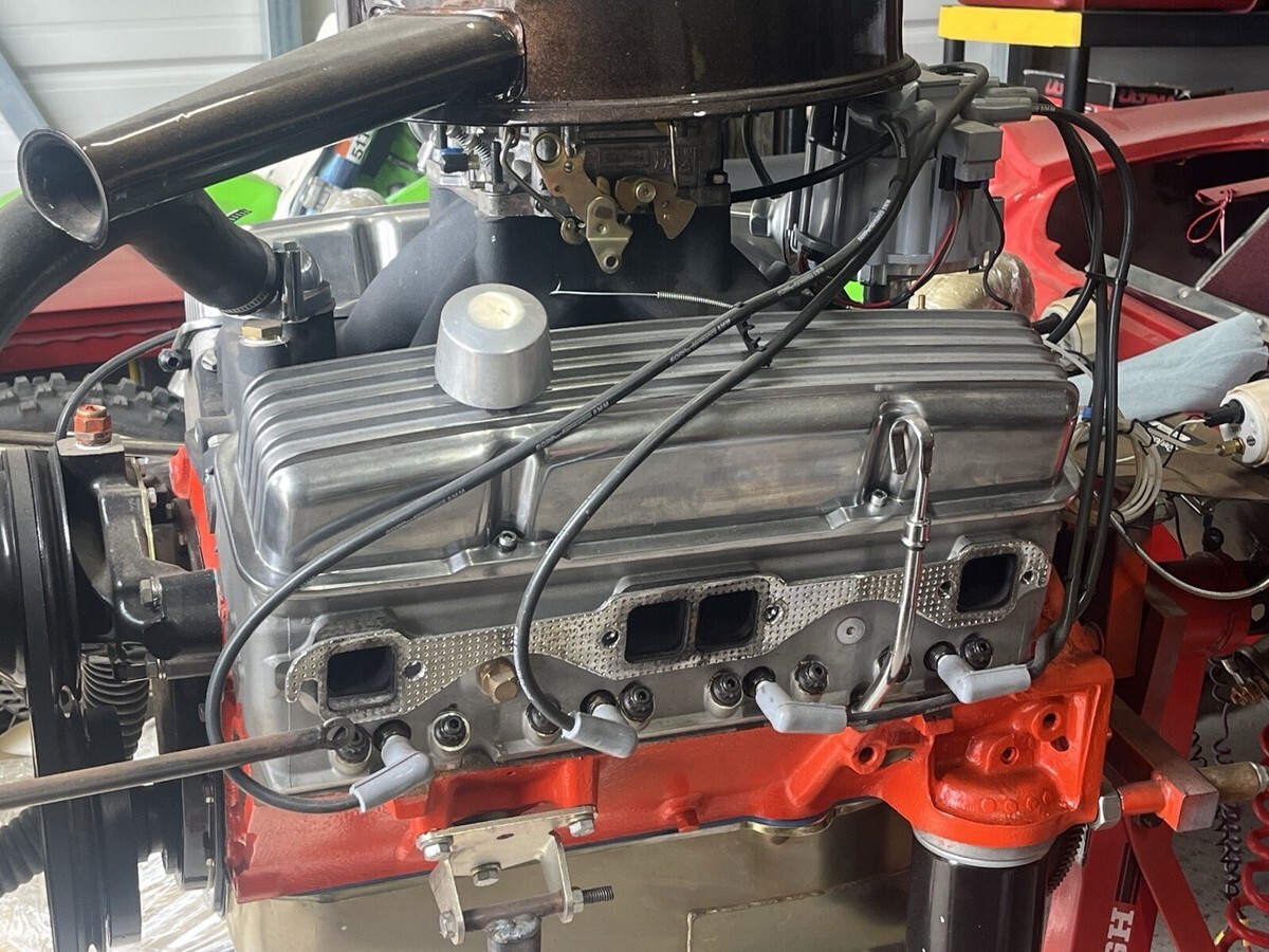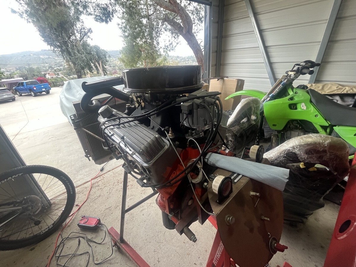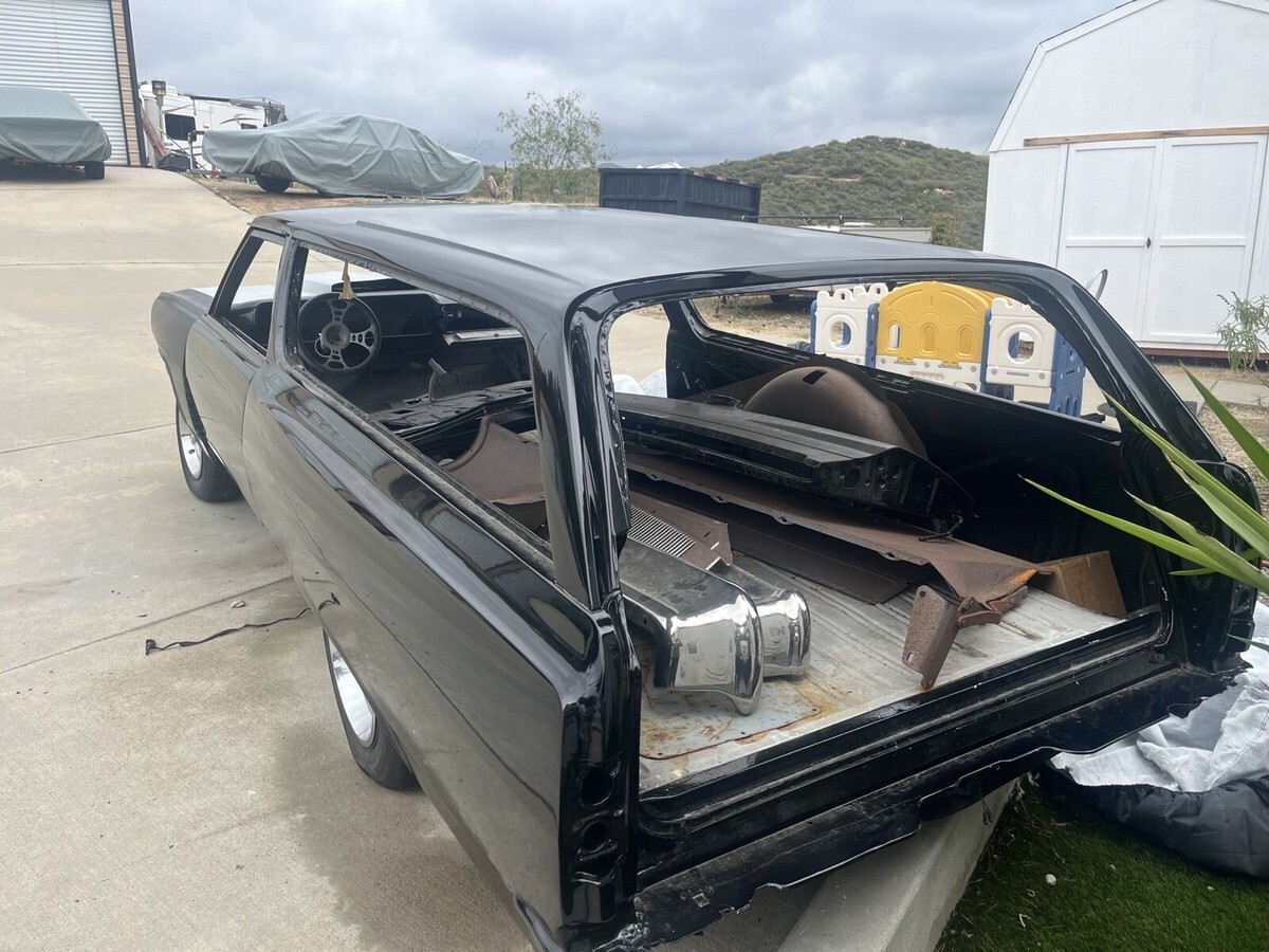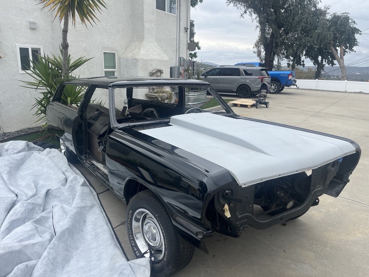 Project car. Body work mostly complete, original 283 V-8 ( rebuilt and test ran), t350 Transmission ( rebuilt), new brakes and eriosuspension, original interior has been reupholstered. Almost all parts to reassemble, all glass included and in great condition.