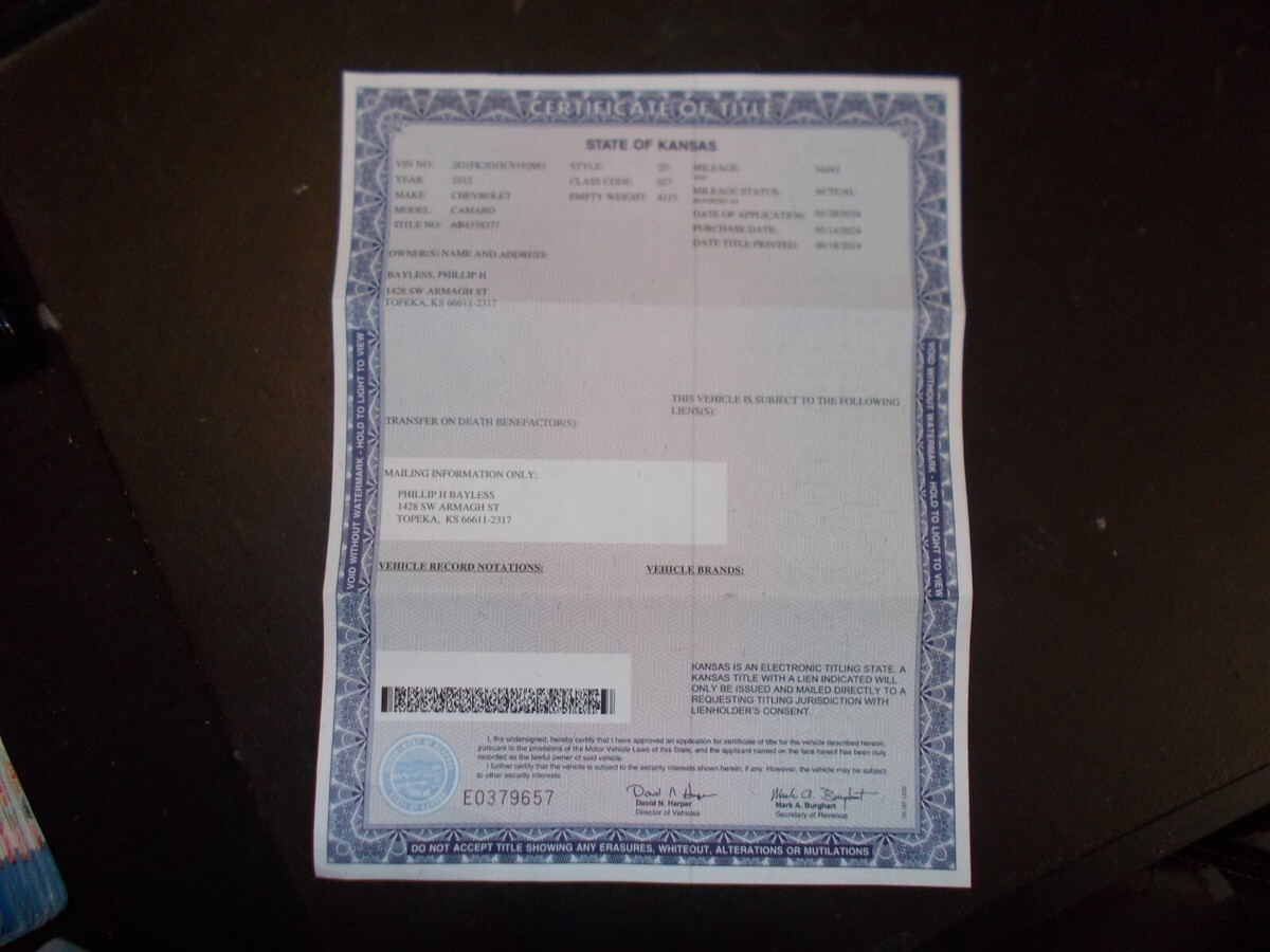 This is a new Build - Its a 2012 Chevy Camaro SS Convertible Converted into a 1969 Chevelle SS Convertible. It is a Fiberglass body, has all new chrome from OPG parts for the 69 Chevelle. Camaro has 34K original miles and has good Clean Title on it with a good Clean Car Fax. Car has juist been appraised for 185K, so car is very nice condition. Car has all the option that the Camaro has - Leather Interior, P/Windows and Lock. Cruise control, Power heated seats on both sides, 6 speaker Boston stereo. rermote start, keyless entry, has electric door poppers on doors, P/ Top, Heads Up Display, back up Camera, P/Trunk, has the Factory LS3 Motor, Automatic 6- speed Trans, 327 axel ratio, tap shift feature, has muffler delete with factory 69 chrome tips. Has ZL1 Rims on it with 305/30/20s in rear and 285/30/20s in the front. It's a very fun car to drive. Buyer pays for transporting car - I know a transporter that we can arrange car to be delivered right to your driveway. Buyer must pay 1,000 security deposit within 24 hrs of auction ending and has 7 days to pay full balance by Bank Wire only. I reserve the right to end Auction early, if I choose. Call 785-289-3290 for more information. I welcome anyone to Inspect the car before purchasing. I put the Vin Number down here because didnt want to enter it up above being a 17-digit Vin for the 2012 Camaro verses the old Vin of a 69 Chevelle. 2G1FK3DJ5C9192883.I have a walk around video on Face book. Go to Facebook and type in search box 1969 Chevelle SS Convertible LS3 to see video. I didnt include underside photos of car because its the same as the original Camaro