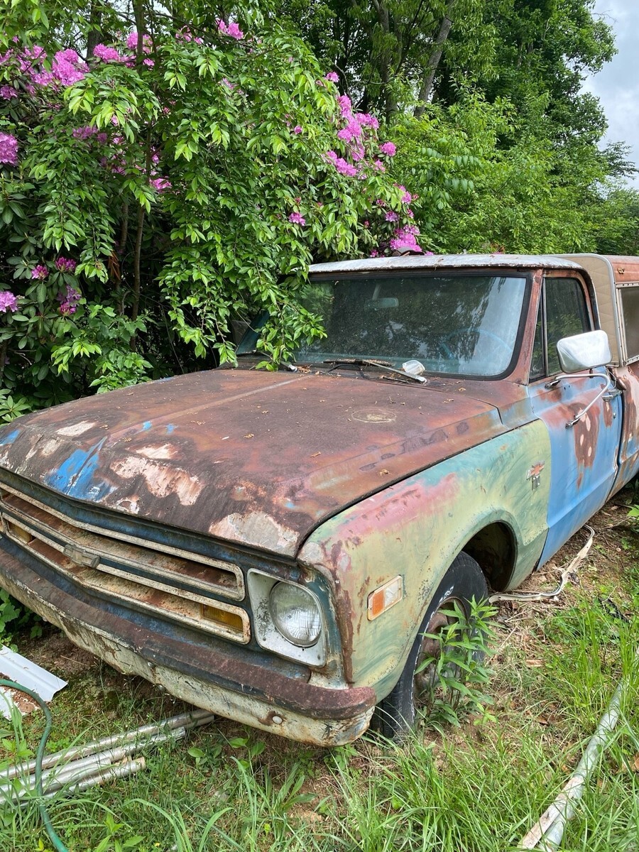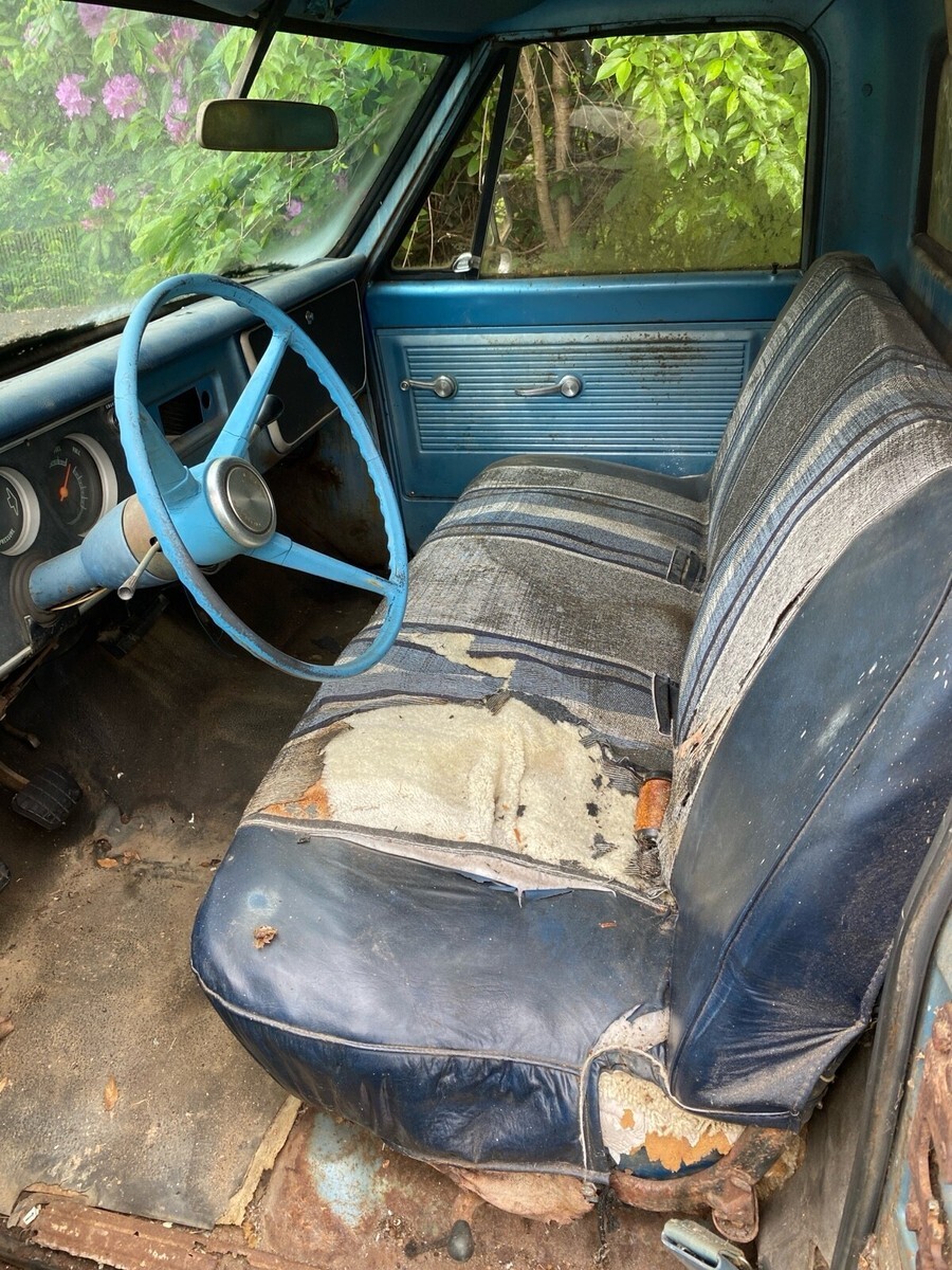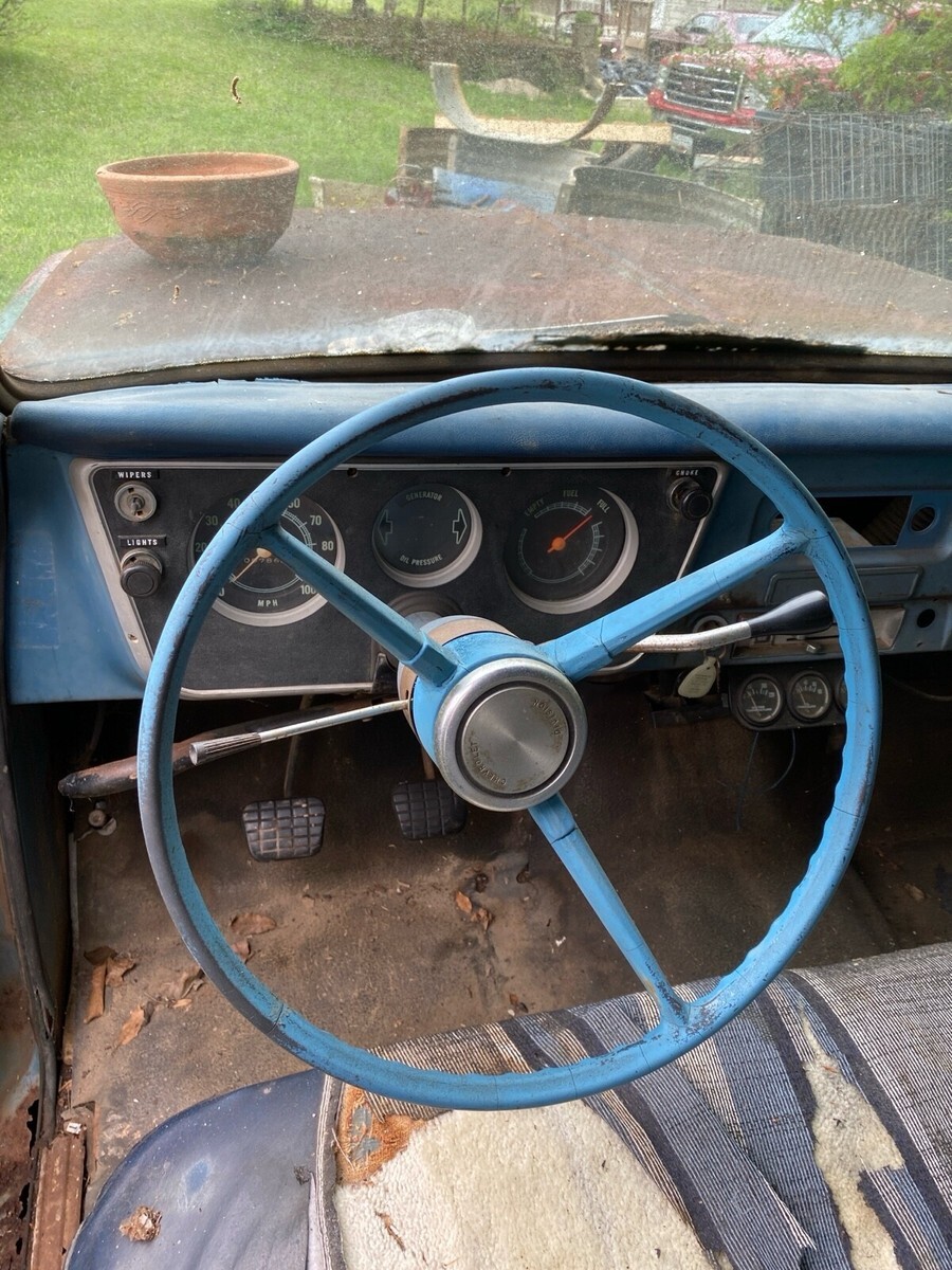 This 1964 Chevrolet C-10 is an original vehicle offered for sale by the original owner. The vehicle is in need of work and is not regularly driven. It features a blue color and has a clean title. The mileage on the vehicle is 97868.