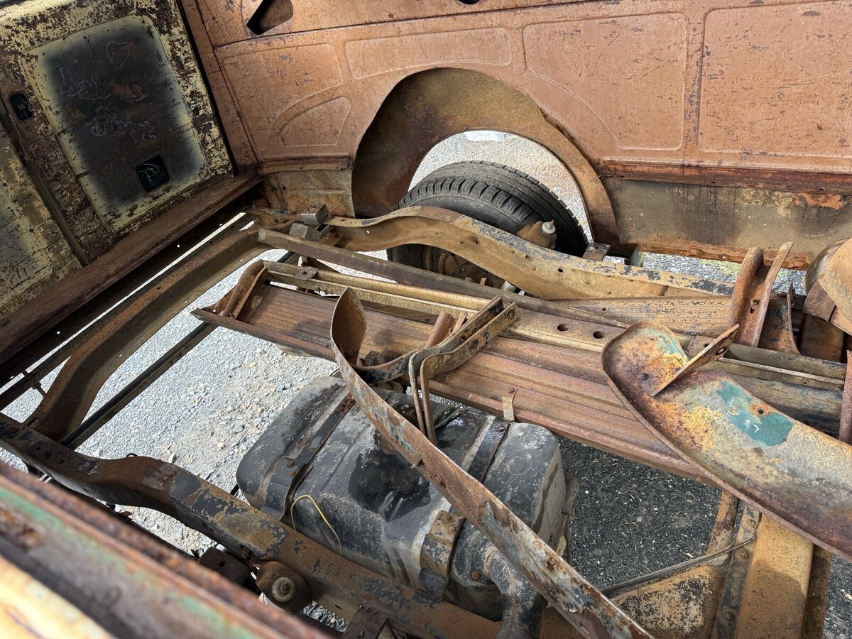 rear floor has already been removed and rear tubs cut out for chassis swap..sitting on orig frame..rusty but not awful.has running boards and inside window garnishes and front seat only.cheap suburban project with title..for sale