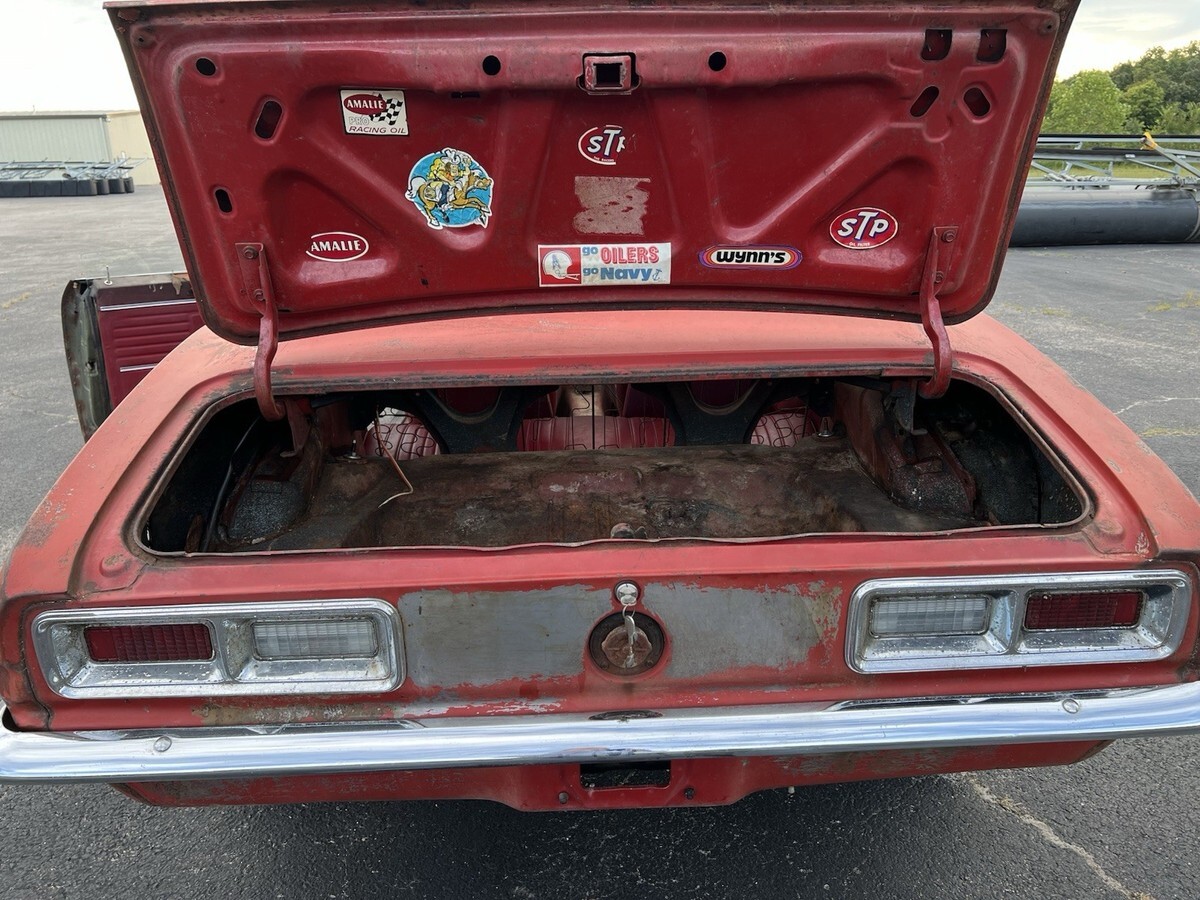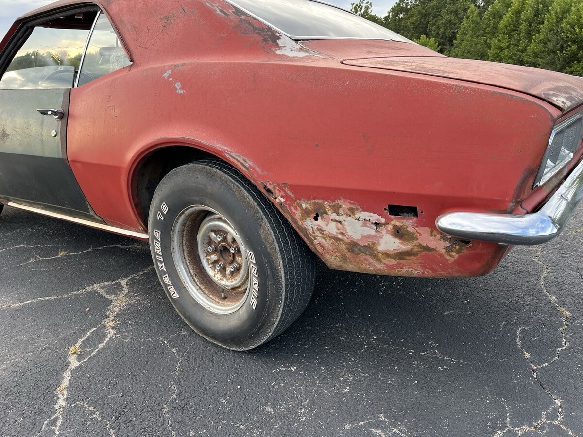 1968 Camaro V8 400ci. Original 12 Bolt Posi3:73 ratio.Vehicle had been sitting in a barn since the late 80’s. Overall a solid car. Factory V8 and manual transmission car.It now has a 400ci SBC and a rebuilt TH350. Aluminum radiator, Black Magic fanNew carb and intake. HEI distributorFlowmaster mufflers. Goodmark fendersDisc brake kit installed on the front.Runs, drives, and stops.New shocks and fuel tankComes with wiring harness and the clutchZ bar. New trunk pan included.Shipping companies available in town