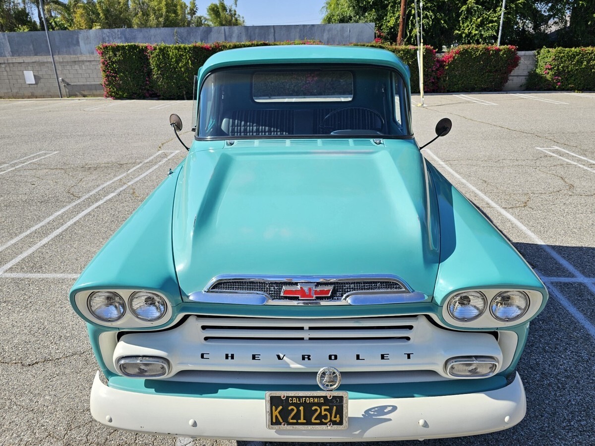 An original California 1959 Chevrolet Apache 3100, A California black plated inline 6 w a 3-speed manual unbelievable condition as seen in the photos the truck runs and drives 70 mph on the freeway it has been properly maintained by a GM mechanic it was his personal truck a solid truck with no rust new tires turnkey