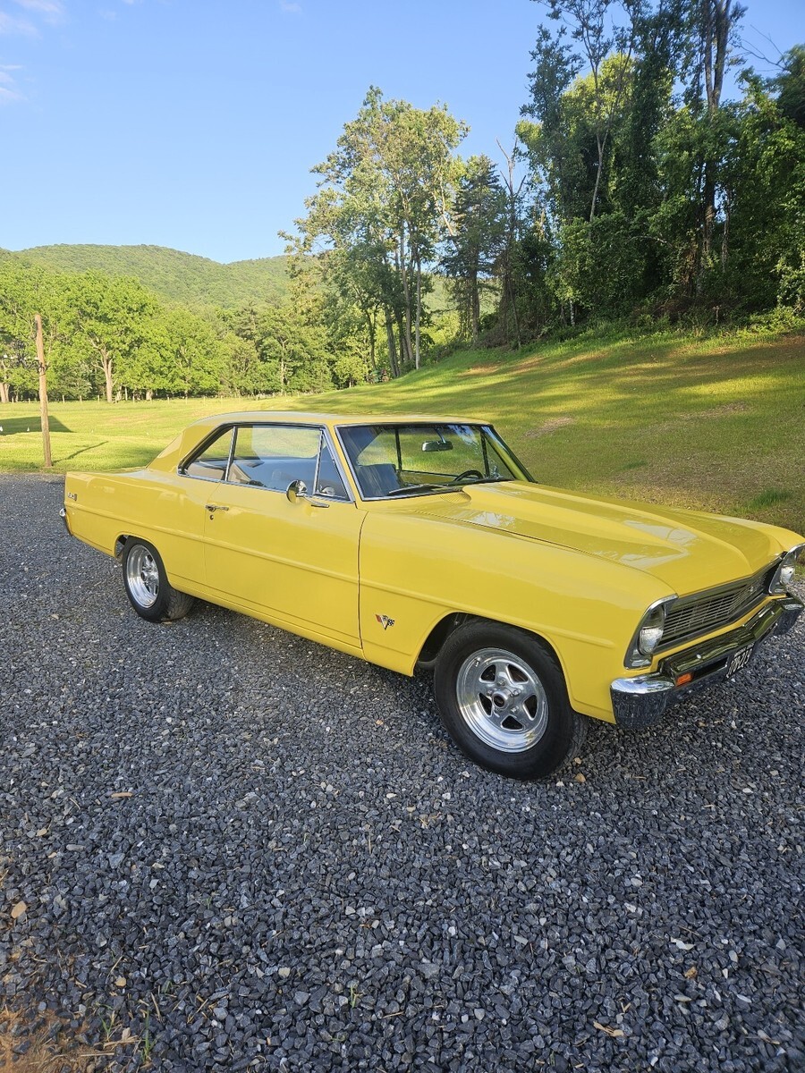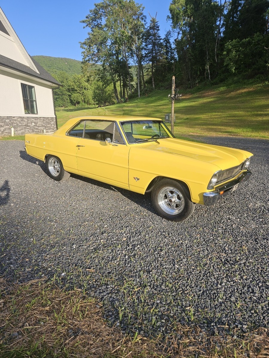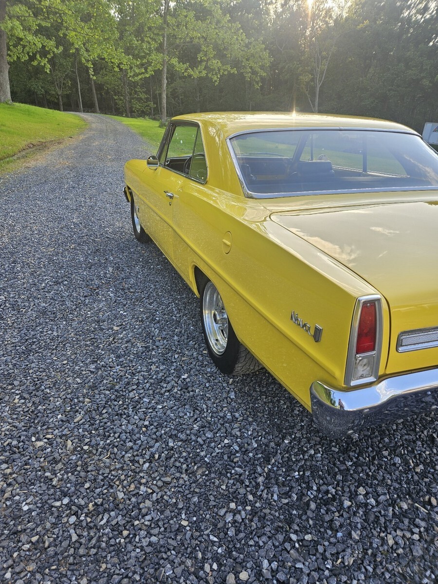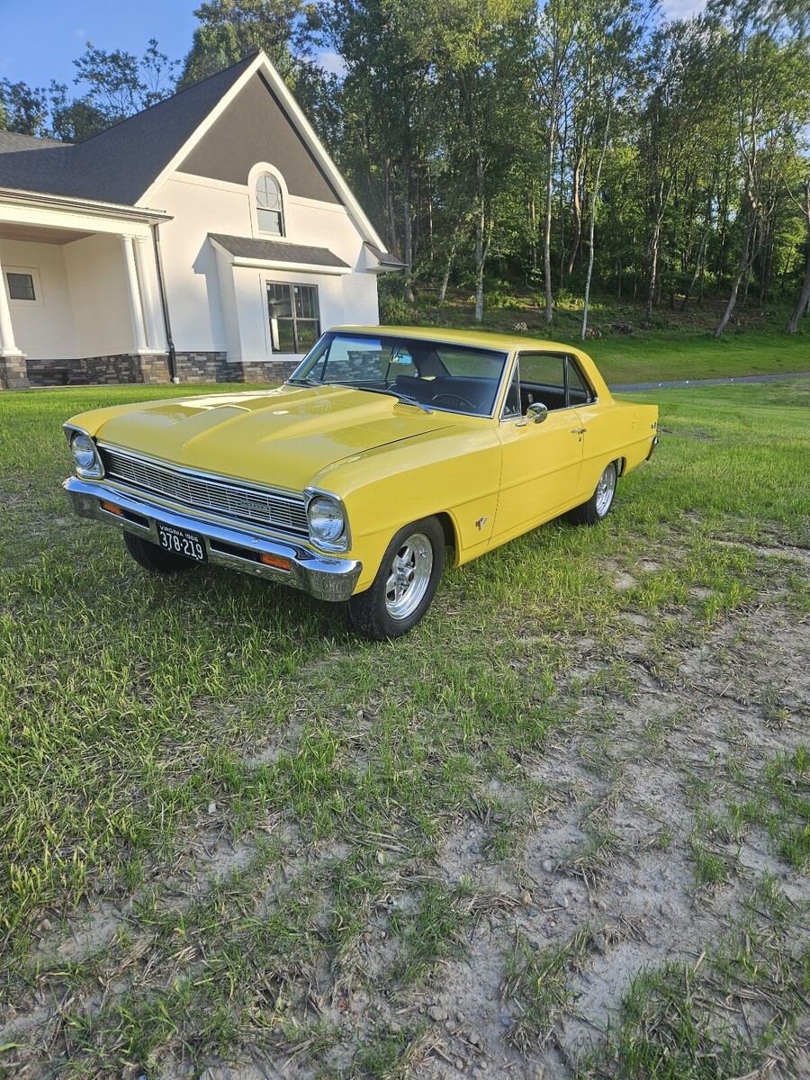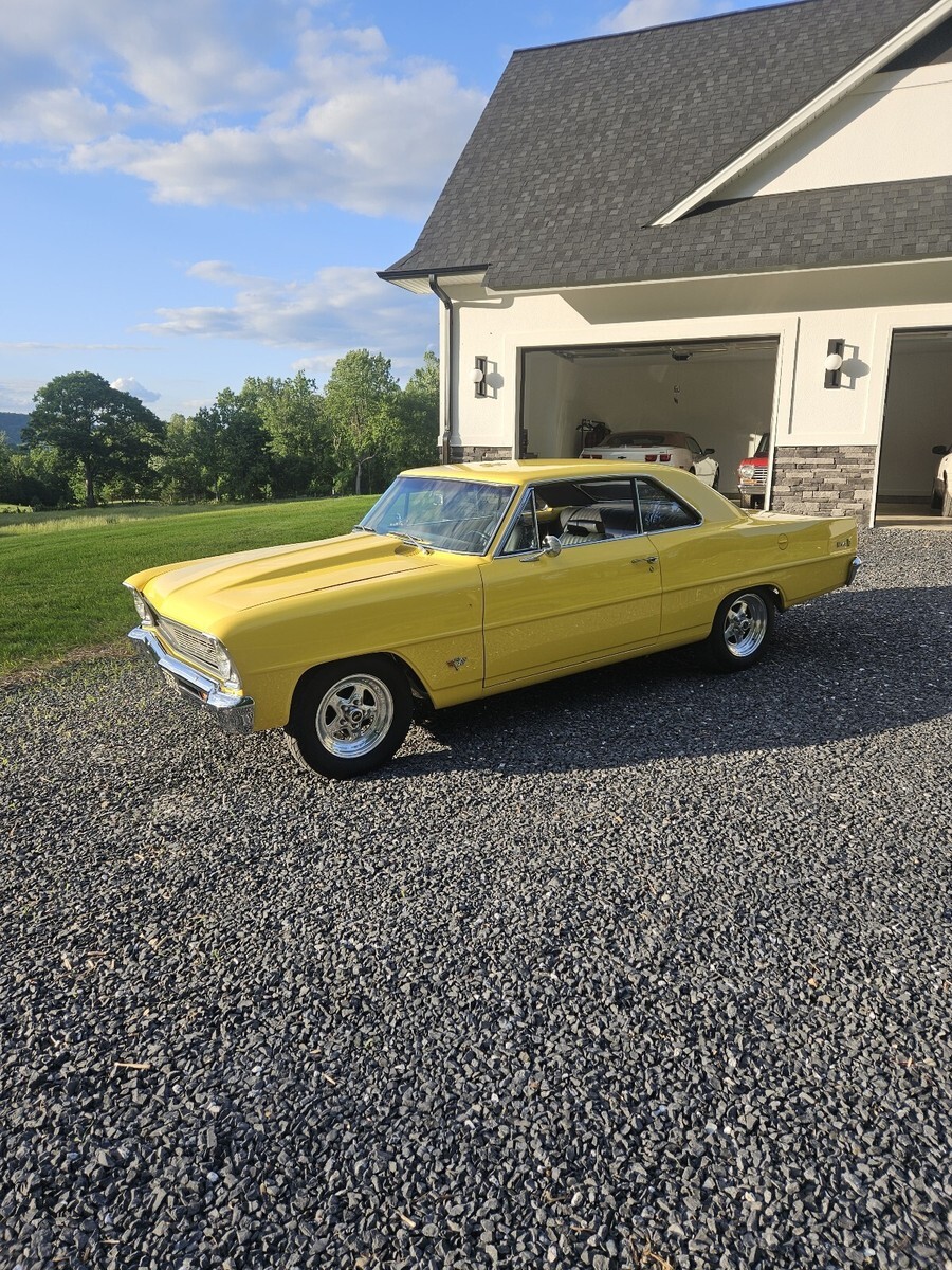 This 1966 Chevrolet Nova Restored from the ground up and finished in 2018 garage kept and driven about 2000 miles. Undergoing some upgrades and modifications with updates to the engine, interior, and drivetrain. I have owned this car since 1994 and restored it myself with some outsourced professional help. I have videos upon request of the interior and the exterior. I can send them how ever is good for you to view. Paint & body Beautiful chrome yellow ppg paint Buffed to a high gloss paying attention to all the body lines and replacing the bumpers,mirrors,lights, grille,light bezels,some chrome that was available. Replacing All weather moldings and emblems available. New gas tank and sender. New CCP front upgrade kit and disc brakes New upgraded steering arm set up and duel brake master cylinder with all new brake lines. Floor boards are all original with no repairs! The Under body was cleaned and painted a semi black. Engine, Builder says 500+ plus hp. 385 stroker with 11.1 comp. 6 inch rod. Aluminum heads 2.05 in.valves 1.65 Ex Howards 538 solid lift cam Billet distributor Demon carb 150 hp pillable Speed Tech NOS system. 350T automatic trans 3000 stahl Jet hot headers 12 bolt rear 373 gears and positive trac. Interior, New carpet, recovered seats,new door panels,headliner, deck tray mirror, dome light, sun visors, window winder arms, gauges are auto meter white face. Shifter is quarter stick with spray button and reverse lock out. Request any picture and ask question I can answer them to the best of my ability. My personal cell will be giving out to serious buyers and I will assist in anyway I can with transporting to new home.
