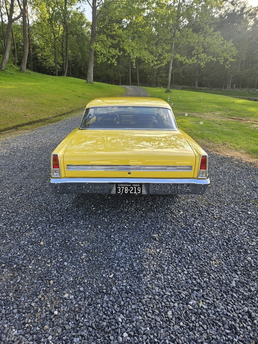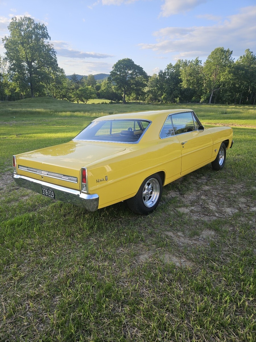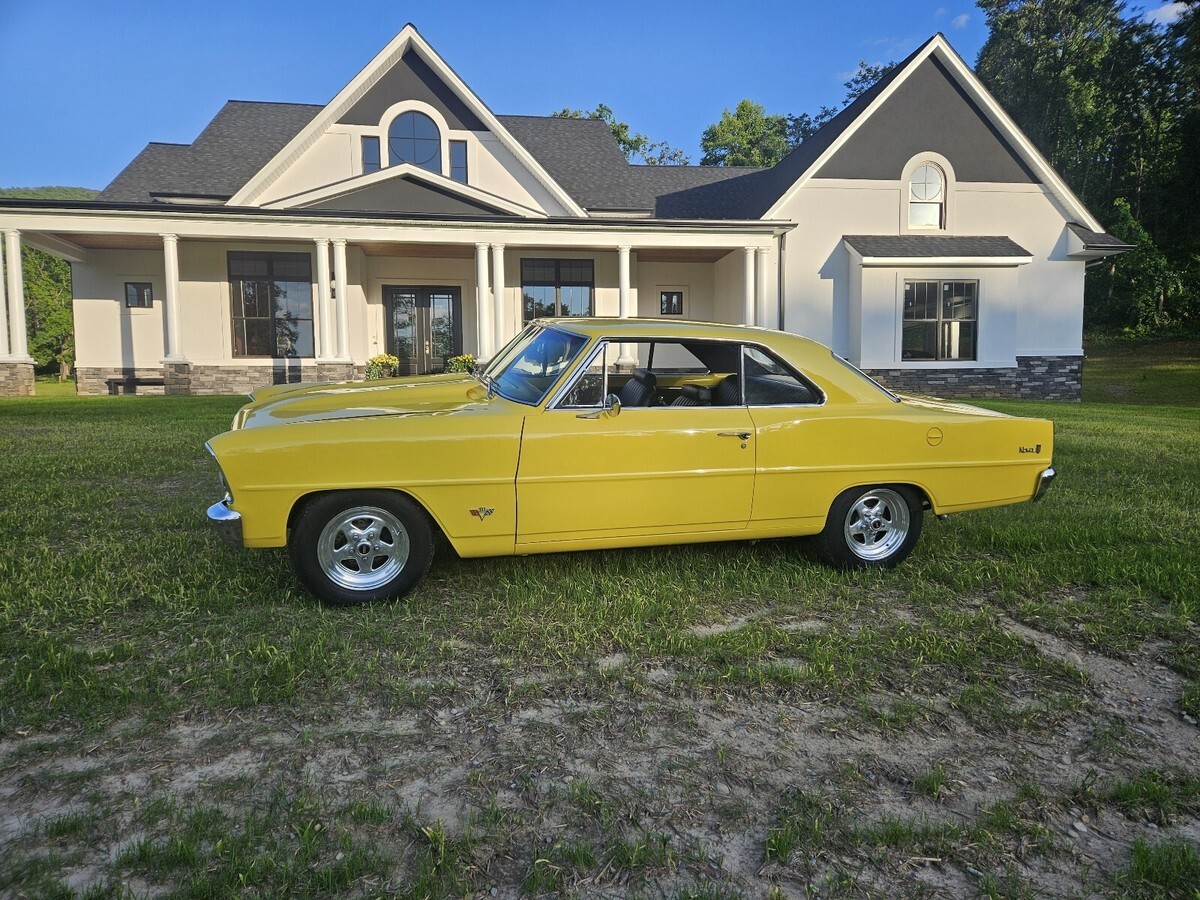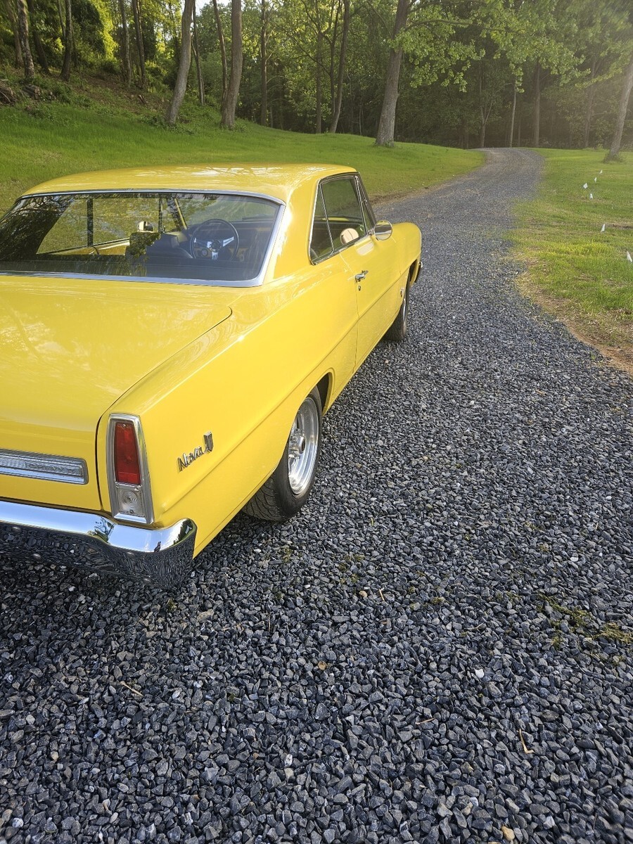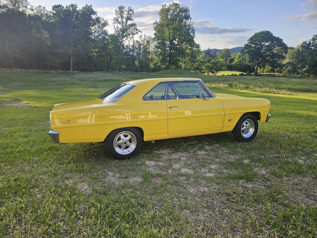 This 1966 Chevrolet Nova Restored from the ground up and finished in 2018 garage kept and driven about 2000 miles. Undergoing some upgrades and modifications with updates to the engine, interior, and drivetrain. I have owned this car since 1994 and restored it myself with some outsourced professional help. I have videos upon request of the interior and the exterior. I can send them how ever is good for you to view. Paint & body Beautiful chrome yellow ppg paint Buffed to a high gloss paying attention to all the body lines and replacing the bumpers,mirrors,lights, grille,light bezels,some chrome that was available. Replacing All weather moldings and emblems available. New gas tank and sender. New CCP front upgrade kit and disc brakes New upgraded steering arm set up and duel brake master cylinder with all new brake lines. Floor boards are all original with no repairs! The Under body was cleaned and painted a semi black. Engine, Builder says 500+ plus hp. 385 stroker with 11.1 comp. 6 inch rod. Aluminum heads 2.05 in.valves 1.65 Ex Howards 538 solid lift cam Billet distributor Demon carb 150 hp pillable Speed Tech NOS system. 350T automatic trans 3000 stahl Jet hot headers 12 bolt rear 373 gears and positive trac. Interior, New carpet, recovered seats,new door panels,headliner, deck tray mirror, dome light, sun visors, window winder arms, gauges are auto meter white face. Shifter is quarter stick with spray button and reverse lock out. Request any picture and ask question I can answer them to the best of my ability. My personal cell will be giving out to serious buyers and I will assist in anyway I can with transporting to new home.