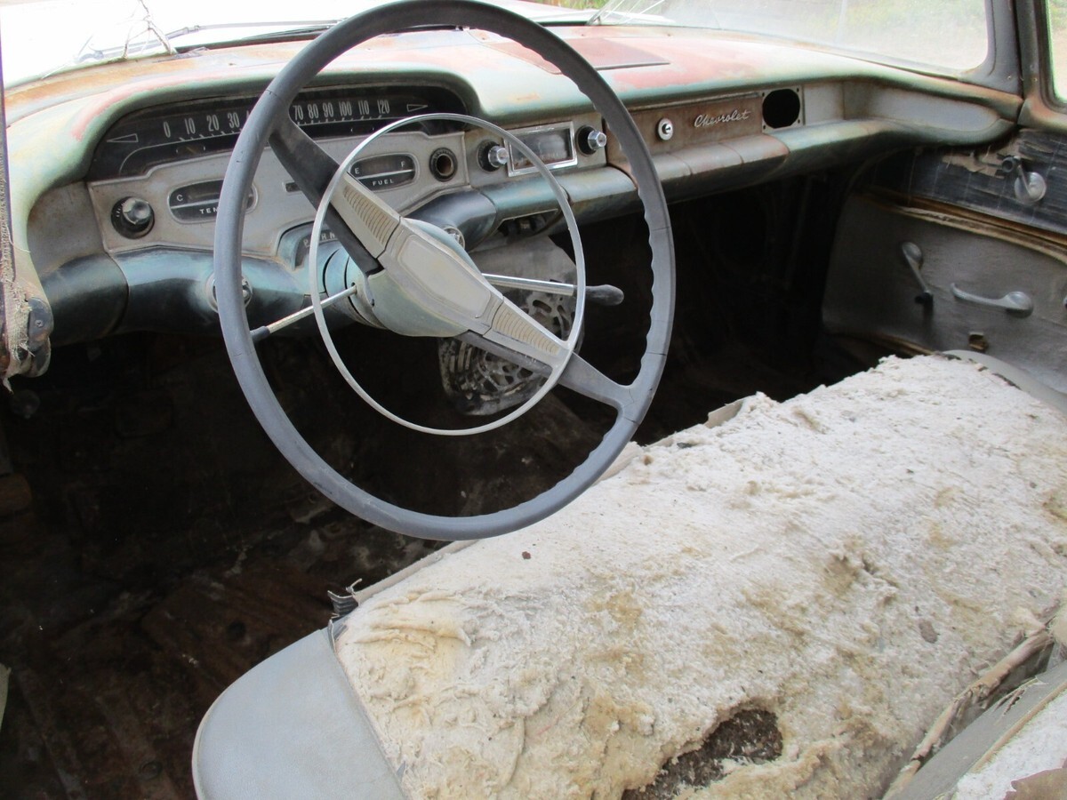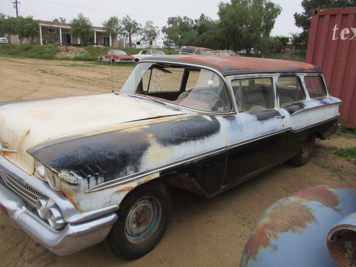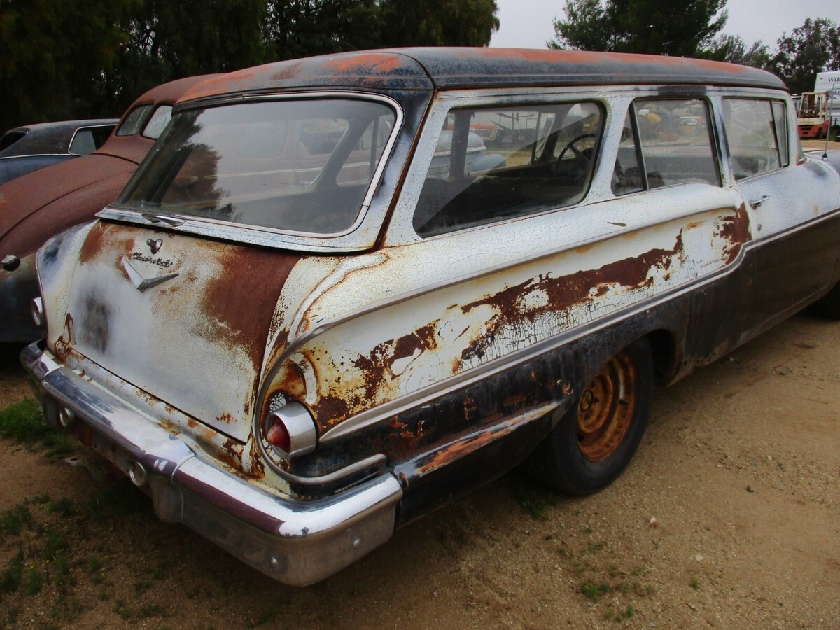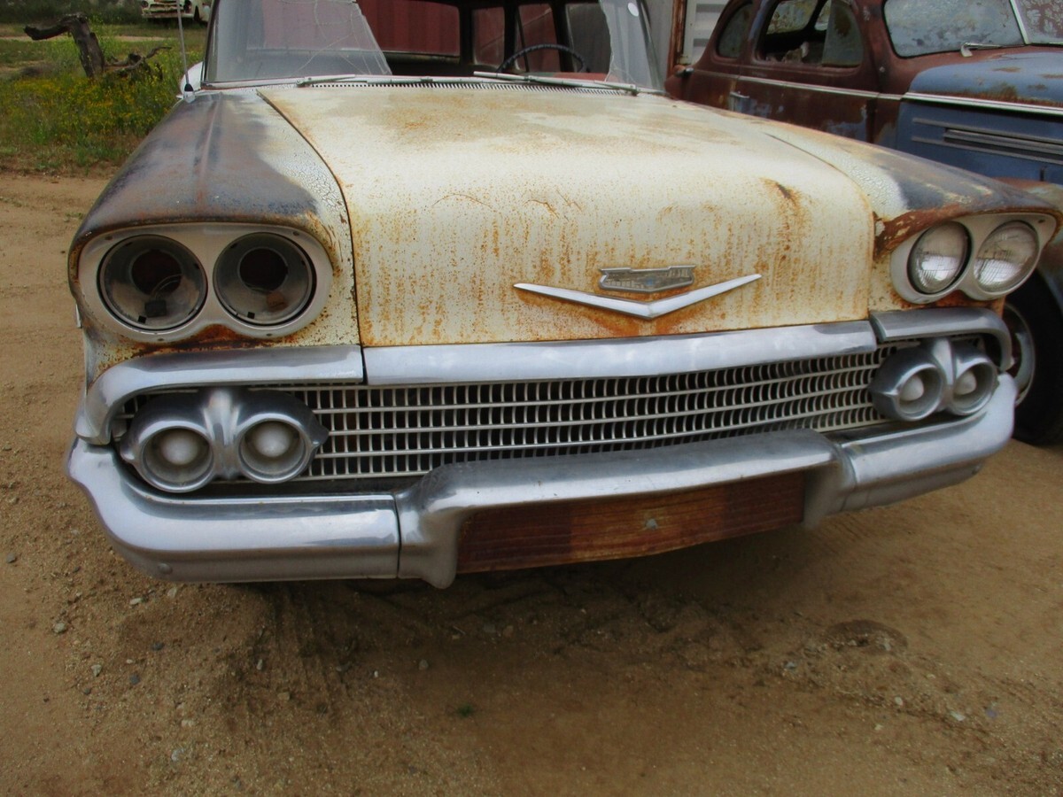 I am not a dealer. Just a guy who has too many cars that I will never get to.I am open to offers714 364 7320 Craig Call me anytime. Happy to send all the pictures you need.I have had the car checked in the nationwide DMV data base and there is no record.(I can have a California title put in your name for about $300)1958 Chevrolet Yeoman "2 door" wagon.(sorry about the title. Ebay has never heard of a Yeoman)Originally a manual trans car with column shift.No engine or TransmissionComplete interior with working fold down rear seat.Rear hatch and tailgate open and close as intended.The upper latch does not latch to the tailgate.Car looks like it has been untouched for many years.There is some rust on the right hand rear quarter panel(please see pictures).Rockers are solidBottom of fenders are solidDrip rails are excellentRoof is excellentBumpers are very straightHood lip is bent down a little.The rest of the body is very straight and solid.Driver fender has a couple of minor dents.Please see all pictures.Front floors are solid but the rear passenger floors have rust holes They were repaired years ago with sheet metal on top of the original floor. (please see all pictures and ask for more).714 364 7320 (I can send all the pictures you need)Frame looks good.I don't believe this car has ever been in an accident.Missing the hood hinges.Doors open and shut with good gaps.Areas around front and rear windows look solid.Roof is solid.Spare tire area is solid. I don't see any rust holes.Body is overall pretty straightDriver door vent window glass is cracked and passenger door window is cracked. All other glass is good.Car rolls and steers easily.There are no keys.Car will be sold with a bill of sale as the title has been lost.I can store the car until you are ready for pick up.We require a non refundable deposit of $1000 within 24 hours(DONT BUY IT UNLESS YOU ARE SERIOUS)***I'm tired of dealing with flakes.Payment for the remaining balance when you pick it up.Feel free to give me a call for more pictures and information 714 364 7320. I am happy to answer any questions about the car. Craig.On Apr 22, 2025 at 09:58:00 PDT, seller added the following information: Track Page Views WithAuctiva's Counter