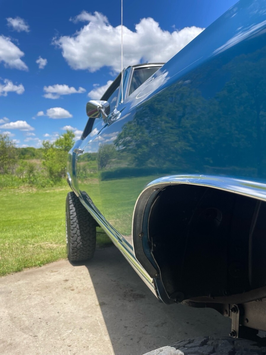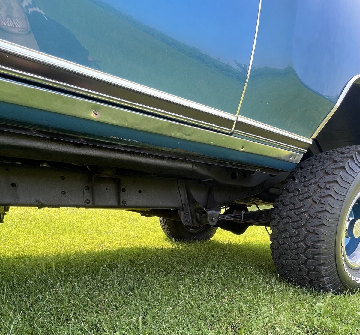 The Monte Carlo was originally from Tennessee and to my knowledge has never been driven in the winter. The body is solid and arrow straight, always stored inside and never off-roaded. The laquer paint was sprayed around 1990 and is showing its age in a few spots. All the chrome is there but could use refurbishing. The frame of the Monte Carlo was channeled to fit over the Surburban frame with no alterations to the body of the Monte Carlo other the T-case shifter opening.
