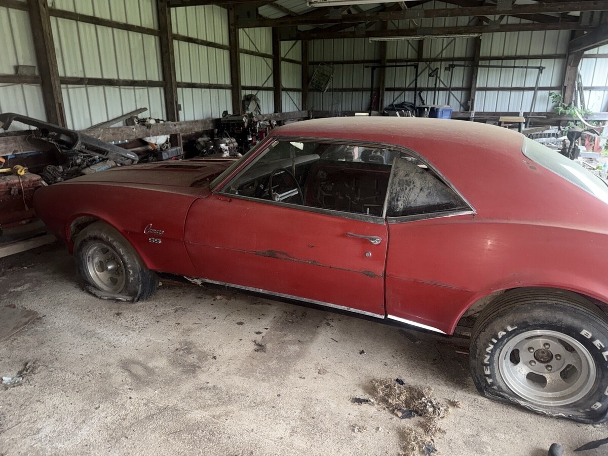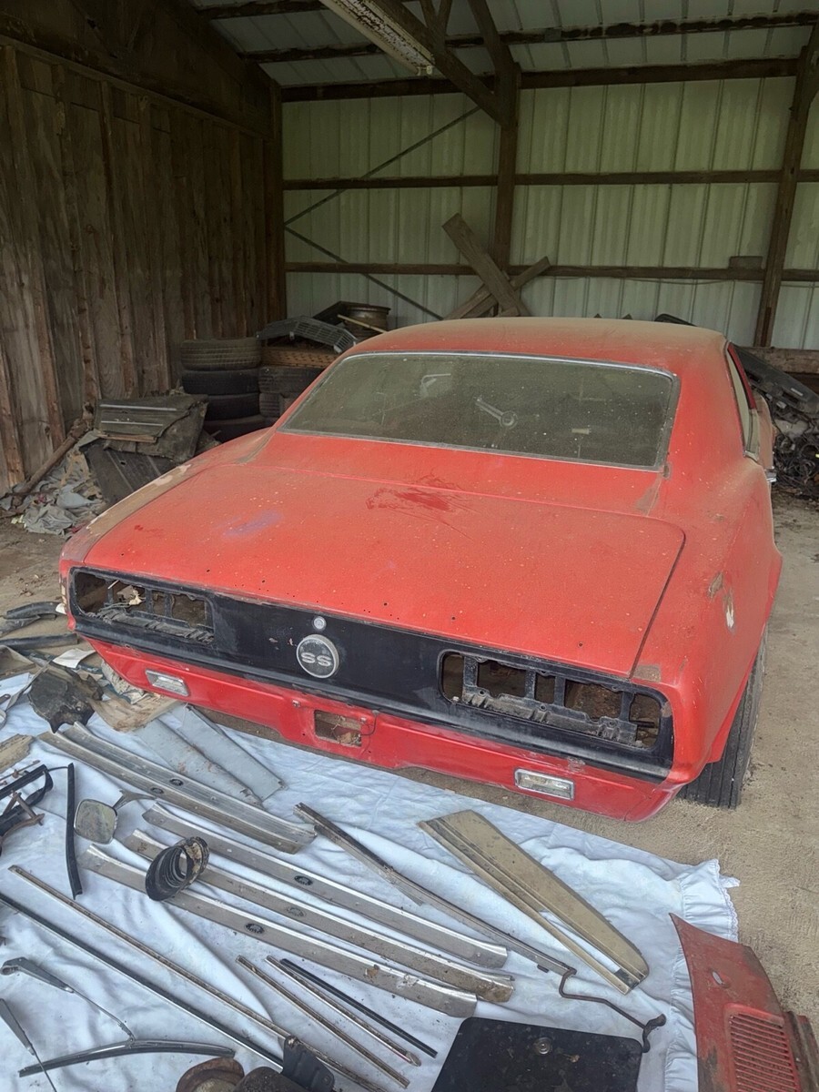 TRUE RS/SS BIG BLOCK 396 Camaro. 4Speed. In pieces. I have everything but the tail light bezels. Power steering. Many parts stored in my house or garage. Car was stored since 1993 in the barn Drove it in, took it apart and never completed the project. Motor is not numbers matching. I have a 1968 396 motor with dual quads to go with the car.