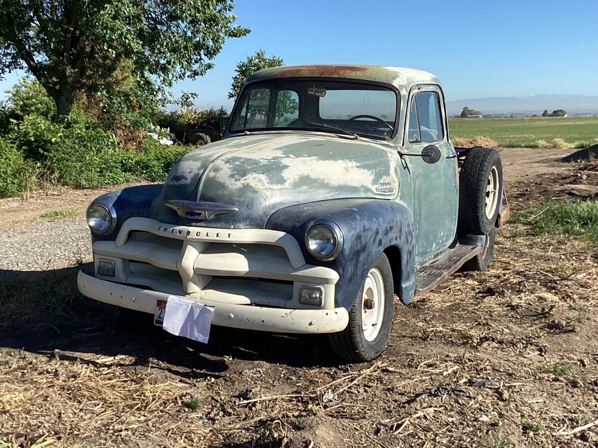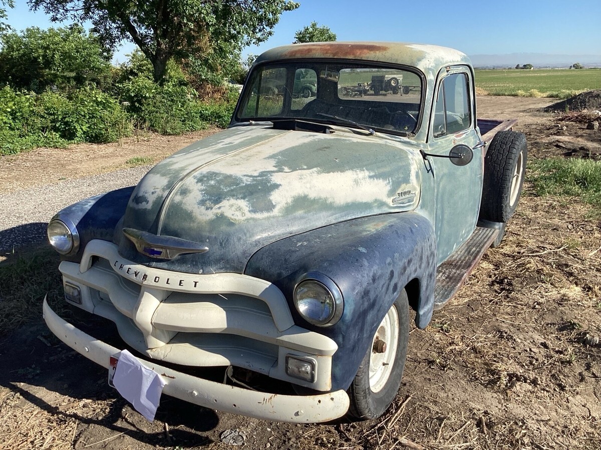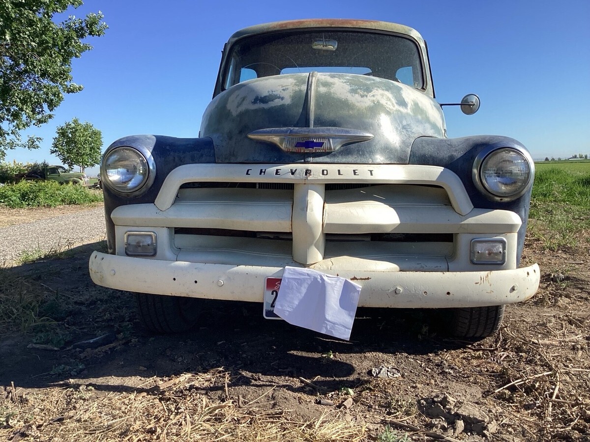 1954 Chevrolet 3100 pickup. 1/2 ton, 5 window cab, short box, 4 speed, 235ci, good glass, 12 volt system, runs great, clean title.