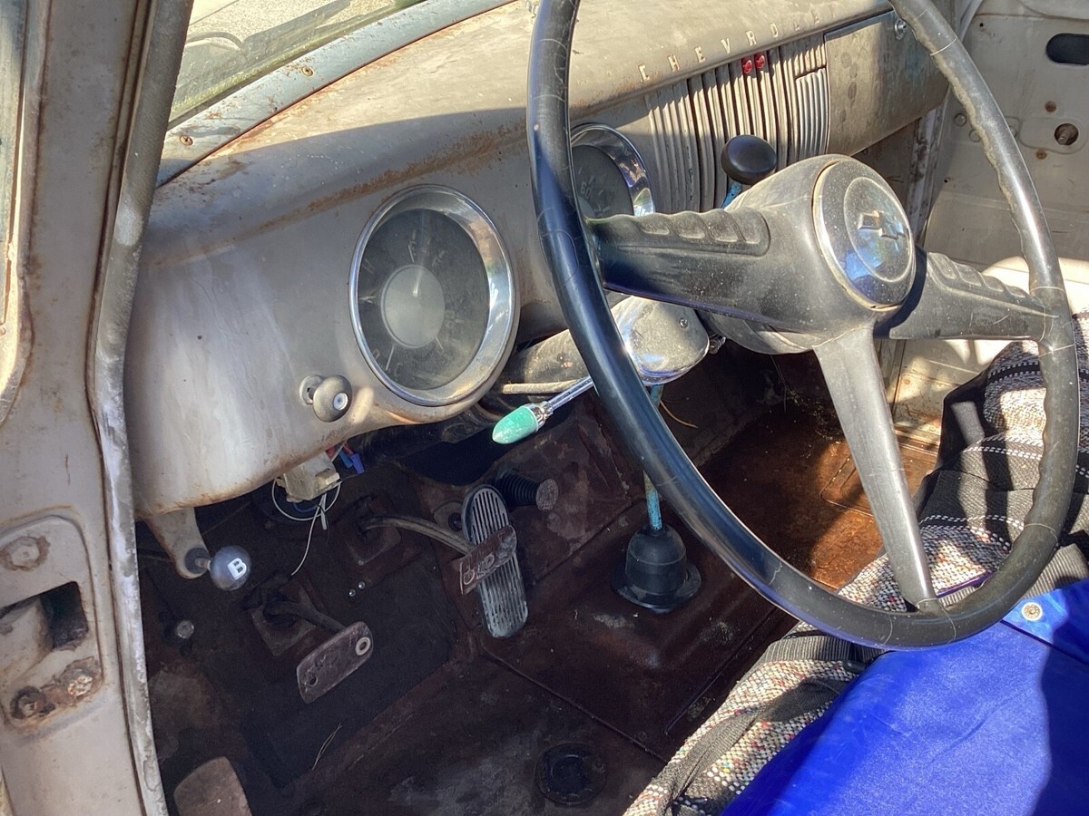 Great weekend or daily driver. I’ve enjoyed it as is for over 10 years. 235ci with great comprehension, does not burn oil, 4 speed, 5 window cab with short bed. Interior and seat could use help. Front axel needs king pins. No speedometer . No gas gauge, I always carried an extra full 5 gallon can. Still drivable 40-45 with your elbow sticking out the window and the vent open. The interior of the bed could use some wood if you were to haul gravel or chicken feed. Radial tires, blinker turn signals, converted to 12 volt, aluminum radiator, electric fan,(I only turned on the fan when in stop and go traffic) does not overheat. Many extra parts, generator and voltage regulator, windows, knobs, see pictures.
