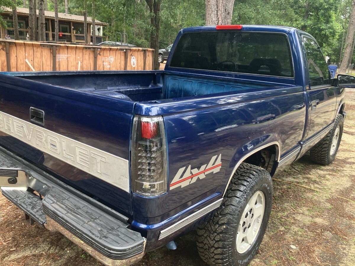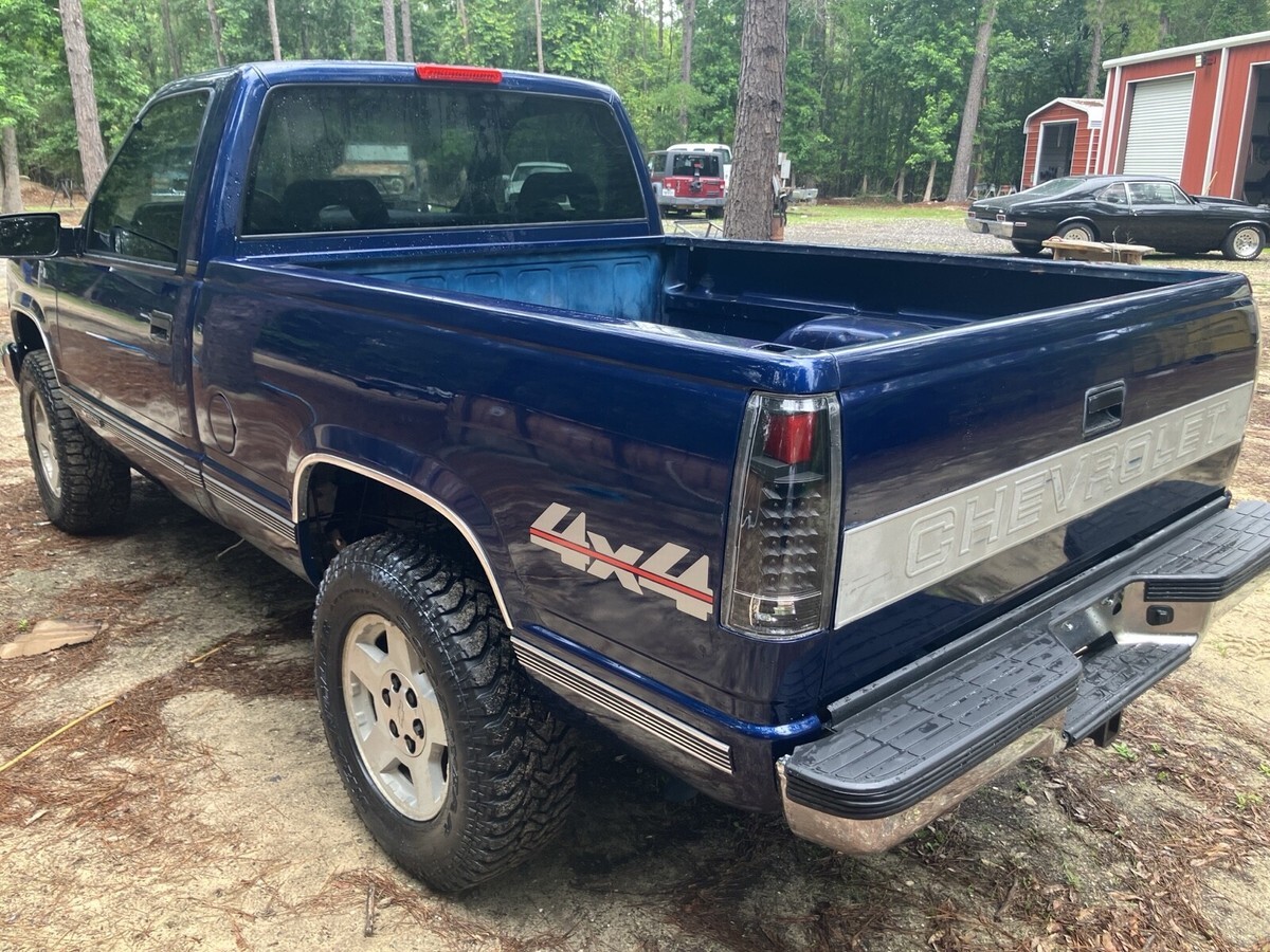 Up for sale is my 94 short bed four-wheel-drive manual transmission. This truck is an excellent condition. It has a brand new indigo blue metallic paint job brand new TBI 5.7 L engine with warranty runs and drives great cold AC power windows and door locks, brand, new front driveshaft, and a lot more new parts . Too many parts to list for more info PM me