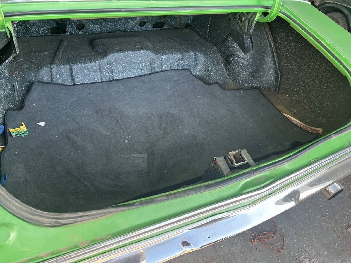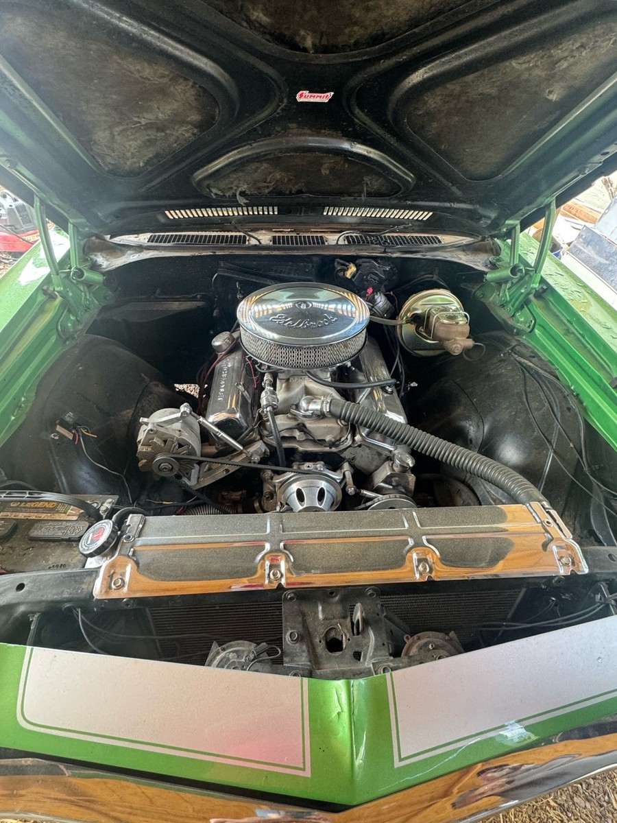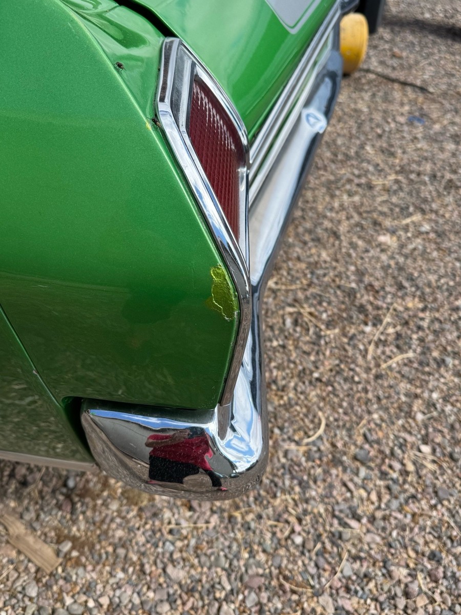 Original green interior. Newer rear Mickey Thompson tires, 4-Wheel Disc Brakes in the front, shoe brakes in the back, Beautiful Chrome & Stainless Trim Throughout, Nice Smooth Vinyl Top, Power Steering, Power Brakes, Beautiful Clean Interior, drivers seat has a tear in the seam, Clean Dash & Door Panels. Strong Built 383 Stroker - V8 Engine, Smooth Shifting Automatic Transmission, Demon Double Pumper Carb, Aluminum High Rise Intake, HEI Electronic Ignition, Polished Headers, Chrome Master Brake Cylinder, Brake Proportioning Valve, Aluminum 5-Core Radiator, Performance Electric Fan, Polished Aluminum Pulleys & Brackets, Chrome Timing Chain Cover, Chrome Air Cleaner & Valve Covers, Newer 2 1/2" Stainless Dual Exhaust Front To Back, FlowMaster Mufflers, 4-Link Rear Suspension, Front Sway Bar, Traction Bars, mechanical Fuel Pump, & Original Solid Floors & Frame. There are a chips on the exterior. Clear Arizona Title.