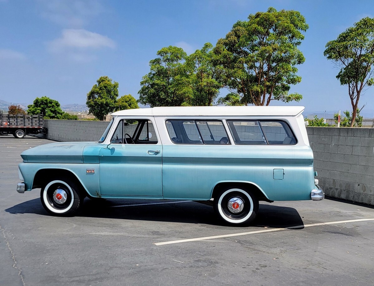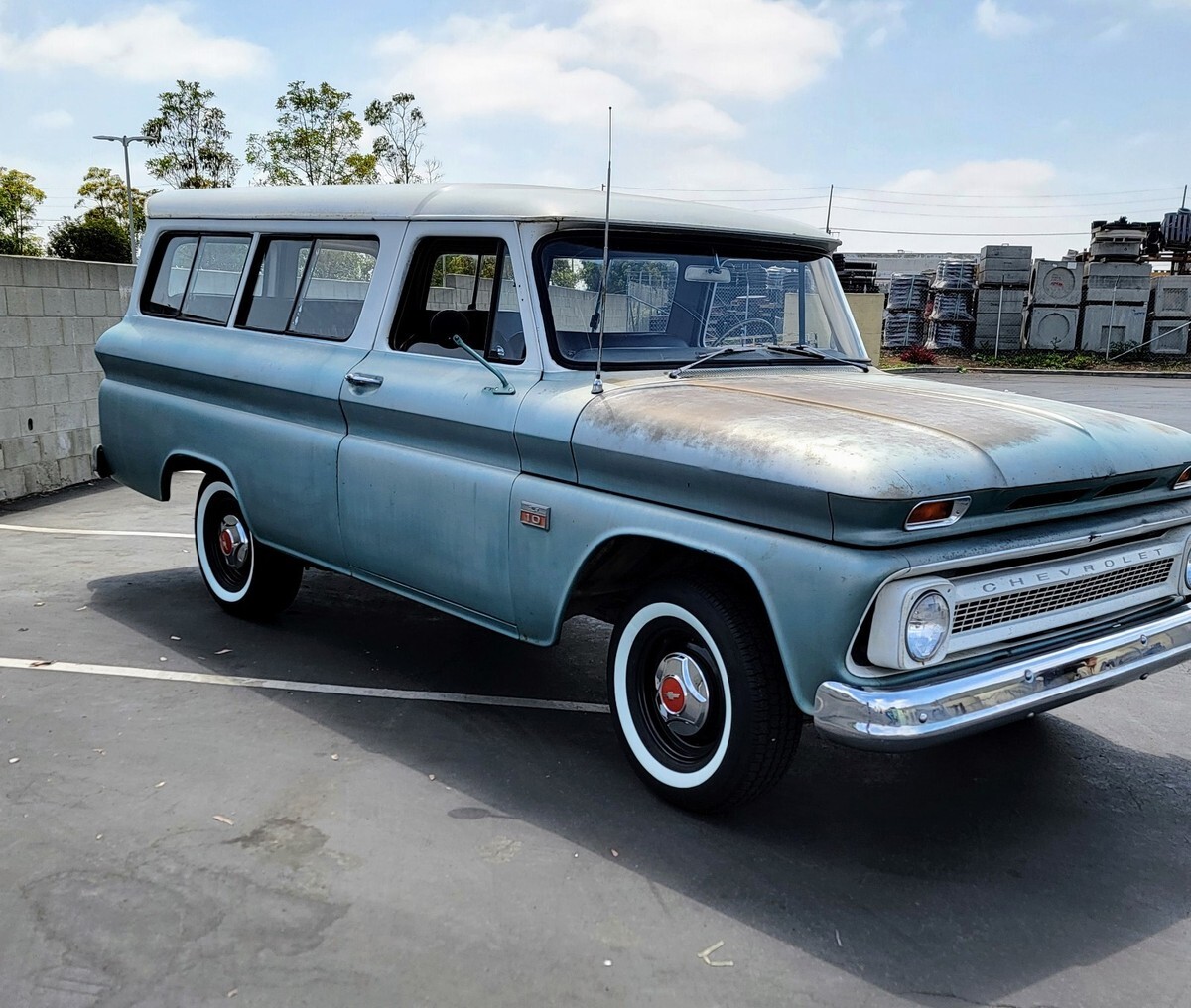 1966 Chevrolet Suburban Carryall, C10I have owned this '66 for about 12 years I am the second owner. It has been kept parked for 12 years in my shop. It is all original with the exception of the seats that have been re-covered and a minor body repair to the drivers door below the door mirror. The only rust is to both front fenders lower section (which is not bad, but that's only my opinion). It still sports the original two tone paint which is faded and patina. The body overall inside and out is in great original condition. The engine is a 292 which turns over, but I have never ran it or drove it and it has a 4 speed transmission. I have a clean California title in my name. Please feel free to contact my for any more information.