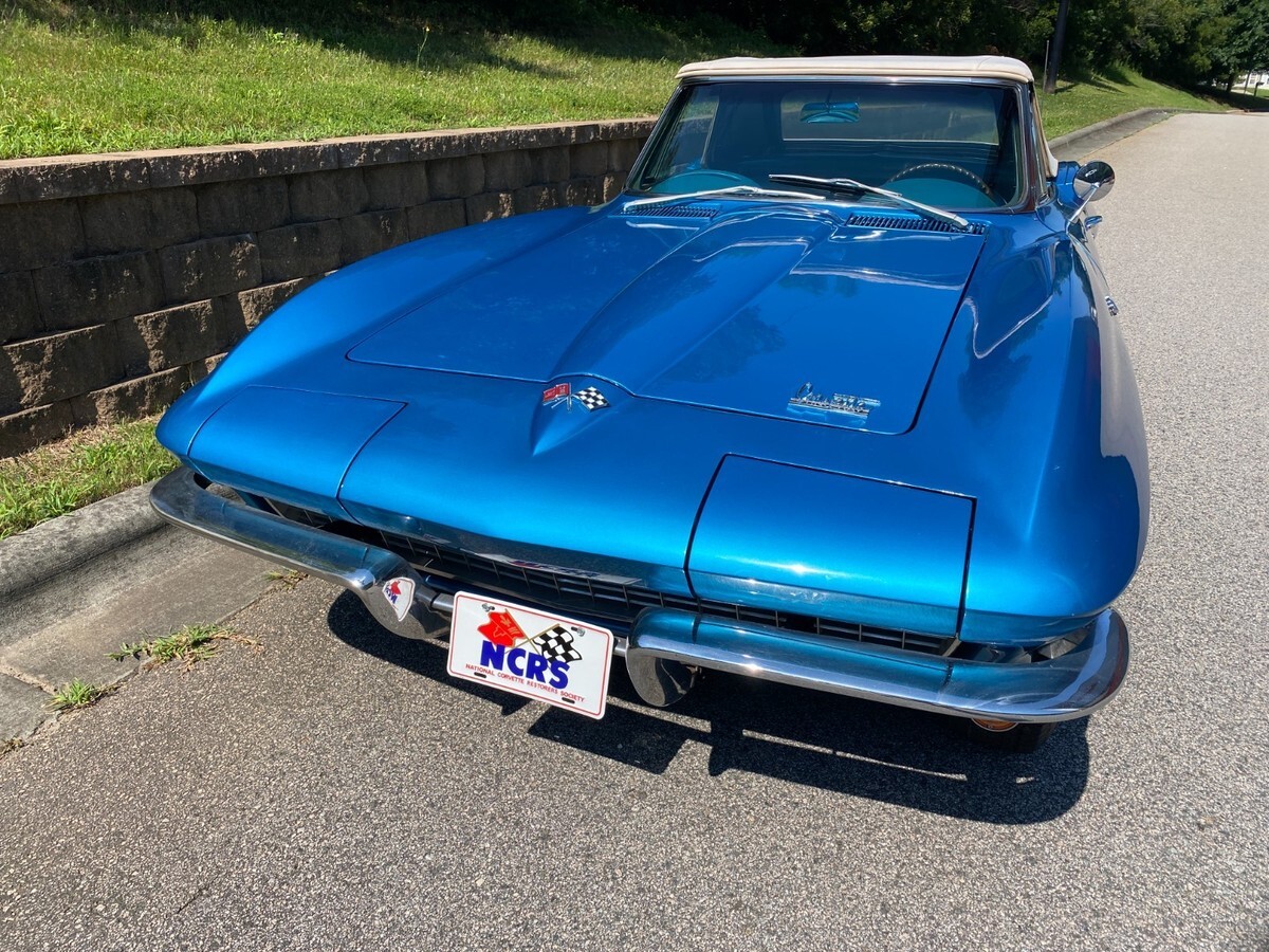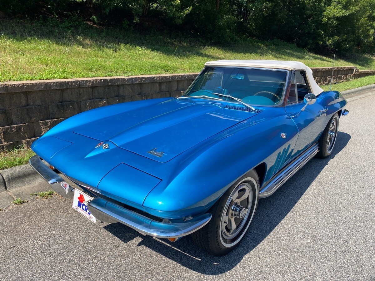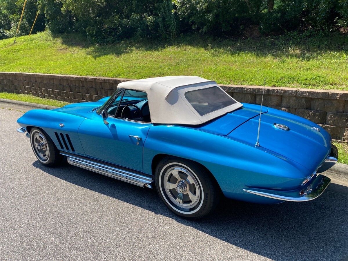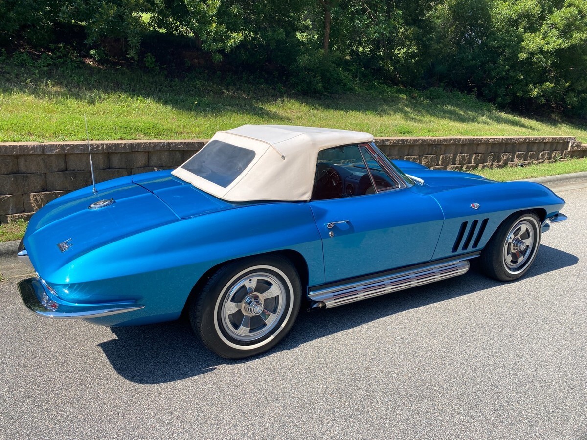 1966 corvette convertible rare Nassau blue, paint code 976 with complete Al Knoch bright blue interior. new switches and relays. matching # 350hp/327 with Muncie close ratio 4 speed transmission. new exhaust, power 4 wheel disk brakes, new alignment, power steering ...ground up restoration just completed. comes with 3, yes 3 tops. matching hardtop, raw hardtop (owner was going to have it covered in vinyl). and new Al Knoch canvas top with all new frame and hardware. engine has 0 miles since complete rebuild probably pushing around 385hp now with every accessory being replaced with new, Muncie close ration 4 speed trans was also rebuilt. brand new headlight motors (both) thousands of Dollars have been spent on restoration. Car was restored to fix all the drivability issues that Chevy had with these cars and car can be driven at length without any issues even on hot days.. new heavy duty aluminum Radiator with electric fan, bigger hoses etc original shroud goes with car also,,, Billet heavy duty master cylinder with all new brake lines, calipers and rotors, new u joints, new battery with HD alternator, entire steering has been rebuilt with all flaming river components including a billet rack/n/pinion and power steering pump. brand new shocks, springs, rear end and ALL suspension components. new weather stripping, all gauges rebuild, etc... etc... etc... NO TRADES OF ANY KIND!! PAYMENT BY CASH OR BANK WIRE ONLY!!! inspections are more than welcome PRIOR to bidding. car is located in Raleigh North Carolina. clean and clear title in hand, ready to transfer. please contact me at 919-944-6832 with questions
