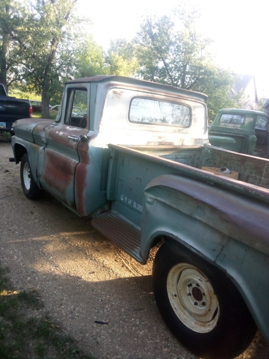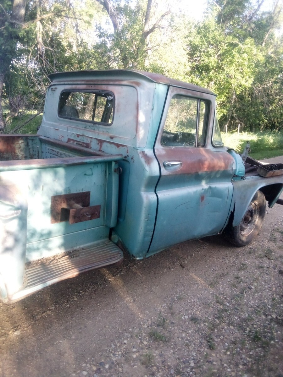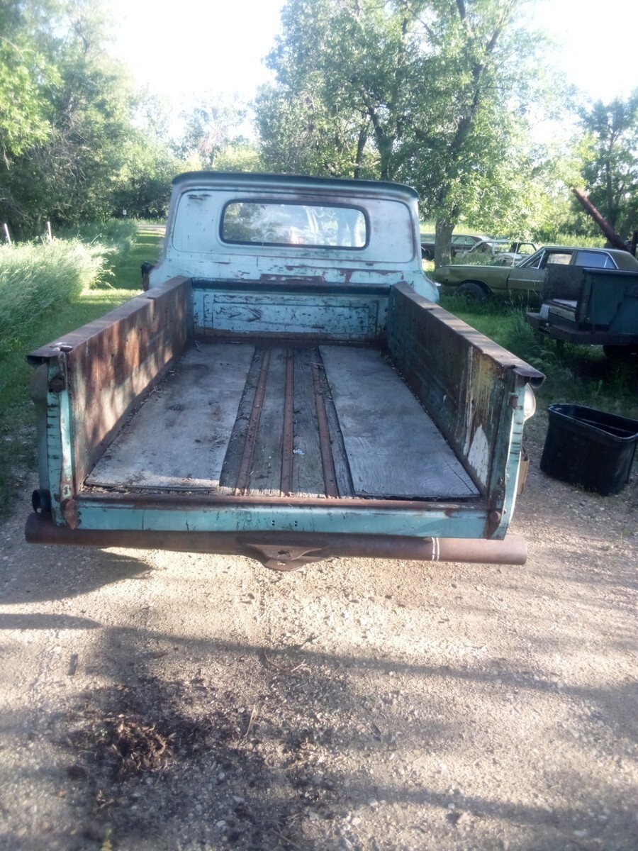 I BOUGHT THIS PICKUP FROM A SALVAGE YARD IN MONTANA, THE OWNER DID NOT HAVE THE TITLE SO ALL I HAVE IS A BILL OF SALE ALSO I HAVE LOOKED EVERYWHERE FOR THE VIN NUMBER BUT CANT SEEM TO FIND IT I CAN TELL YOU IT IS A APACHE AND HAS A 235 MOTOR AND A 4 SPEED TRANSMISSION ON THE FLOOR MOTOR IS NOT RUNNING AND TRANSMISSION SHIFTS INTO ALL GEARS IF ANYONE CAN TELL ME MORE ABOUT THE YEAR OF THIS TRUCK I WOULD GREATLY APPRECIATE IT, I ALSO HAVE MANY EXTRA PARTS FOR THIS TRUCK SUCH AS DRIVERS SIDE DOOR,ANOTHER HOOD,GAUGE CLUSTER, BLINKER ASSEMBLY AND MANY MORE PARTS TRUCK HAS THE USUAL RUST AREAS BODY HAS DENTS THIS TRUCK IS LOADED WITH PATINA PLEASE SEE PICTURES ANY QUESTIONS CALL 701-570-7203 CAN POSSIBLY MEET BUYER PART WAY WITH TRUCK IF ARRANGEMENTS CAN AGREED ON