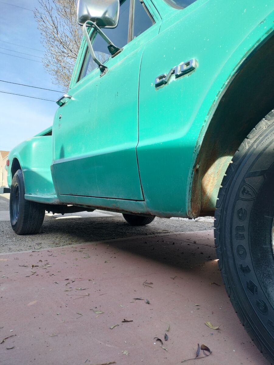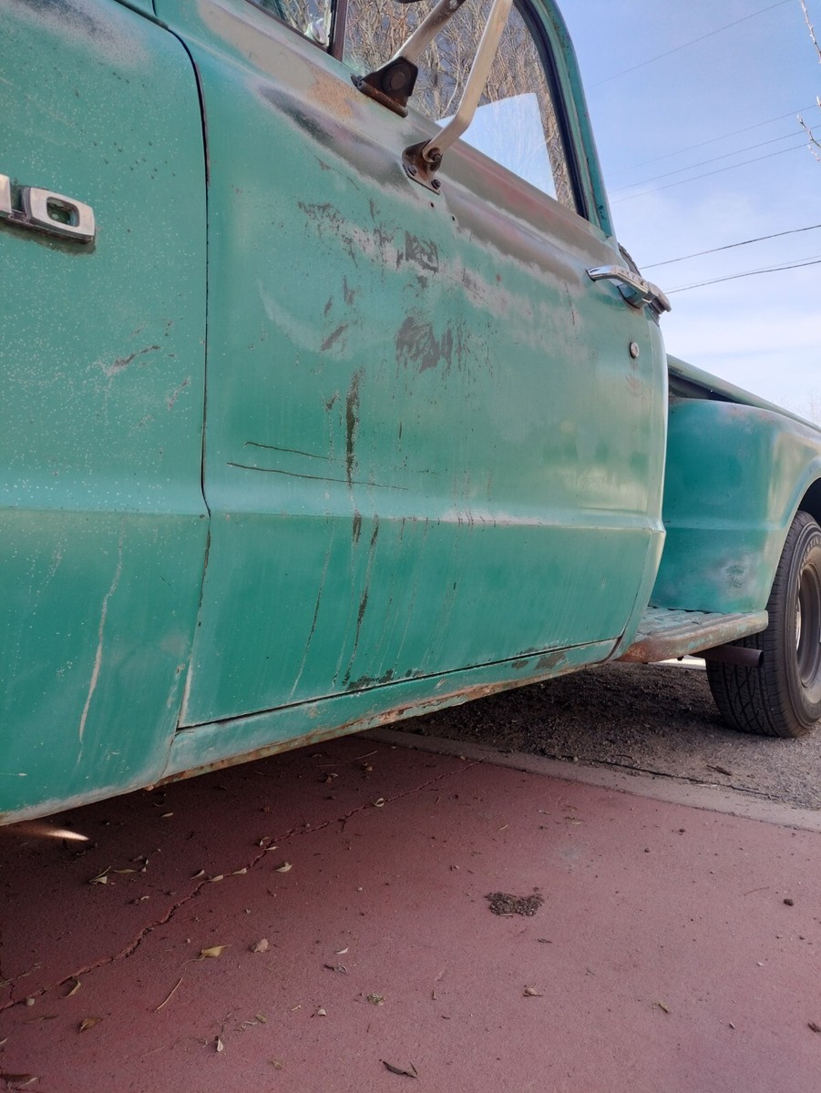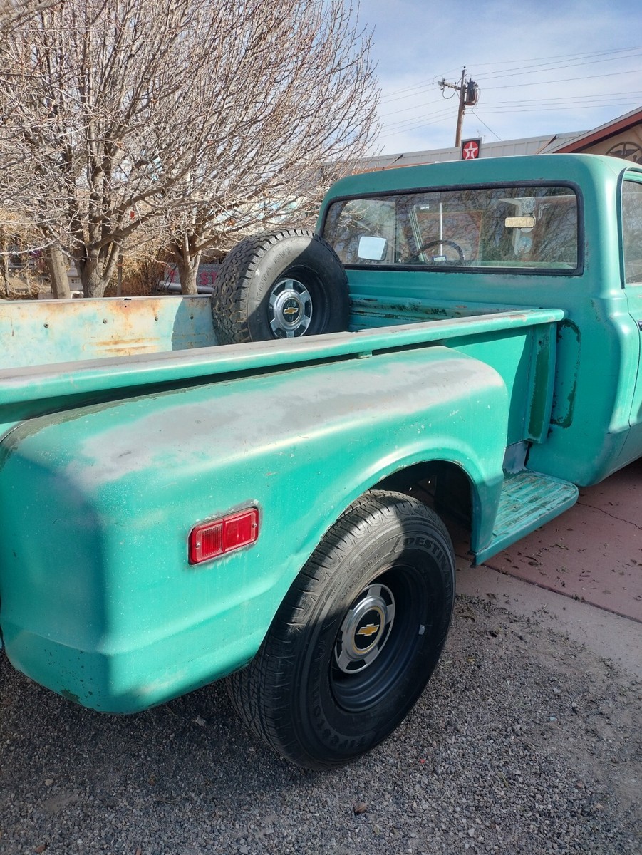 1969 C10 hard to find longbed step side pickup.nice work truck,inline , three on the tree,nice interior.good carpet, no tears in the seat.great patina,2nd repaint, was dark green originally.bumper jack with mount.non- functional fog lights.original glass all around.spare tire in the bed.lights work, turn signals work, brakes work, does not overheat recently went on a 100 mile drive with no issues.engine overhaul 3 years ago, starts right up.minimal rust, southwest truck all it's life.needs some TLC or drive as is.new 69 reproduction grille will go with the truck. Text me if you need more pictures.no warranty. Needs radio,will need tire, they have great tread but seem to be getting dryrot from the southwest weather.overall solid truck.