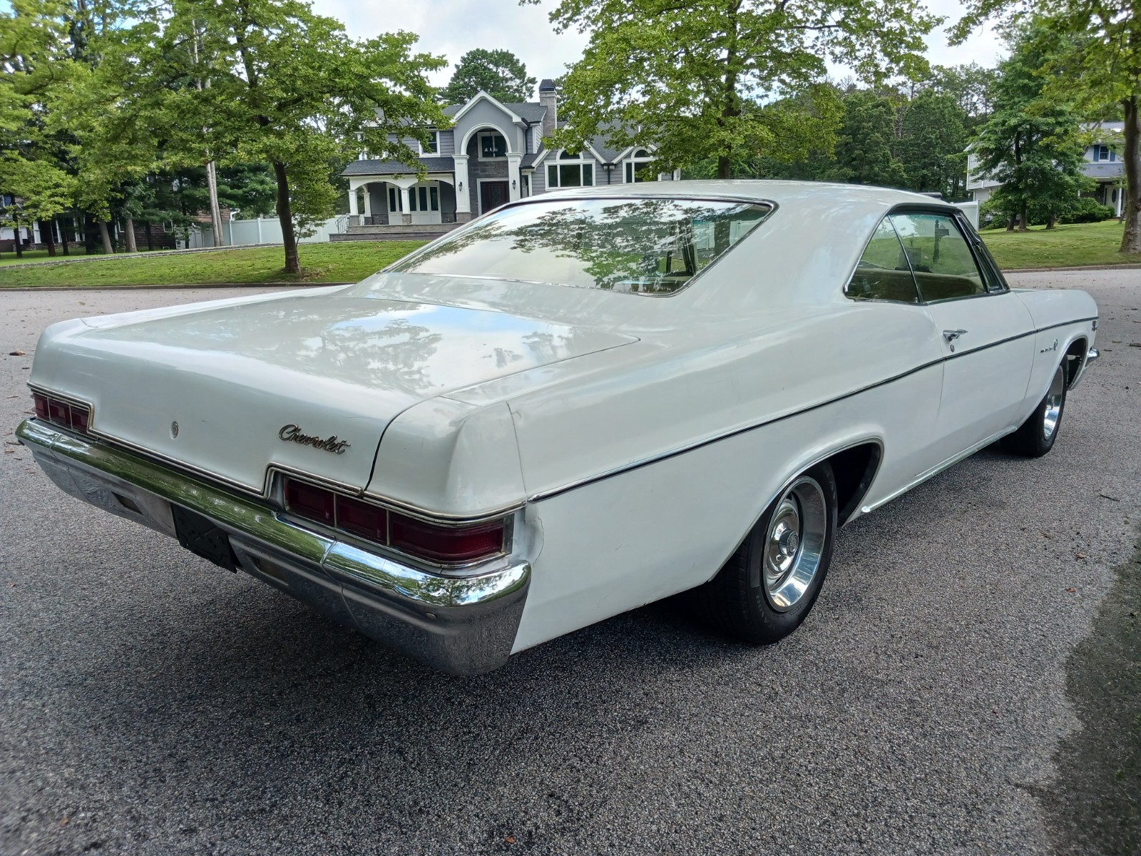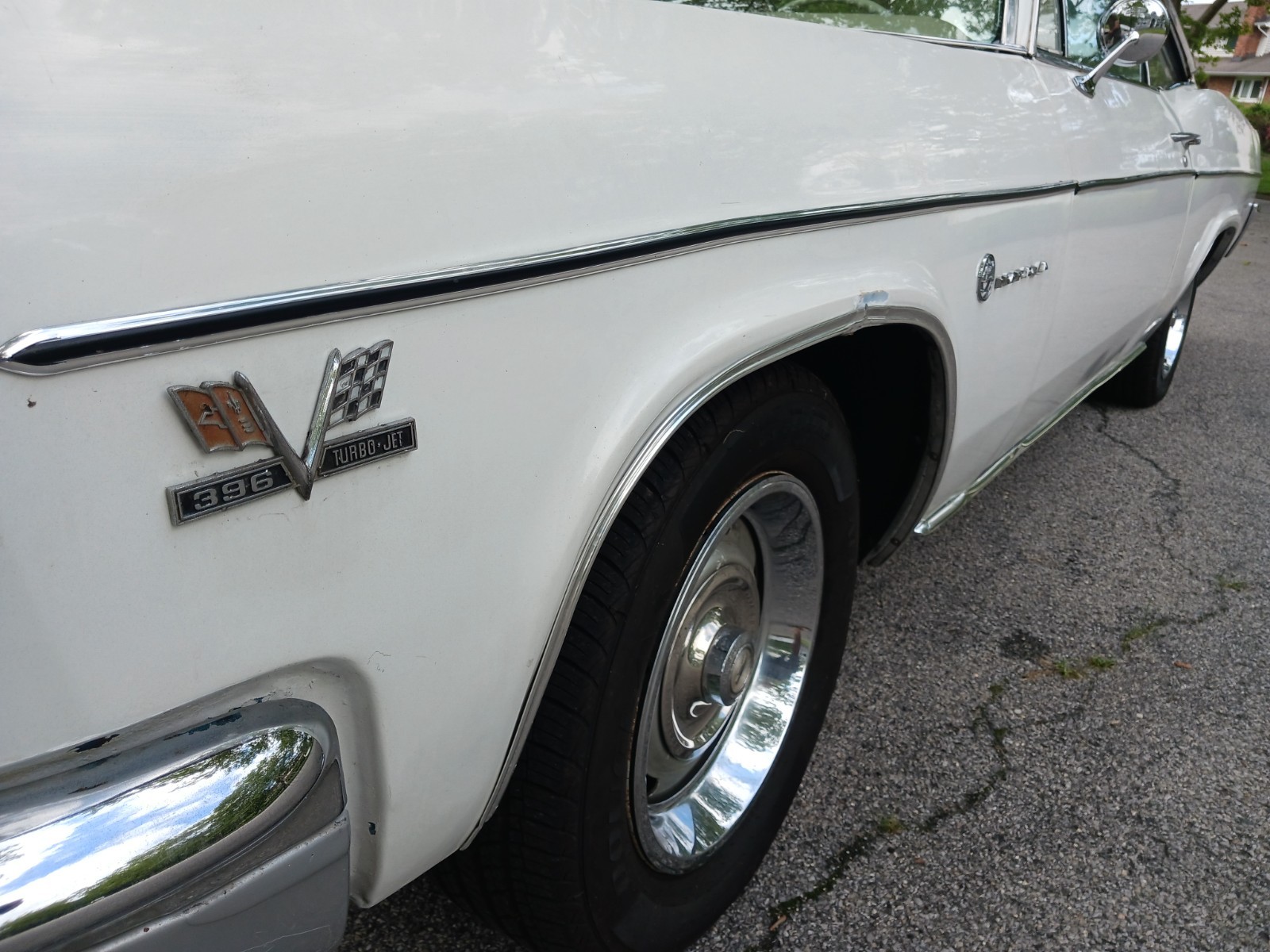 NICE 1966 CHEVY IMPALA COUPE (NON SS) WITH STRONG RUNNING 396CI V8 AUTOMATIC WITH UPGRADED DISC BRAKES, 44K ORIGINAL MILES, NEVER RUSTED AND READY TO DRIVE.Please LEAVE A PHONE NUMBER so I can reach you to verify you're a REAL BIDDER. Tired of scammers and ghost bidders.Auction MAY BE STOPPED AT ANY TIME for serious offer.Full Youtube Walkaround, startup and driving video here:https://www.youtube.com/watch?v=BGJzNICErBMCar has been collector owned all its life. Previous owner kept it in relatively good shape and occasionally used it to get some ice cream with his kids, run around town, the occasional cruise night and local car show. Body is VERY STRAIGHT and looks to have ALL ORIGINAL PANELS from what I could tell, but I'm no expert. Older paint probably 15-20 years old or so that shows well, a good 10-15 footer with some small imperfections, chips, scratches, and minor touchups. Doors open and close good, panel fit is very good. Overall a NICE ORIGINAL BODY with virtually NO RUST (a few bubbles at base of rear passenger quarter, nowhere else).Interior is VERY NICE and a lot of it was replaced within the last few years. NEWER carpet, NEW door panels, NICE dash pad, NICE seats (rears were redone recently). NO big rips or tears anywhere. NICE headliner as well. Overall a NICE DRIVER QUALITY INTERIOR.Under the hood the original 283 is long gone, replaced by a 396ci V8 with a mild camshaft, some internal mods, aluminum Intake, Edelbrock 750cfm 4bbl carburetor, headers, dual Flowmaster style exhaust, electric fuel pump and a few other minor upgrades. Fires right up and sounds good, idles good, performs well. Transmission shifts good. Brakes have recently been serviced and stop great, steers well without much play in the wheel. YOU CAN GET IN AND DRIVE THIS CAR TODAY!!!Underside is SOLID THROUGHOUT. NO patches, NO welding, SOLID TRUNK, SOLID FRAME, SOLID FLOORBOARDS.Overall this is a VERY NICE CRUISER that you an get in and use today and restore to your liking down the line. Obviously it's NOT perfect: radio not working, no heat/air, could use larger radiator for longer trips, perhaps a light bulb or two may need replacing. I'm sure there are other minor things I'm missing so please understand car is NOT A CREAM PUFF.Thanks and good luck bidding.