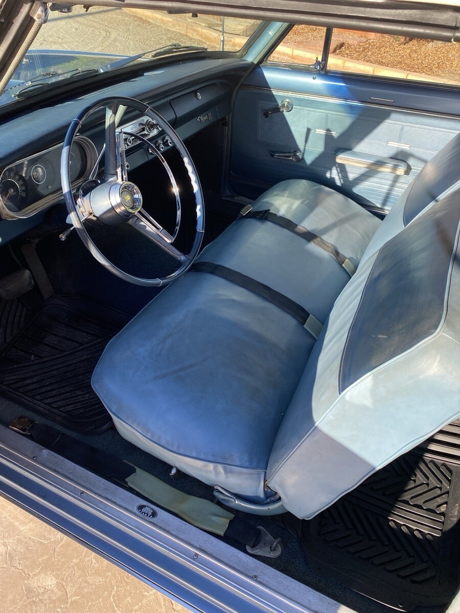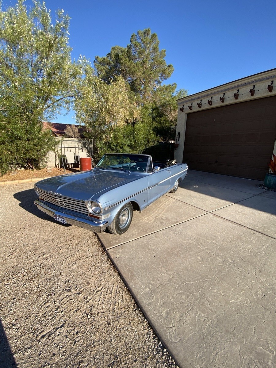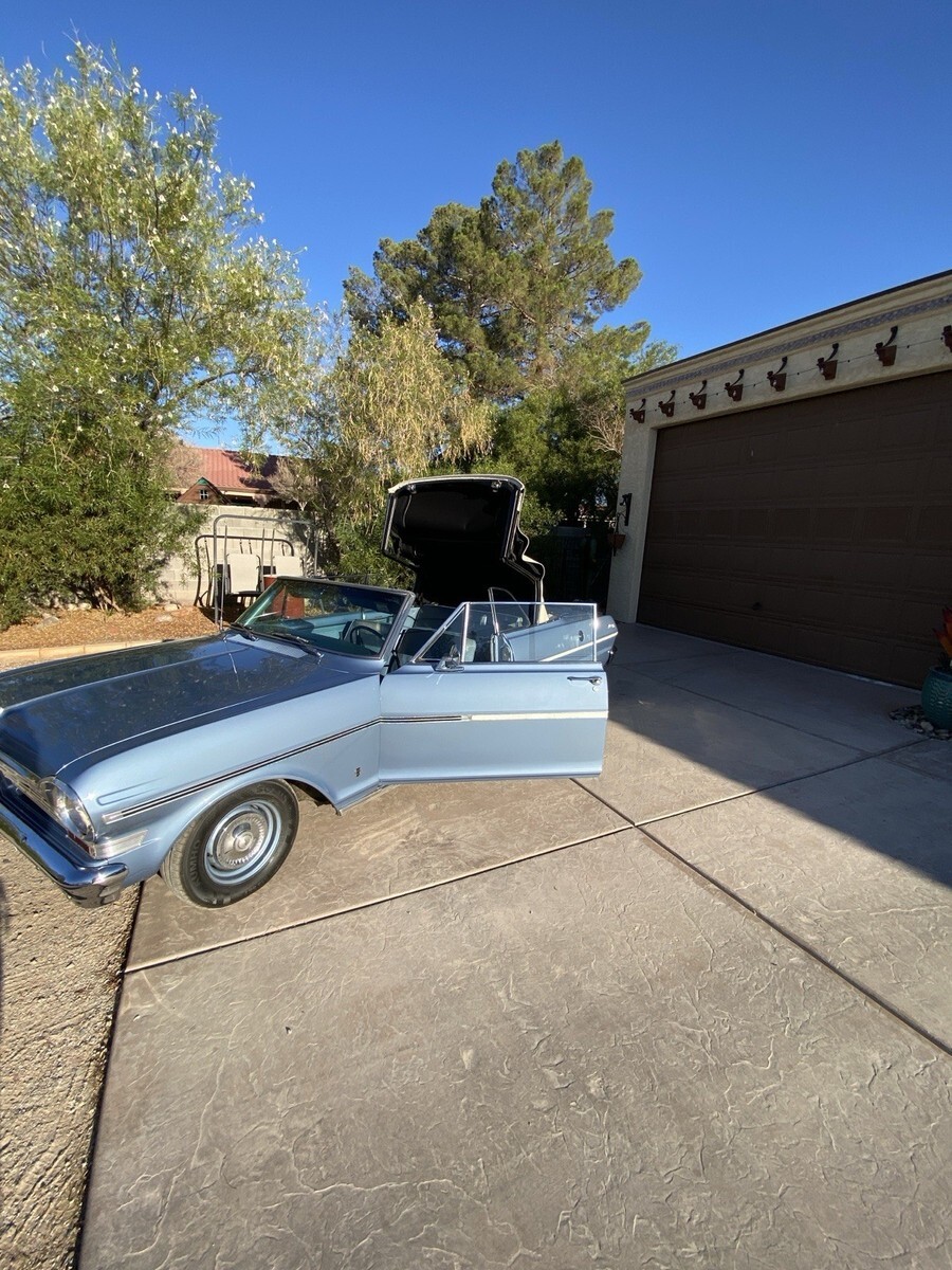 This 1963 Chevrolet Nova is a convertible car with a blue exterior, interior and a white top. It has a straight six, automatic transmission, and a mileage of 64358. This classic model from Chevrolet is perfect for vintage car enthusiasts looking for a piece of automotive history with a touch of nostalgia. This iconic Nova is sure to turn heads on the road and bring back memories of a bygone era.This was my mother-in-law’s baby. It has been stored inside and not driven since 1992.This is a chance for someone to get a classic that hasn’t been butchered or abused. Everything is stock and works to the best of my knowledge. I have replaced the tires, fuel tank, cleaned the lines and had the carburetor rebuilt. I also replaced the battery, plugs, wires, rotor and cap. It starts easily, idles fine and runs/shifts without issue. If you have questions, please ask.No trades, I have enough projects.