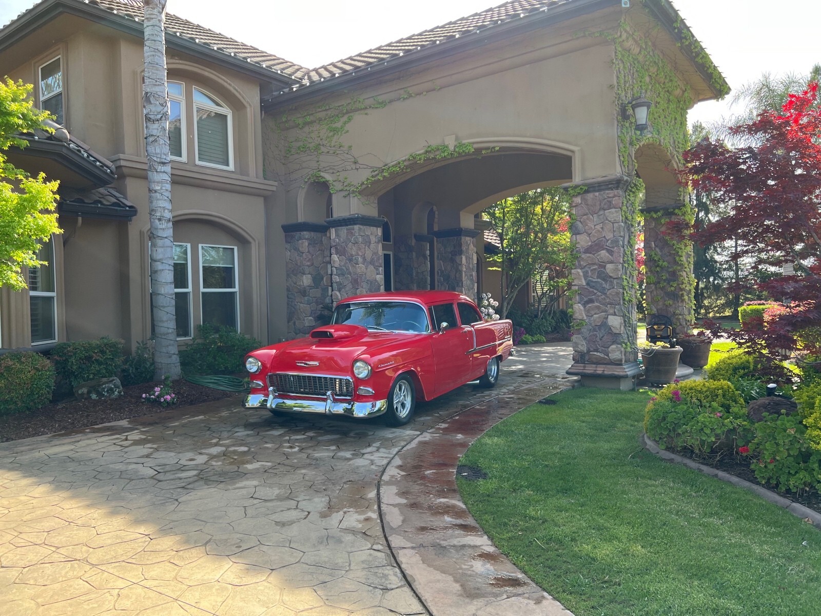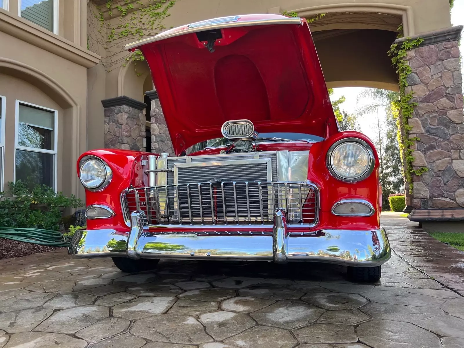 1955 Chevy, two door, pro touring coupe, 502 big block with a 177 weiand, supercharger, four-speed automatic, four wheel disc brakes, fab 9 rear end awesome stereo, tilt wheel, power windows a jump in and go car. Lots of fun.