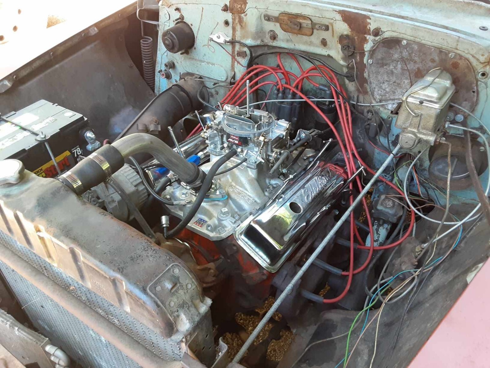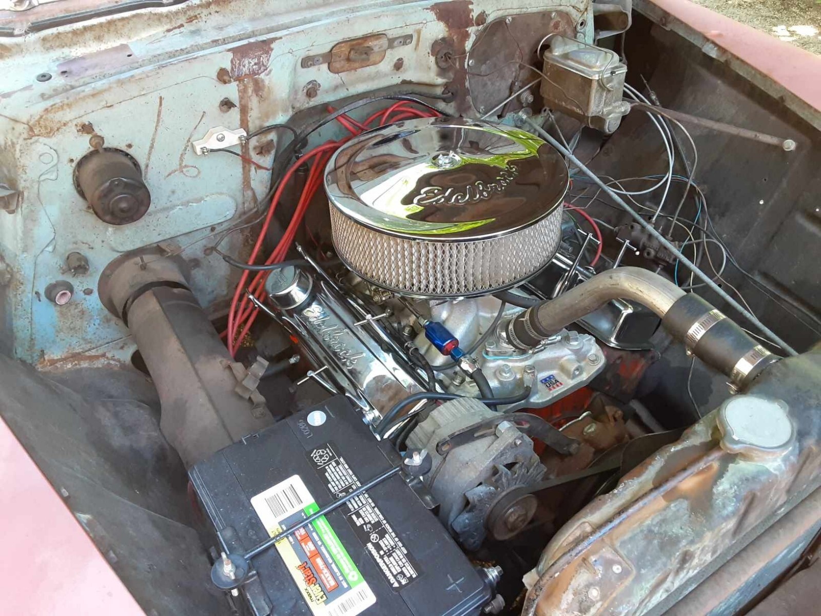 350 v8 turbo 350 transmission. Has edelbrock performer dual plane intake. 650 cfm edelbrock carb. New rear springs, new rear crossmember. Camaro 10 bolt rear. New rear tires. Disc brake conversion in front. Not a perfect car. Its a running and driving project car. You can hope in and go I drive the car 1500-2000 miles a year.