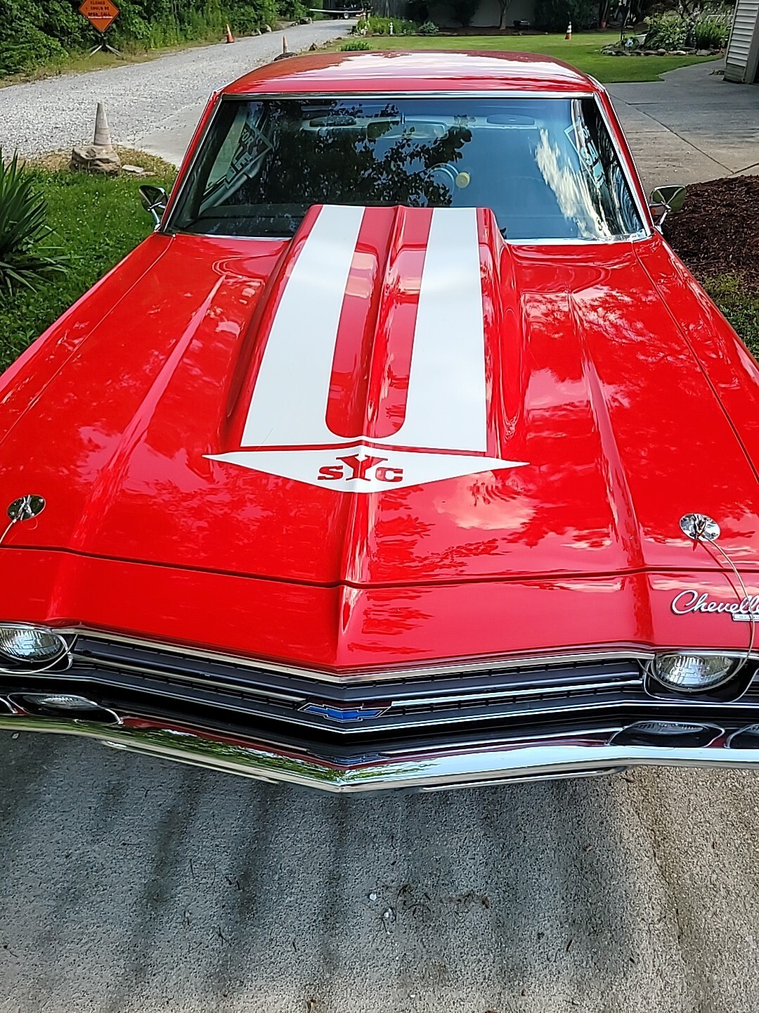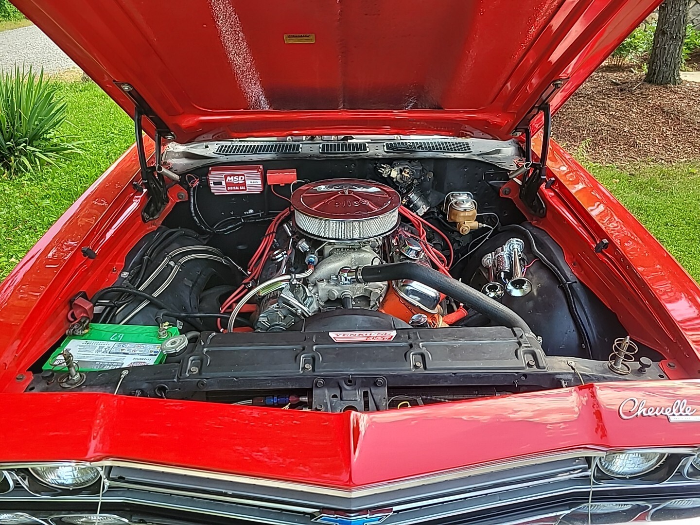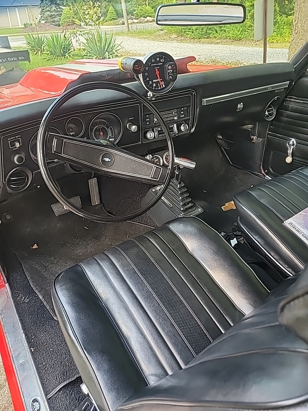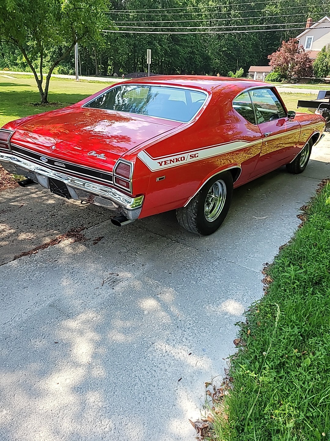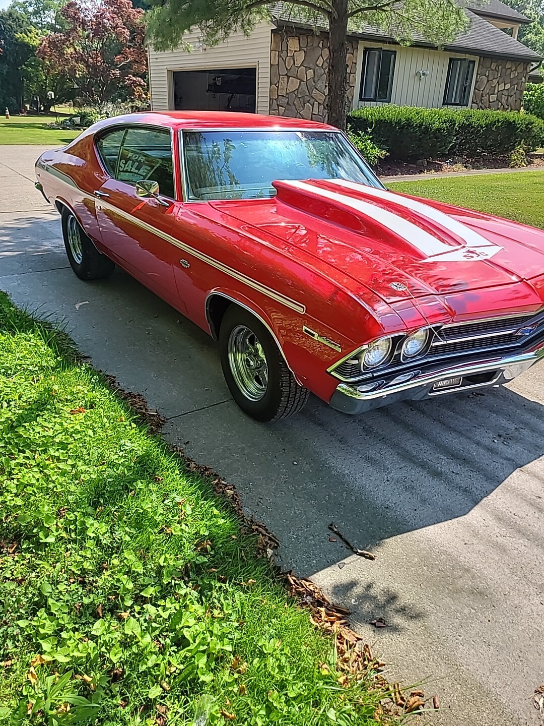 The 1969 Chevrolet Chevelle is a classic car with a black interior and red and black exterior. This coupe has 4 seats and is equipped with an automatic Turbo 400 truck transmission. With a powerful 427 engine producing 480 horsepower, this gas-powered vehicle is sure to turn heads on the road. This well-maintained Chevelle, with only 3 previous owners and 40,000 miles on the odometer, is a rare find for any classic car enthusiast looking for a piece of American automotive history.