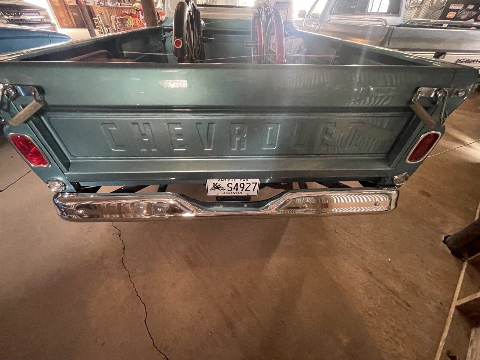 1966 Chevrolet C-10 long bed 2 wheel drive truck. which is an original vehicle that the owner has had for 3 years. Purchased from original owner who spent $8000 on paint job 4 years ago. The truck is in aqua blue/ green color and has a clean title. It has a mileage of 47000 miles. Truck was stored in his barn and not driven much. Just around the farm. Today This vehicle is mainly used for car shows, and it runs great. It is a classic piece of American automotive history that is sure to be a standout at any event it participates in. 283 v8 3 on the tree. Smoot, quie, powerful and solid. Starts easy. Runs cool. Reliable. Has new wood bed and beautiful paint. Original color. Stock. Rust free as far as I can see. Tail gate is near perfect. Never used as work truck. Driven around farm to check on cattle. You won’t be disappointed with this cool old truck. I am selling most of my collection and retiring to Florida. I’m a collector not a dealer. All my vehicles are registered in my name and current registration and insurance in my name. Low reserve. I’m located in Hardy Arkansas and am willing to work with your shippers. Also open to meeting with auto inspectors. This is an honest clean real deal truck. Not mint !!! Minor imperfections. It’s not perfect but is gorgeous and admired by all. I may sell before auction ends as I have it for sale locally.