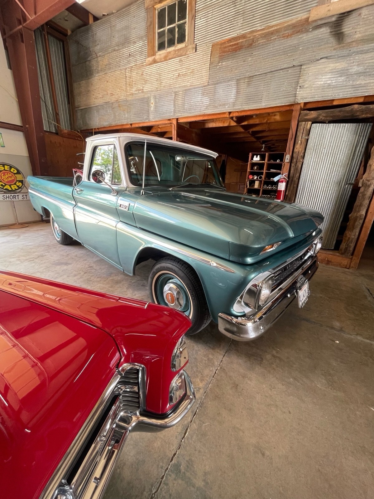 1966 Chevrolet C-10 long bed 2 wheel drive truck. which is an original vehicle that the owner has had for 3 years. Purchased from original owner who spent $8000 on paint job 4 years ago. The truck is in aqua blue/ green color and has a clean title. It has a mileage of 47,000miles. Truck was stored in his barn and not driven much. Just around the farm. Today This vehicle is mainly used for car shows, and it runs great. It is a classic piece of American automotive history that is sure to be a standout at any event it participates in. 283 v8 3 on the tree. Smoot, quie, powerful and solid. Starts easy. Runs cool. Reliable. Has new wood bed and beautiful paint. Original color. Stock. Rust free as far as I can see. Tail gate is near perfect. Never used as work truck. Driven around farm to check on cattle. You won’t be disappointed with this cool old truck. I am selling most of my collection and retiring to Florida. I’m a collector not a dealer. All my vehicles are registered in my name and current registration and insurance in my name. Low reserve. I’m located in Hardy Arkansas and am willing to work with your shippers. Also open to meeting with auto inspectors. This is an honest clean real deal truck. Not mint !!! Minor imperfections. It’s not perfect but is gorgeous and admired by all. I may sell before auction ends as I have it for sale locally.