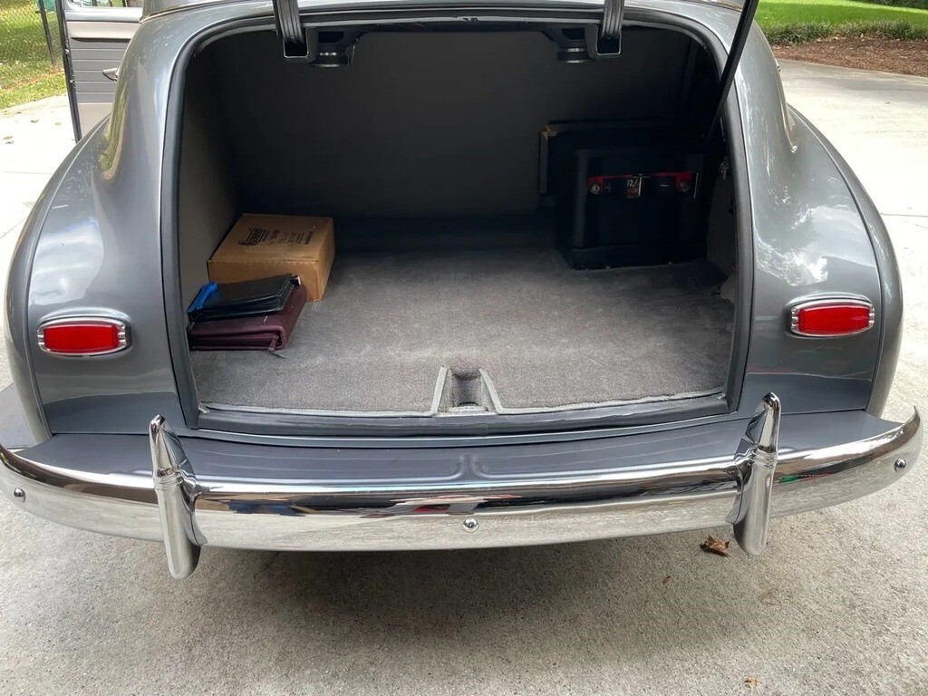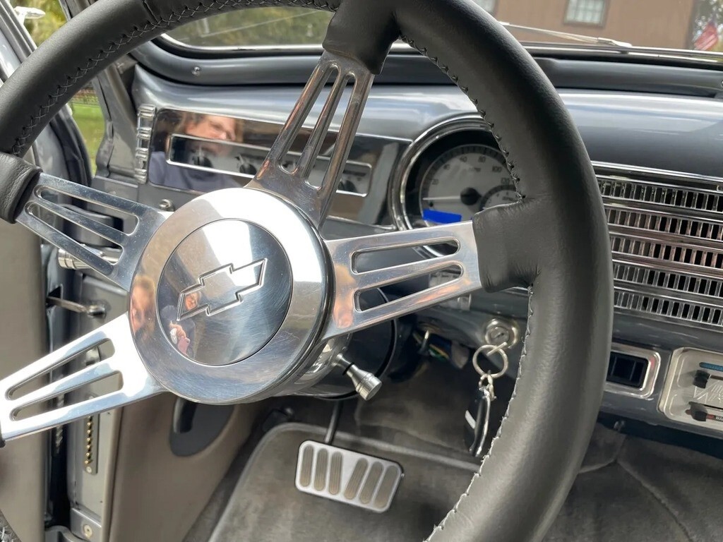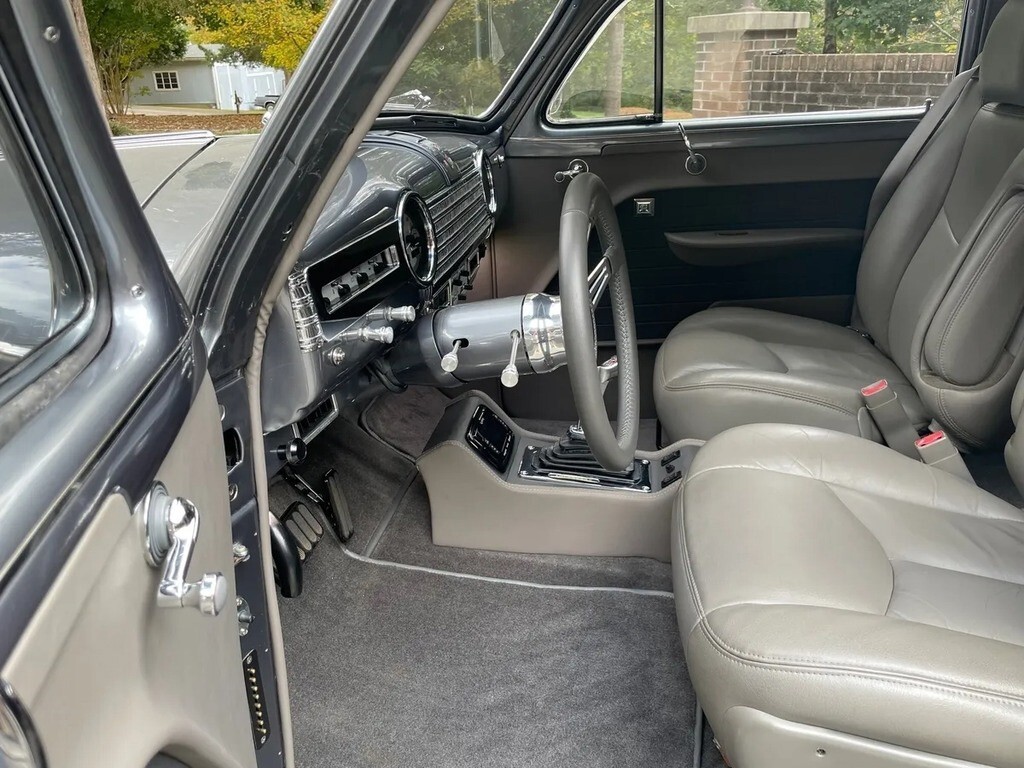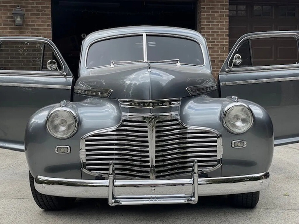 “For sale is a fully rebuilt and professionally customized 1941 Chevrolet Special Deluxe 2-Door Sedan, originally a clean, rust-free California car purchased in running condition. This classic underwent a complete body-off restoration, with no rust or damage discovered during disassembly. The body was fully stripped, primed, and finished in a stunning BMW metallic gray, accented by polished original stainless trim and re-chromed show-quality bumpers and accents. Under the hood is a powerhouse—a brand-new GM 572/620 HP crate engine, paired with a GM 6L85E heavy-duty overdrive transmission and ECU kit. It’s backed by a 9” Ford rear end with a new posi unit, and rides on a fully modernized chassis featuring independent front suspension, coil-over shocks on all four corners, front disc/rear drum brakes, and a new fuel system including tank, electric pump, and vacuum pump for power brakes. Exhaust is handled by 2 1/8" headers to 3.5" collectors, flowing into a full 3" system with electric cutouts just behind the headers—street or strip at the push of a button. The interior is just as refined, featuring late-model Tahoe leather front seats, matching custom gray rear seat, door panels, headliner, and carpet. Amenities include Vintage Air A/C, a B&M Megashifter, custom center console housing controls for the electric fuel door and exhaust cutouts, and a modern stereo/Sirius system. You'll also find custom digital gauges, a complete new wiring harness, tilt steering, power windows, and remote keyless door locks. This '41 Chevy Special Deluxe blends vintage style with modern muscle and comfort. It’s a classy, street-ready rocket—ready for your personal choice of wheels and the open road.”