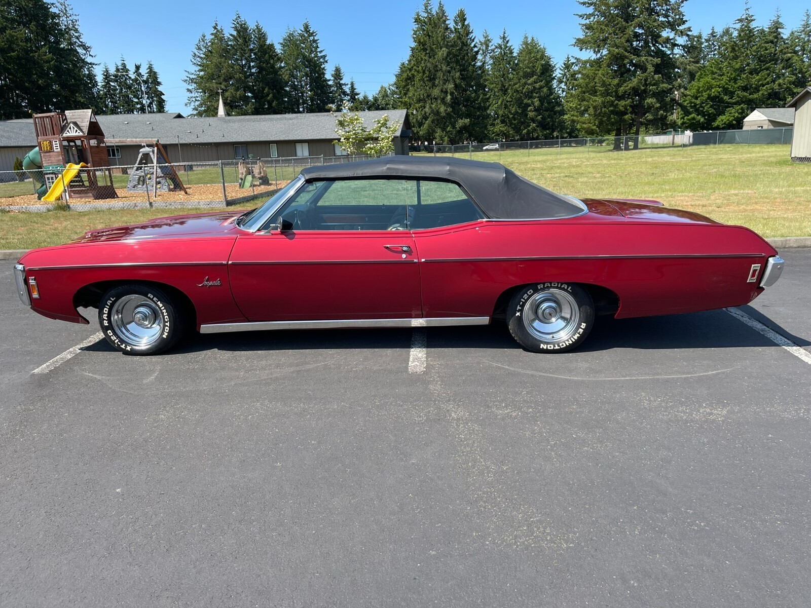 Up for a 7 day worldwide no reserve auction is this 1969 Chevy Impala convertible. This is a super sweet car and very fun to cruise around. The engine is a 327 that runs very smooth! The auto transmission shifts good. This car runs, drives, stops and handles down the road good. Very dependable runner and always starts! Mechanically its in good reliable shape. The exterior looks great! The body is pretty straight and clean. The paint is older but still looks really good. The power convertible top goes up and down easily! The top is also in good condition. Overall the exterior presents very well and turns a lot of heads! The interior is clean but does have a tear on the driver seat. Dash is in good shape. The carpet is all intact but is sun faded. The odometer does not work along with other gauges. Overall the interior is in good shape as well! Trunk is very dry and clean! The underside is also dry and free of any rot. This car is in nice daily driver condition as is and is ready to be enjoyed! Very fun to cruise around in! This car is selling with NO RESERVE so please be prepared to purchase! I am willing to end the auction early of someone is serious! If you have anymore questions please feel free to ask