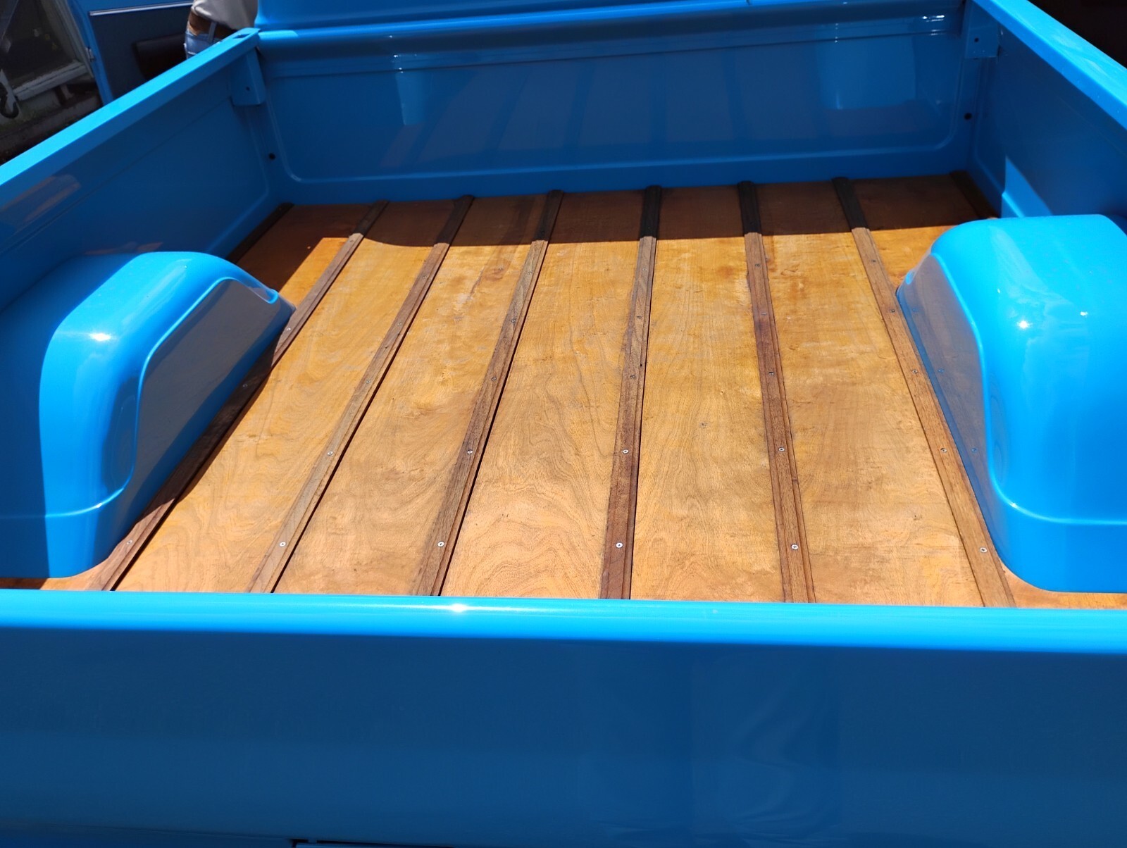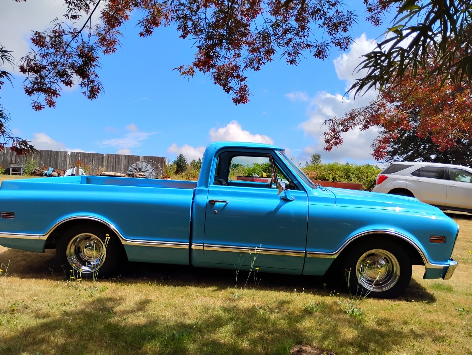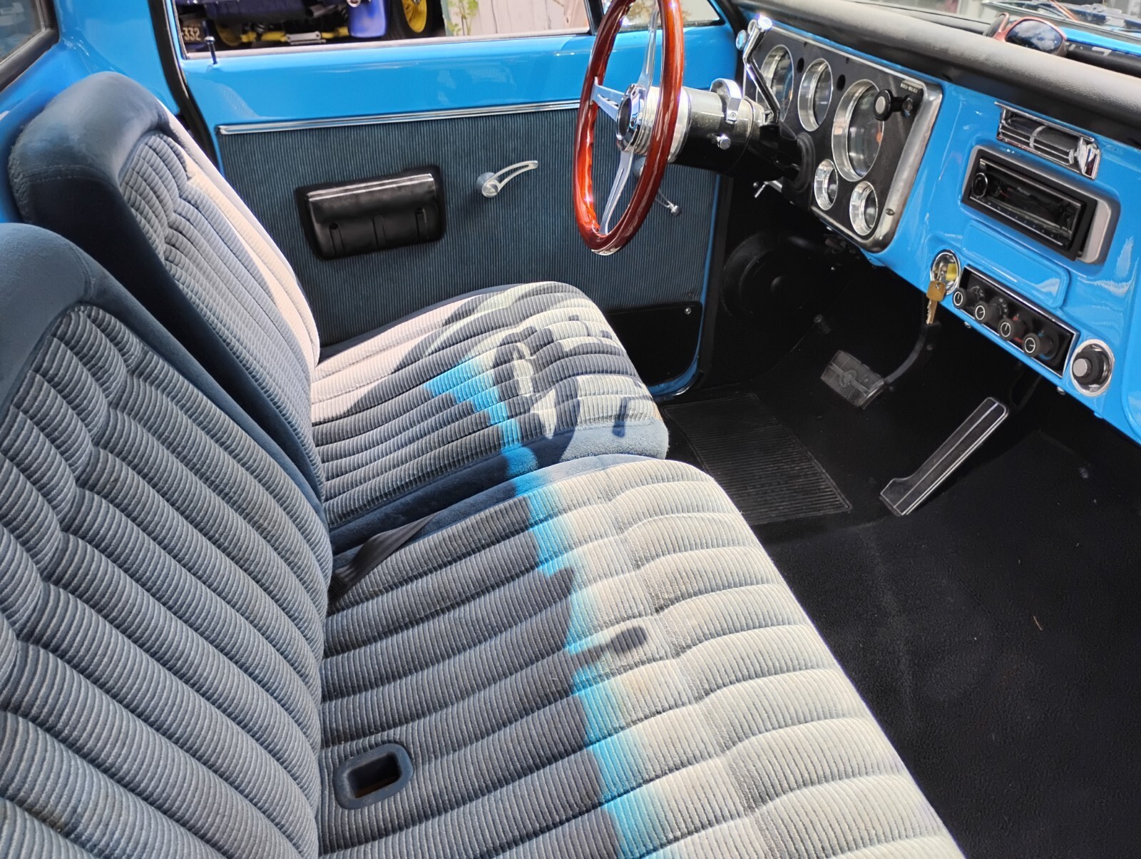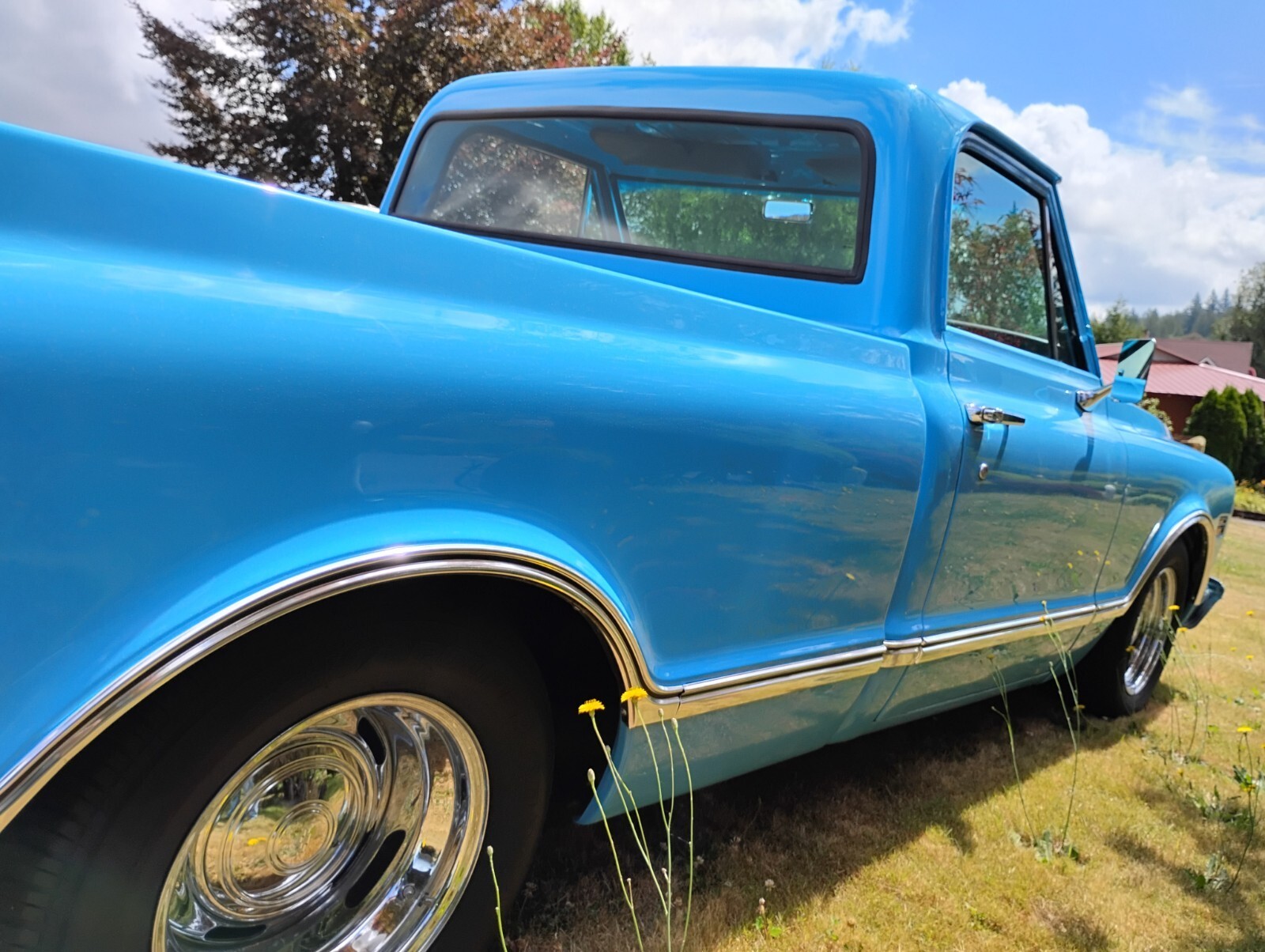 Fully restored custom 1968 Chevrolet Short-Wide Pickup. Rebuilt original 327, rebuilt Turbo 400, new vintage A/C. Subtly chopped 2.2 inches. Beautiful wood bed. Gorgeous fresh blue finish. Late model seats, new glass, wheels, staggered tires, bed sides, moldings, front bumper. Dual Flowmaster exhaust sounds rumbly.Outstanding, tastefully customized example of one the 60's most sought after pickup trucks.