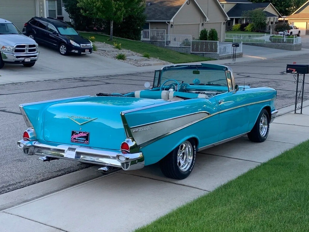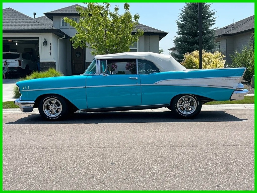 1957 Chevrolet Bel Air Convertible For Sale in Nampa, ID 83686 This Bel Air is powered by a 390HP 350 V8 engine paired with a 700R4 automatic transmission. It is shown with a turquoise exterior and a matching turquoise and ivory interior. This vehicle has been upgraded for modern performance and has been garage-kept and well-maintained. Features Soft Top Vinyl Interior Dakota Digital Dash Chrome Accents Throughout Owner’s Notes “1957 Chevrolet Bel Air Convertible that’s been thoroughly and thoughtfully updated for modern performance w