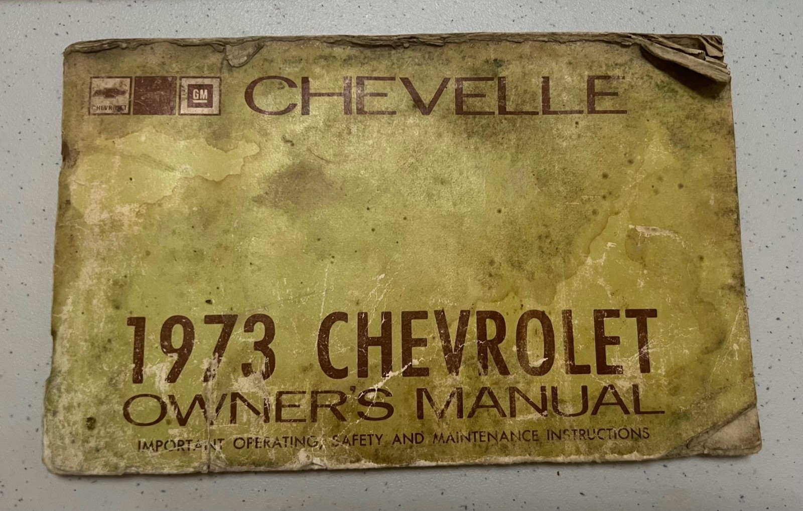 1972-73 Chevrolet El Camino. VIN history shows it was built in 1972. Registration shows 1973. Original owner's manual that came with the car is for a 1973 Chevelle (see photo).