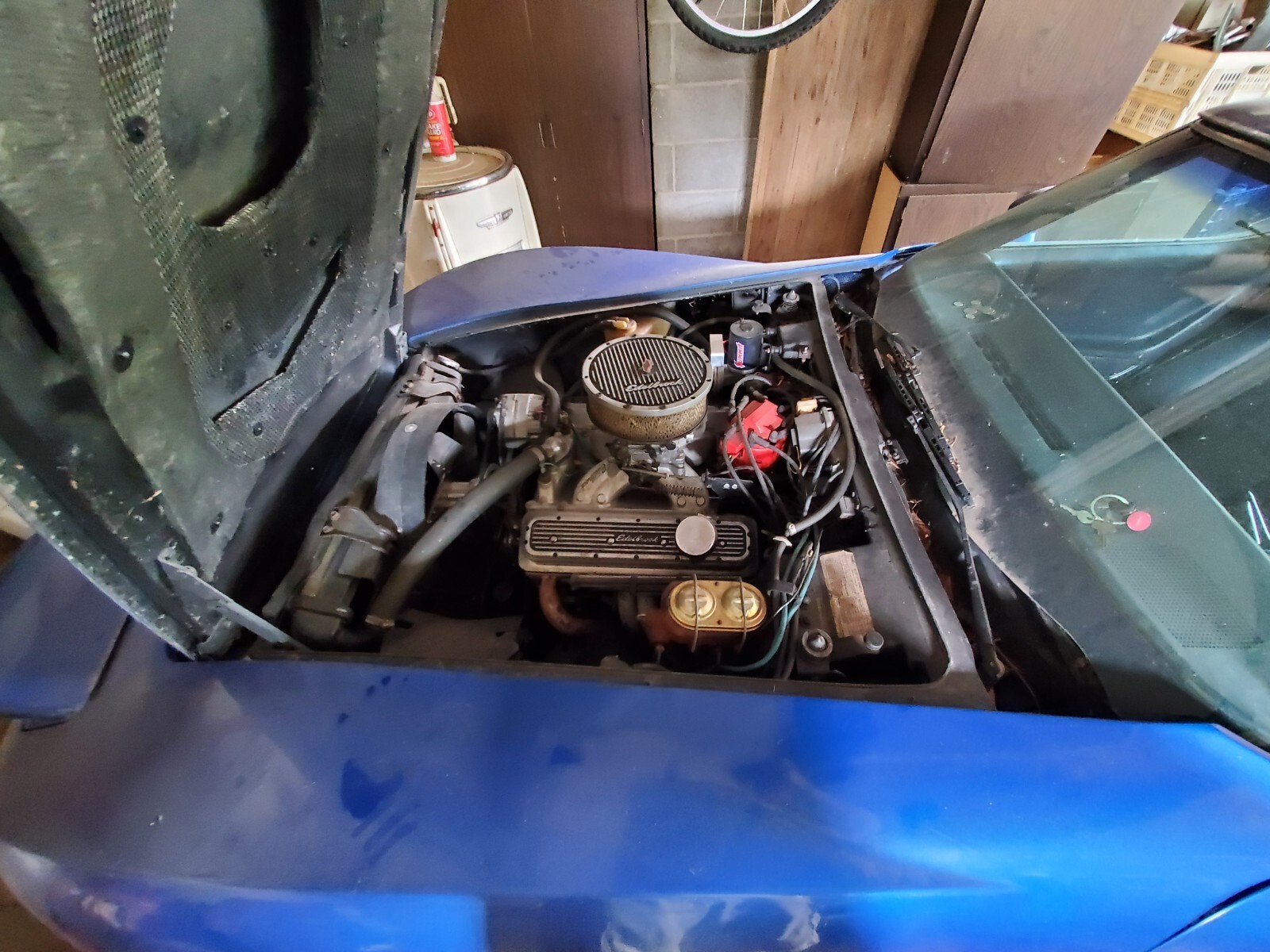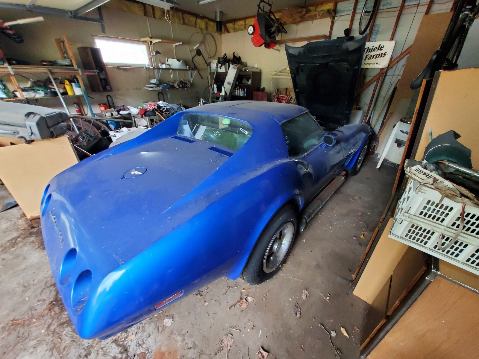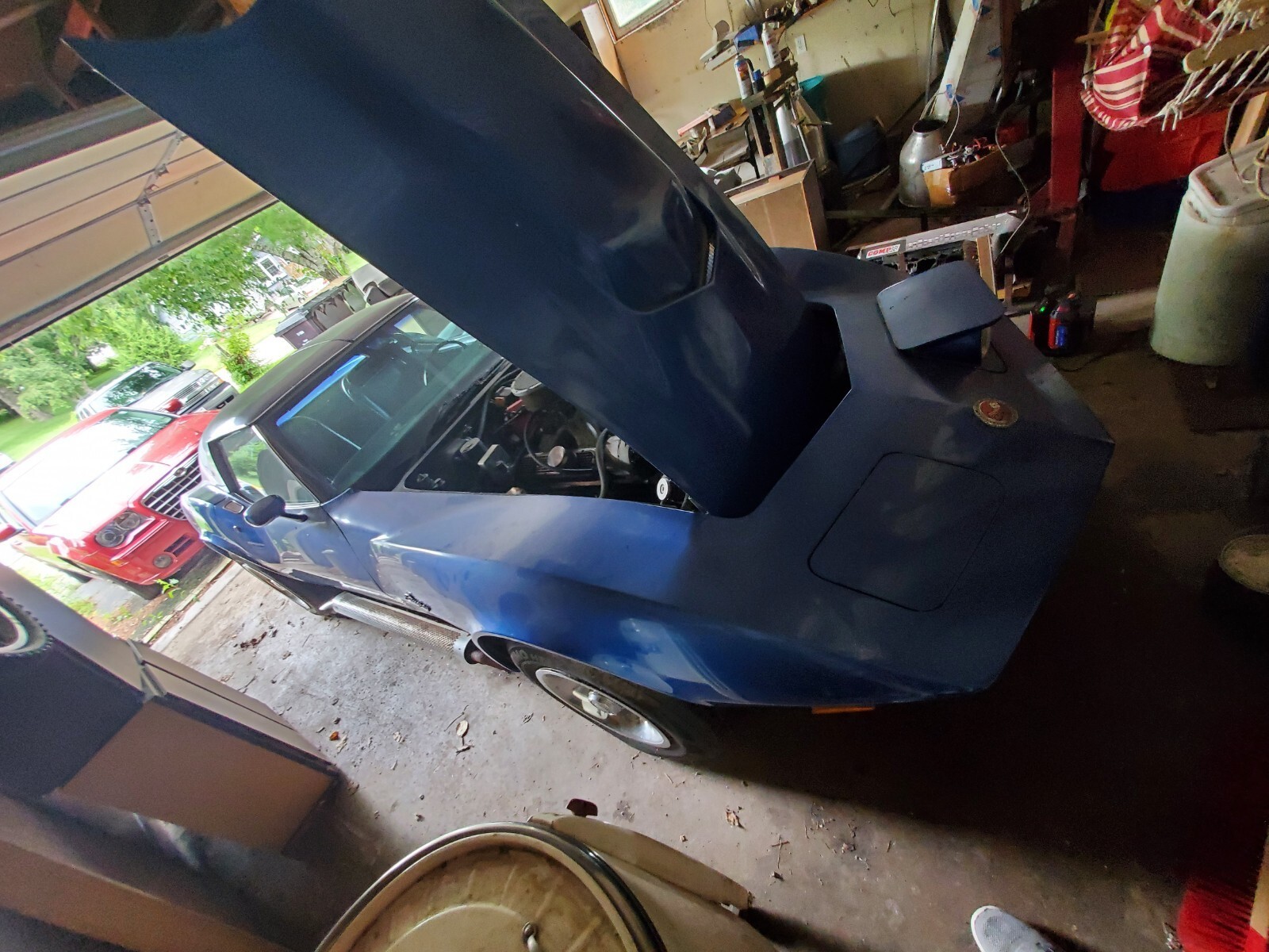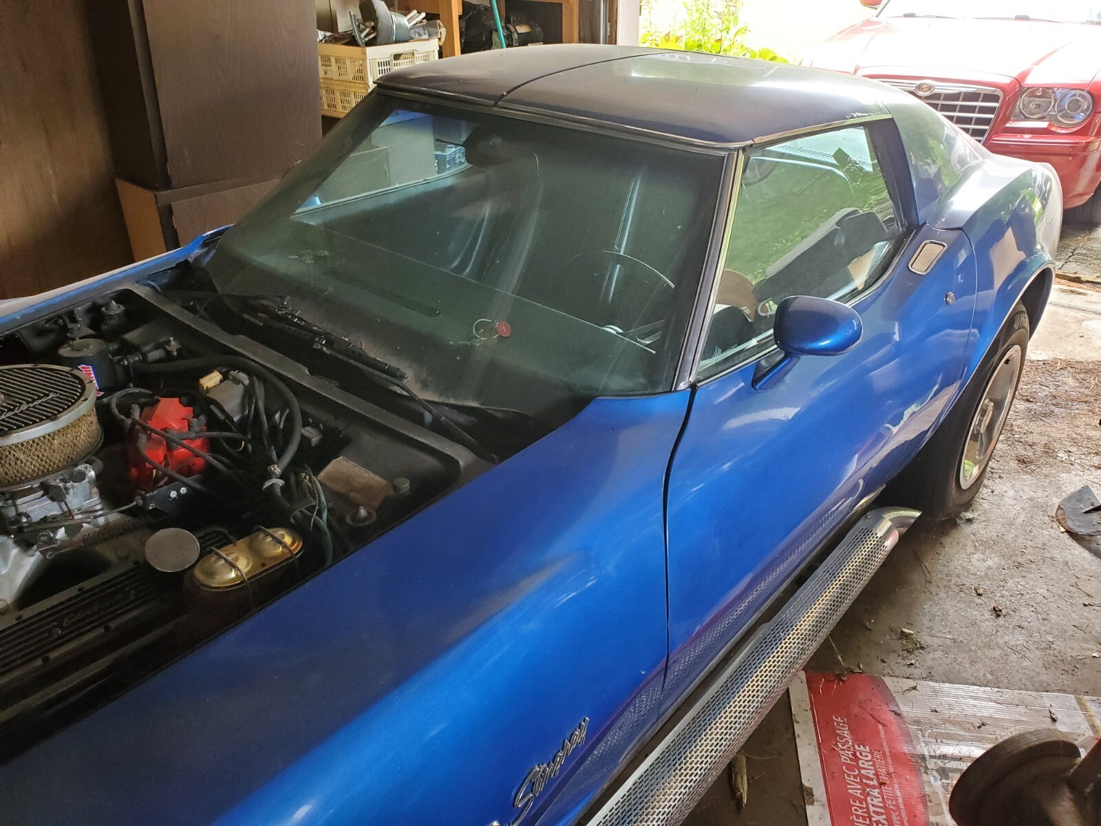 This once beautiful (and very fast) Corvette was owned by my father, and since his passing has been sitting. It has a supped-up small block engine and hood that produced over 430 HP to the rear wheels when tested on dyno. Car comes with original engine and hood. 4 speed manual transmission. Needs some work in order to drive. Since sitting, it has had brake fluid leak out the driver front caliper. Coolant leaked out radiator. Battery is dead. Other than that, it has no known issues. When it ran, it was a blast and could put you back in your seat with incredible acceleration. The car will need to be towed, along with the original engine and hood (at a separate location, within 1 mile of each other). We can help with loading it on a trailer if needed.