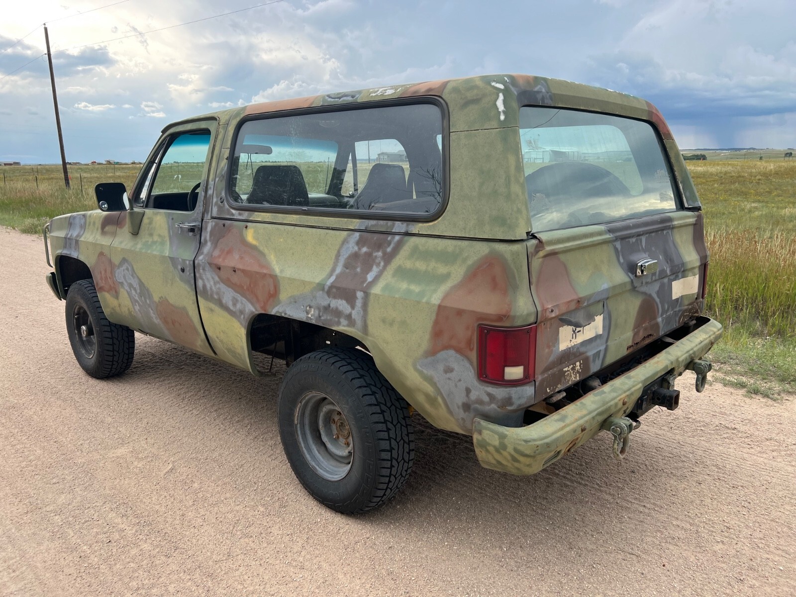 1984 K5 Blazer CUCV Turbo Diesel, very solid the only rust through is on the tailgate, runs and drives excellent, the Banks turbo kit makes this thing fun to drive, it rips! The interior has been professionally spray lined, the transmission was rebuilt by a reputable shop, Clean title, passes emissions, drive it home! Located in beautiful Calhan Colorado 7I9-6I9-7523