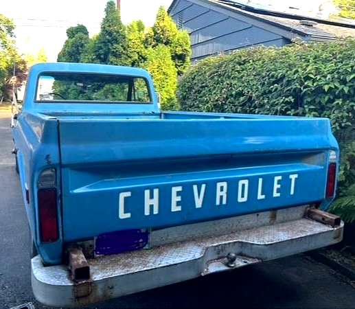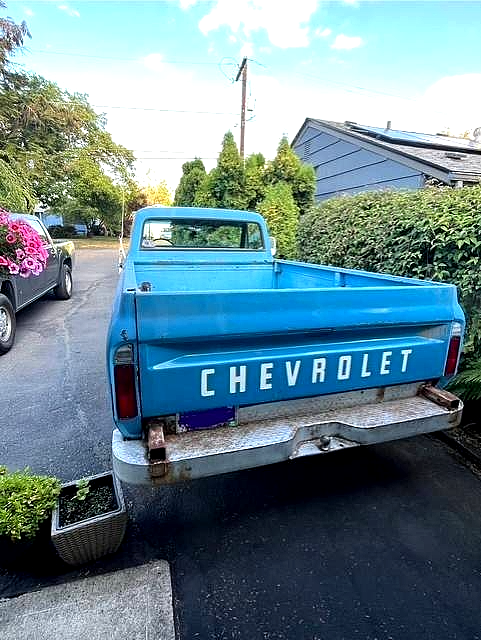 About: The truck has been used very sparingly for over five years. It was running well when used regularly. It now starts with starting fluid, but I suspect it requires a fuel pump Recently, I replaced the spark plugs, plug wires, oil, oil filter, fuel, and air filter. The seat has also been redone. Comes with 4 speed manual transmission, factory 350-V8, power steering and power brakes. While I was excited about redoing this truck, I unfortunately lack time and garage space to complete it. Will be a great truck when done. Very solid, and only 1 family owned. Truck is currently in Portland Oregon.