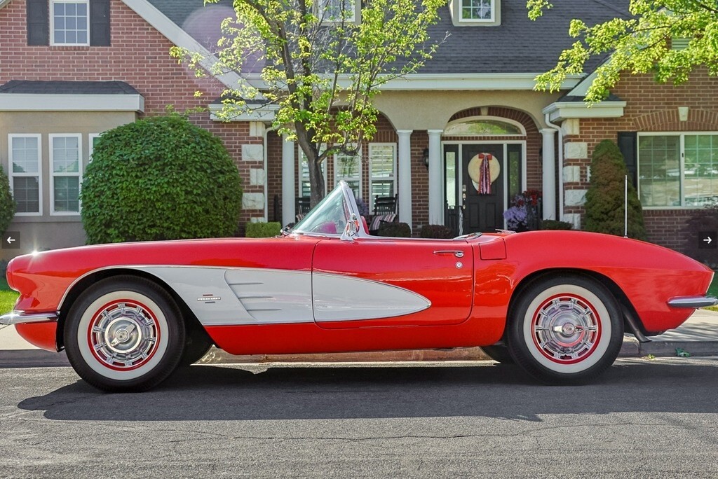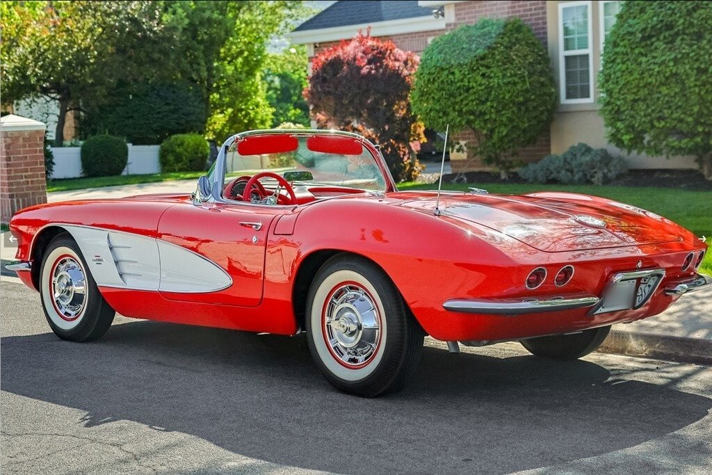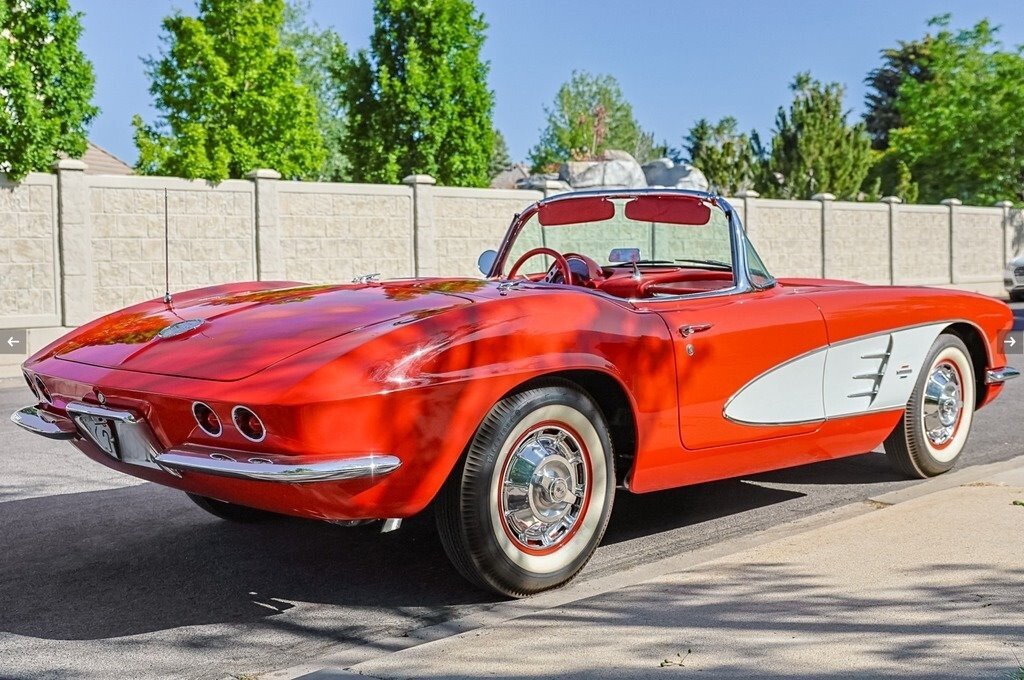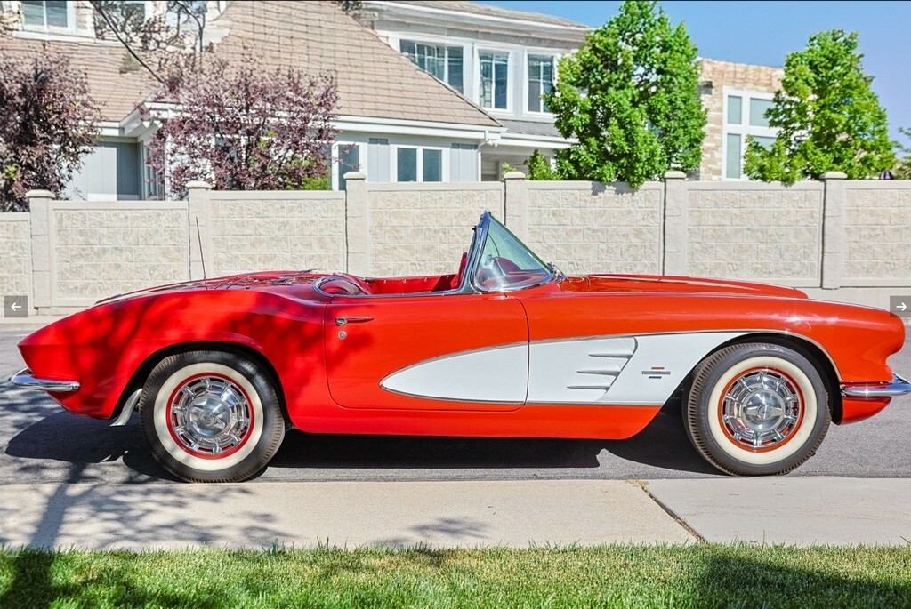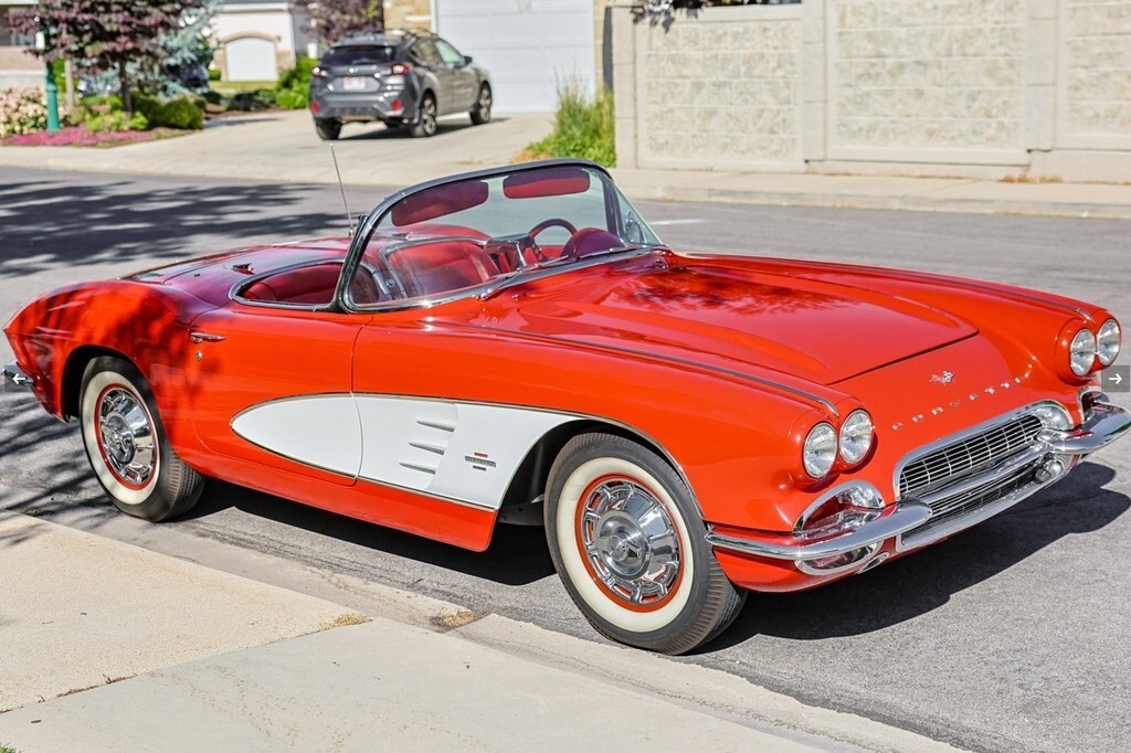 “For sale is a beautifully restored 1961 Chevrolet Corvette Convertible, finished in eye-catching Roman Red with Ermine White coves and a matching red interior. This C1 classic blends iconic styling with enhanced drivability, thanks to a strong Chevrolet 350ci V8 engine, electronic power steering, and a smooth 4-speed manual transmission. It comes with both a color-matched Roman Red removable hardtop and a new white soft top, offering versatility and style for any season. The restoration includes thoughtful upgrades like a discreetly installed Bluetooth module behind the original Wonderbar AM radio, allowing modern audio convenience while maintaining a stock appearance. Inside, you'll find red vinyl bucket seats, a full gauge cluster with a 160-mph speedometer and 7,000-rpm tachometer, and original chrome trim throughout. It rides on 15-inch red steel wheels with chrome covers and classic Firestone whitewalls. The odometer reads 60,439 miles (title marked mileage exempt), and it's currently registered with a clear title in Utah. Recent updates include the replacement of the original engine with a reliable and powerful 350ci V8, along with a custom audio upgrade. The speedometer needle and Bluetooth module are currently scheduled for service—this will be completed prior to sale, or the buyer will receive a $1,500 credit if not done in time. Whether you're looking to cruise on the weekend or turn heads at shows, this Corvette delivers a perfect mix of vintage appeal and modern usability. Privately owned and garage-kept, it’s a true standout that’s ready for the road or the concours lawn.”