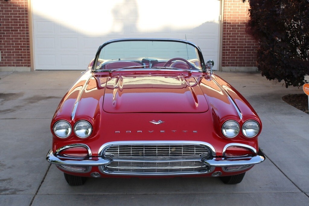 1961 Chevrolet Corvette Convertible For Sale in Orem, UT 84097 This Corvette is powered by a 350ci V8 engine paired with a 4-speed manual transmission. The odometer reads 60,439 miles and is shown with a Roman Red exterior with Ermine White coves and a matching red interior. This vehicle has been fully restored and has been garage-kept and well-maintained since. Features Full Restoration Dual Tops (Soft & Hard) Vinyl Bucket Seats Upgraded Stereo System w/ Bluetooth Chrome Accents Throughout Electronic Power Steering Dual Exhaust System