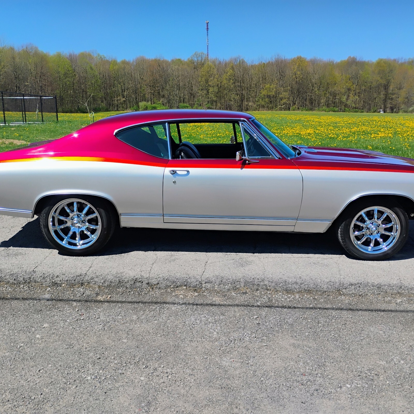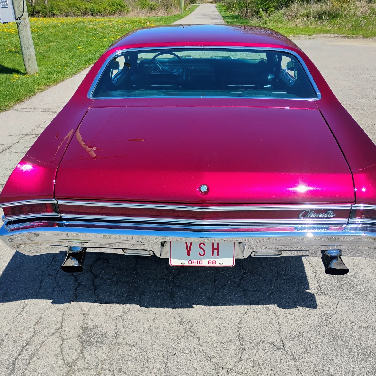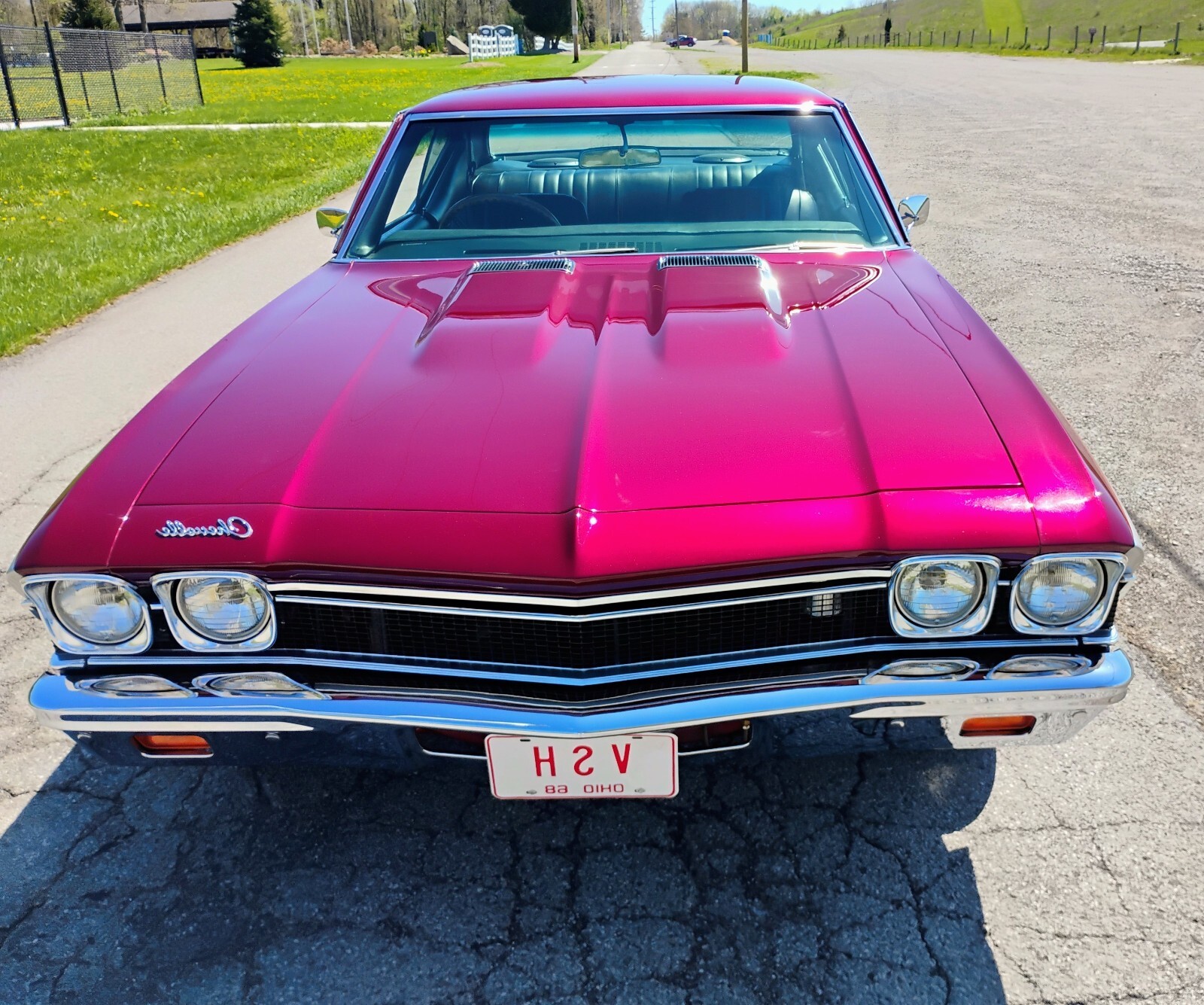 Up for sale is a one of a kind pro touring 68 chevelle,show quality high end custom paint job.Gm performance 454 aluminum head crate motor,modified turbo 400 trans with a ford nine inch rear and 355 gears and moser axles.4 Wheel wilwood disk brakes.3 inch flowmaster exhaust,Ridler billet wheels with performance tires.Custom dash and gauges with blue tooth radio bucket seats and console. This chevelle is just as nice underneath as it is on top one of the nicest chevelles for sale for the money available.Serious questions please call 330-502-2698