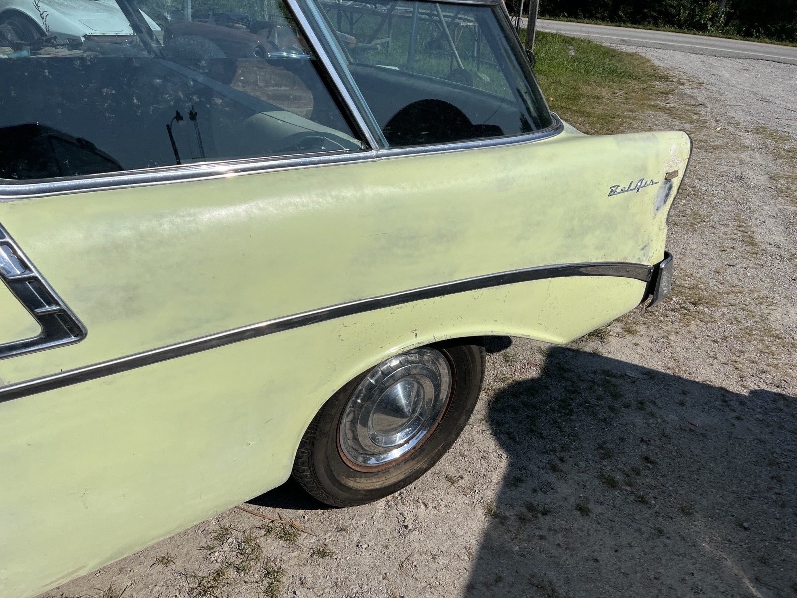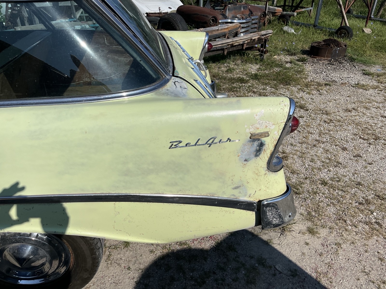 I am selling this for a good friend. He has owned the car for over 35 years. It was purchased as part of a 55-57 Chevy collection purchased over 35 years ago. The car ran and drove when parked in a barn 35 years ago. Still runs and drives now( brakes work but soft)