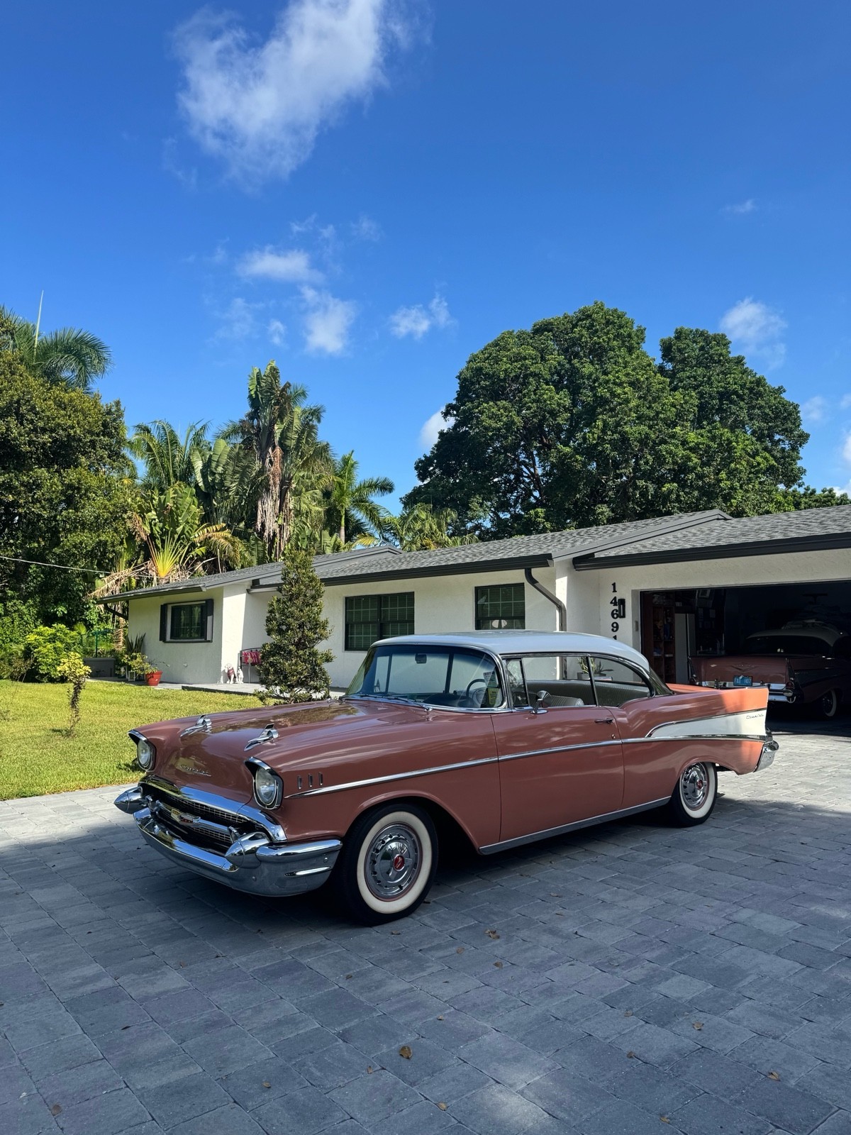 1957 Chevrolet 210 fresh 350 crate engine and 700R transmission griffin radiator one belt kit front disc brakes power steering a/c perfect chrome and glass 100% solid car never had any rust on it.
