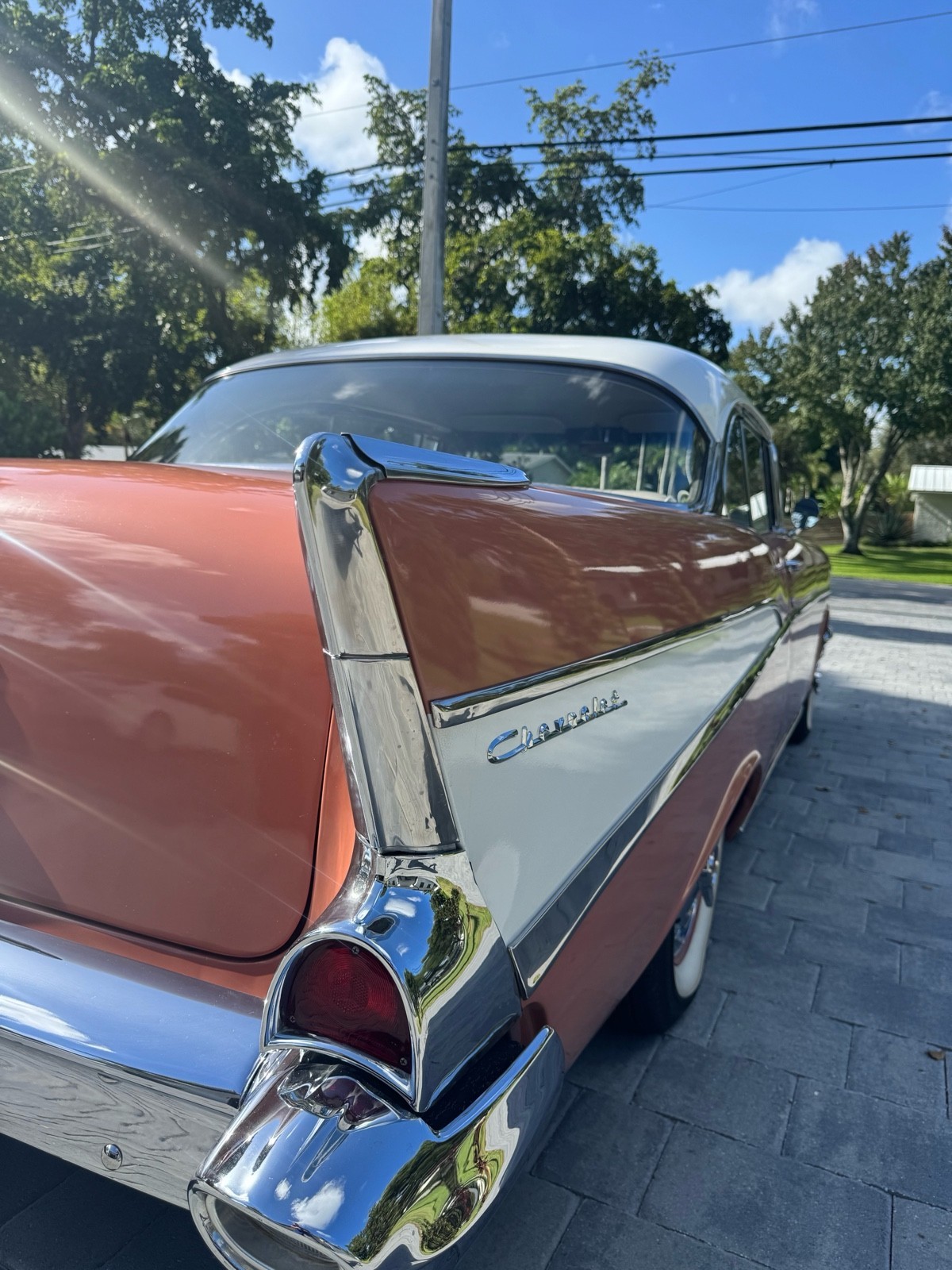 This 1957 Chevrolet 210 is a restomod that has been owned by the current owner for 2 years. The vehicle runs great and is primarily used for car shows. The bright orange color adds a unique and stylish touch to the classic Chevrolet design. With only 88,000 miles on the odometer, this clean and well-maintained car is sure to turn heads at any event.