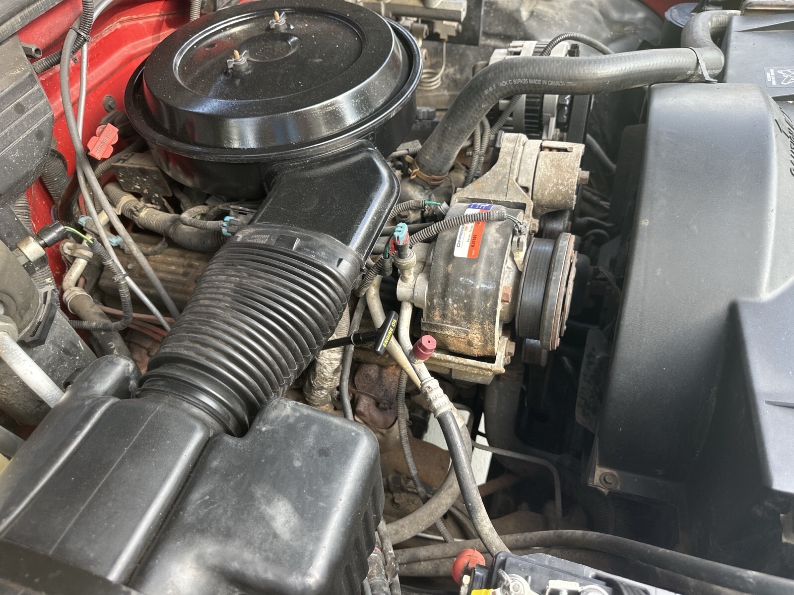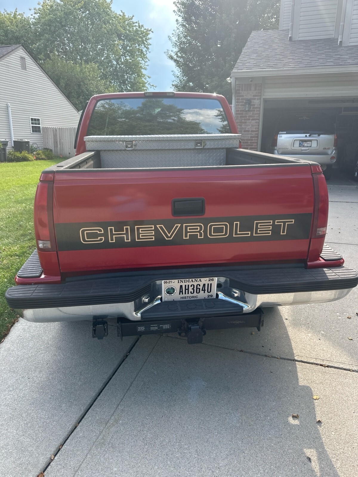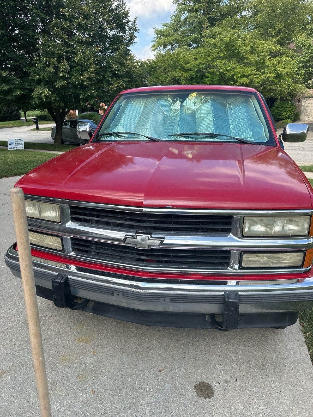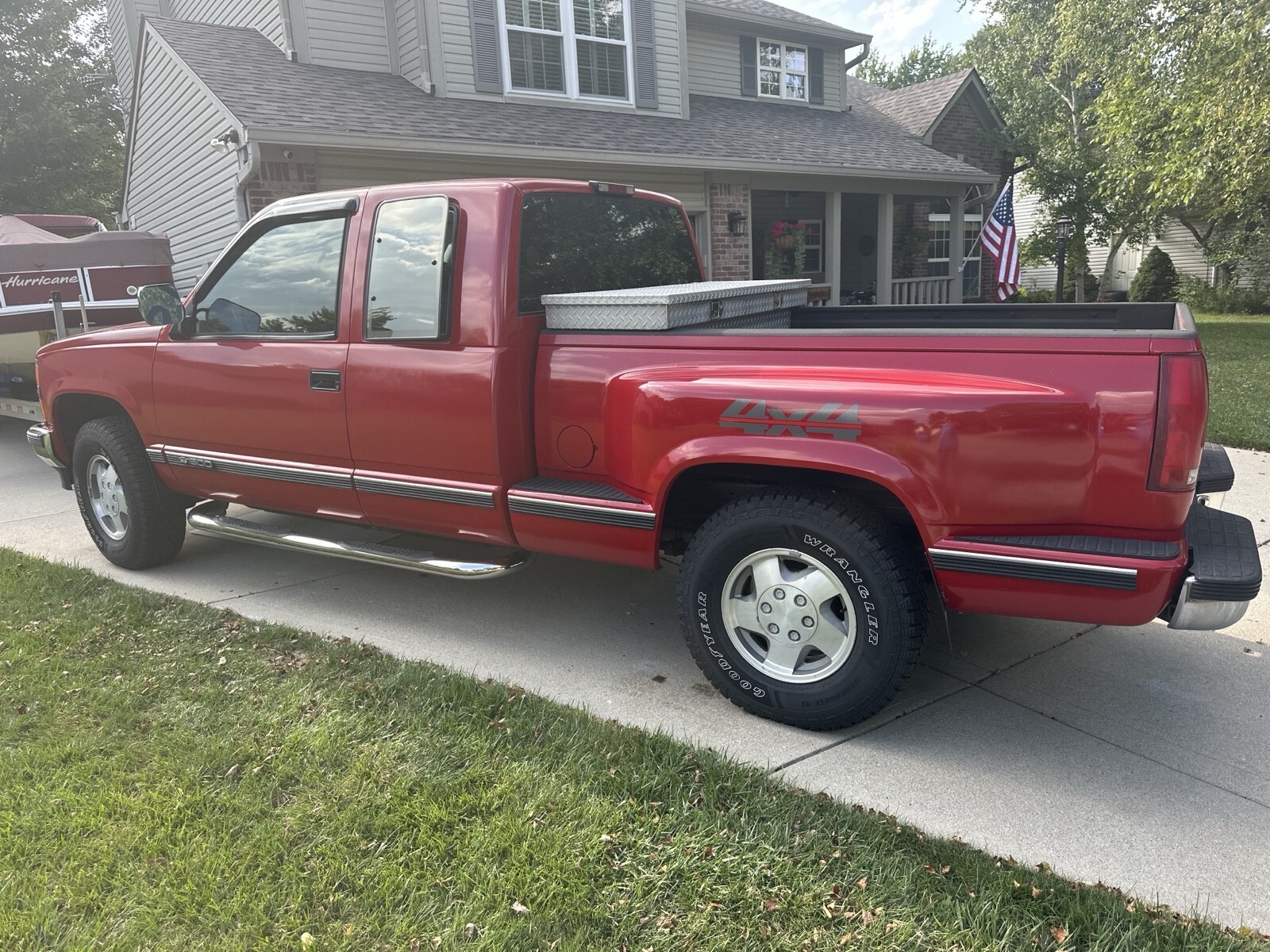 Red 1994 Chevrolet K/1500 Silverado step side truck. This truck has no body rust and was under coated when new. It also has a new muffler and tail pipe. The only significant thing that doesn’t work in the gas guage.