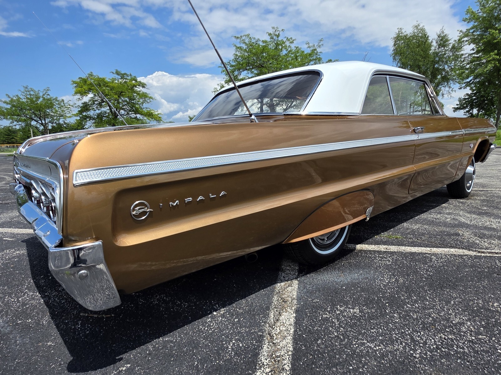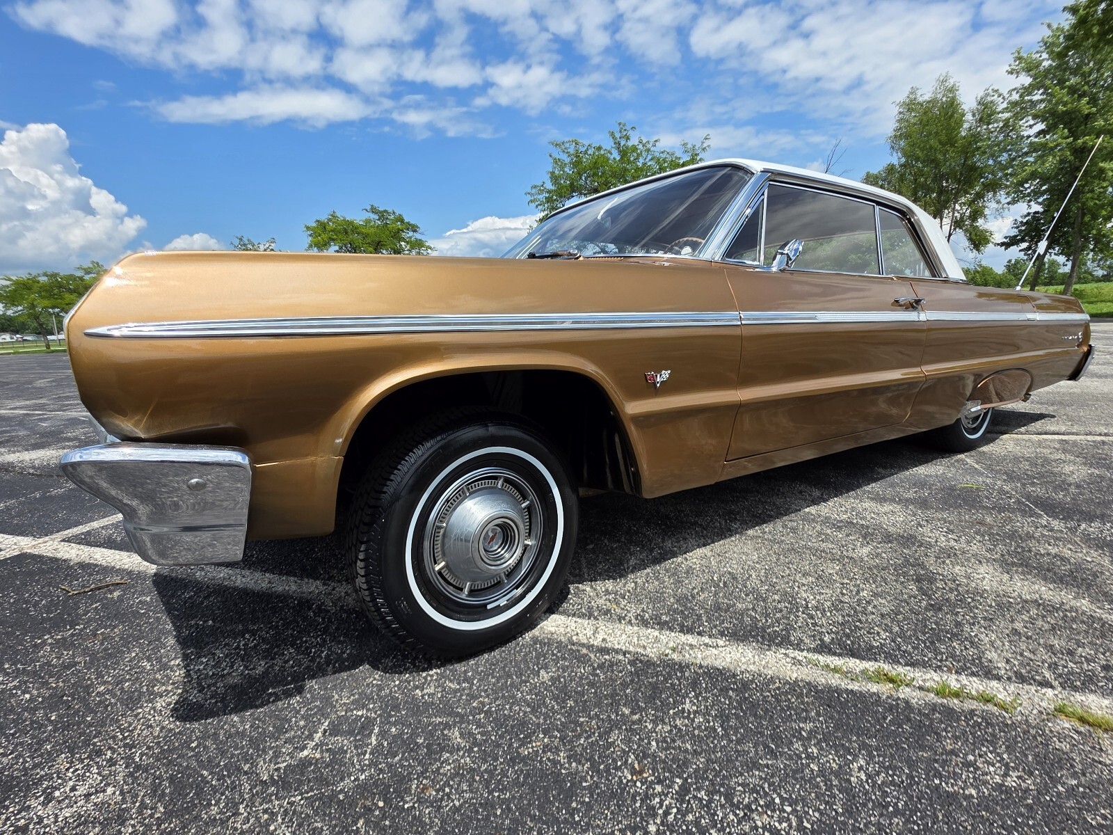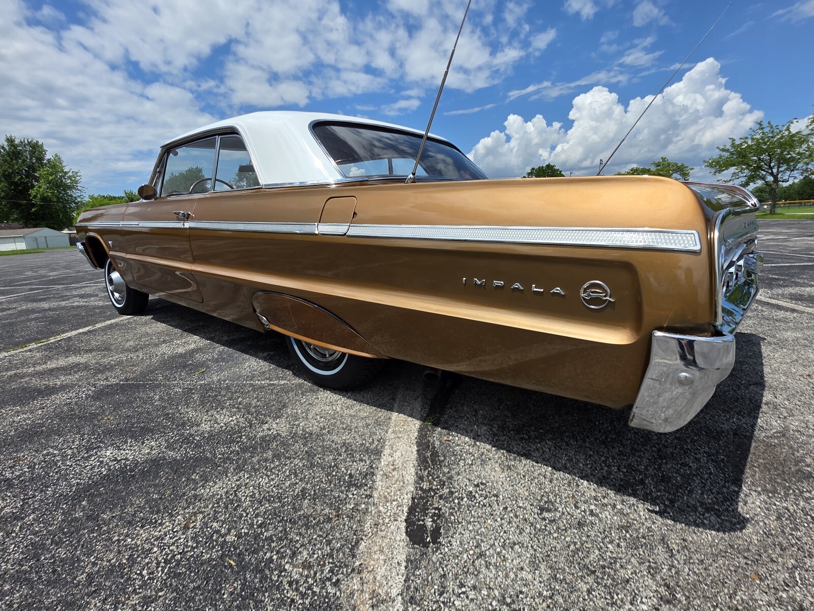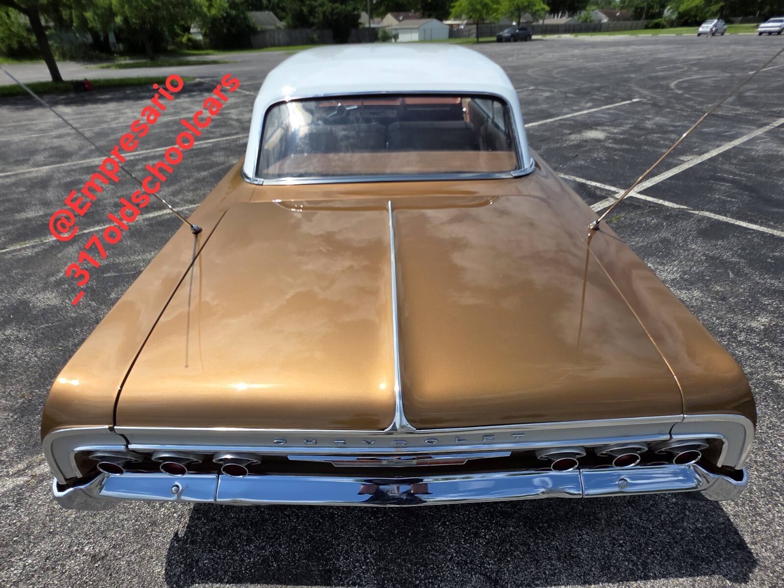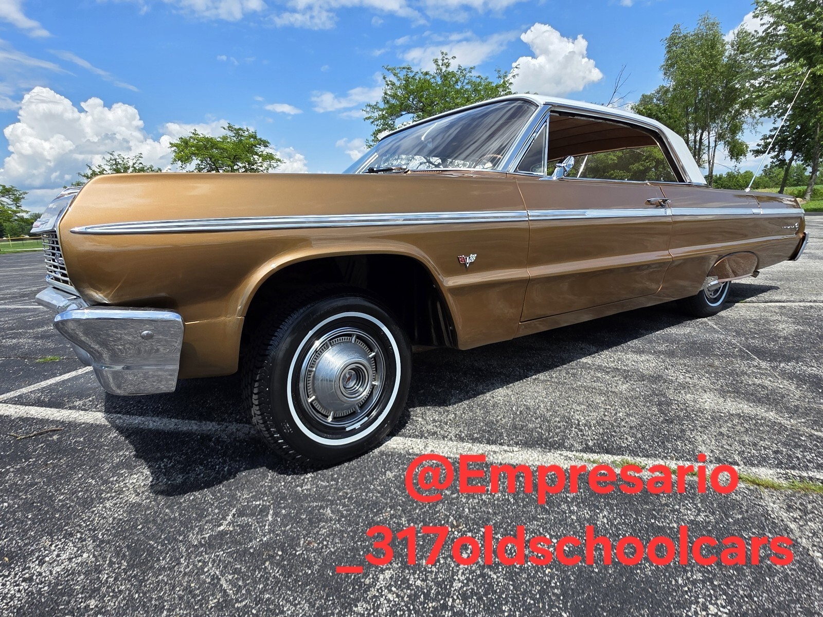 1964 Chevrolet Impala. 327 V8 engine w/ TH350 automatic transmission. Factory color saddle tan poly with white top. Factory power steering. Runs & drives great. Clean custom interior. Aftermarket full audio system. Custom panels in trunk. Factory wheels. Double antennas. Skirts. Brand new springs, that haven't even been broken into yet. Floors and trunk are solid. Very clean car all around. Great cruiser. Clean title! No trades. $35,000. Located in Indiana.