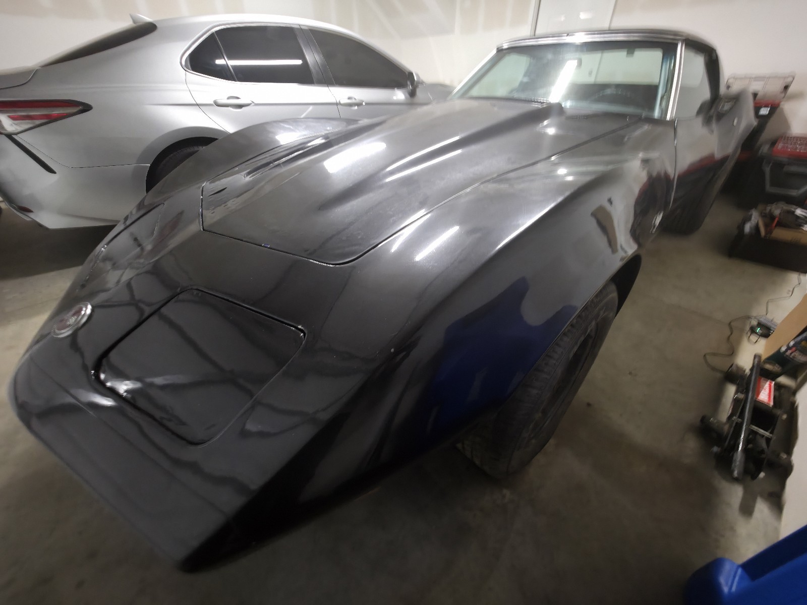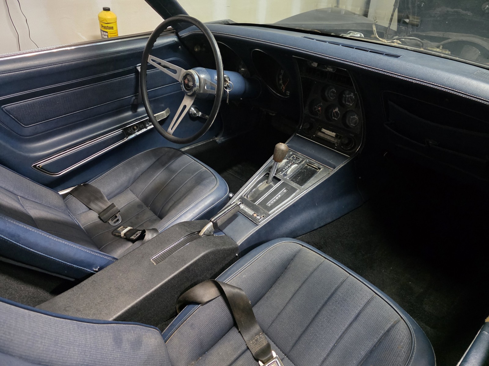 It's a 1973 Corvette, blue interior and exterior was originally blue but painted black.