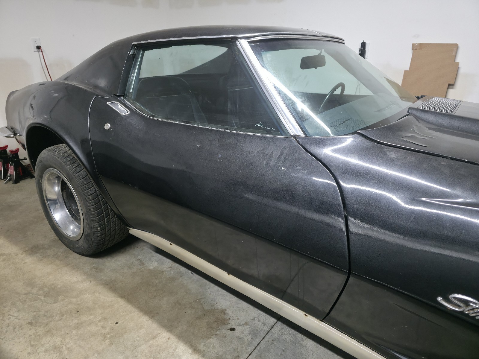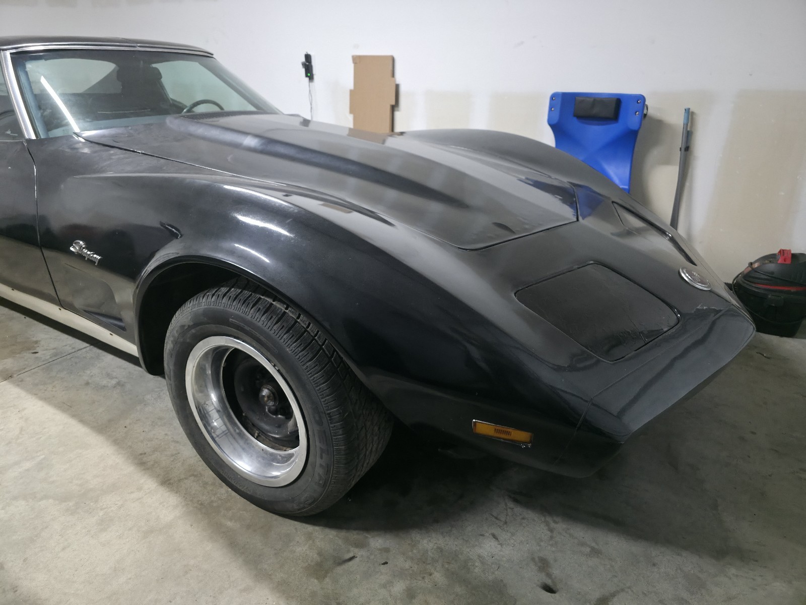 I got a 1973 corvette, interior is in really good shape, new carpet, new rotors, new brakes, new radiator, new gas tank, new tires etc..probably missing things but car was running before I started refurbishing the brakes and replacing gas tank, brand new 200$ battery. Brakes need to be bled, and gas tank needs 2 more bolts and rubber anti rattle rubber to be put in, carb also has a leak in one of the gaskets, I have the new rebuild kit for the quadrajet and also have the new caliper seals kit. Title is on the way should be here in less than 2 weeks, already got the new plate / registration. Body is in good shape but it needs to be repainted.