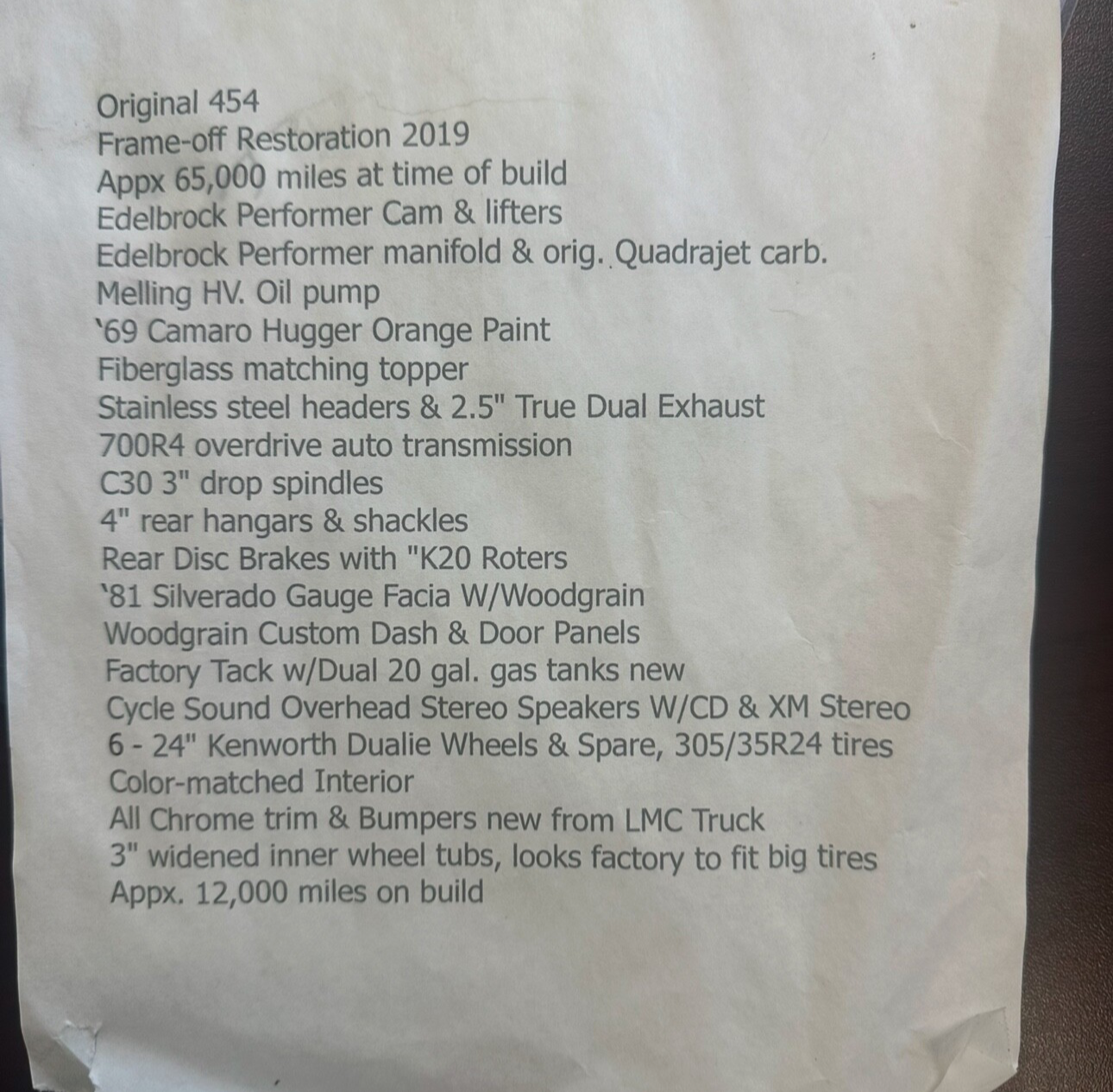 Photos speaks for itself. No need to try and sell with my words.. If you know them you know… Solid truck that turns heads. Ac and heat work great, shifts and runs great, all 6 tires plus spare have plenty tread with less than 5k miles on them.. This truck is ready for the next owner. Can be a show truck, daily driver, doesn’t matter, it’s ready for anything.
