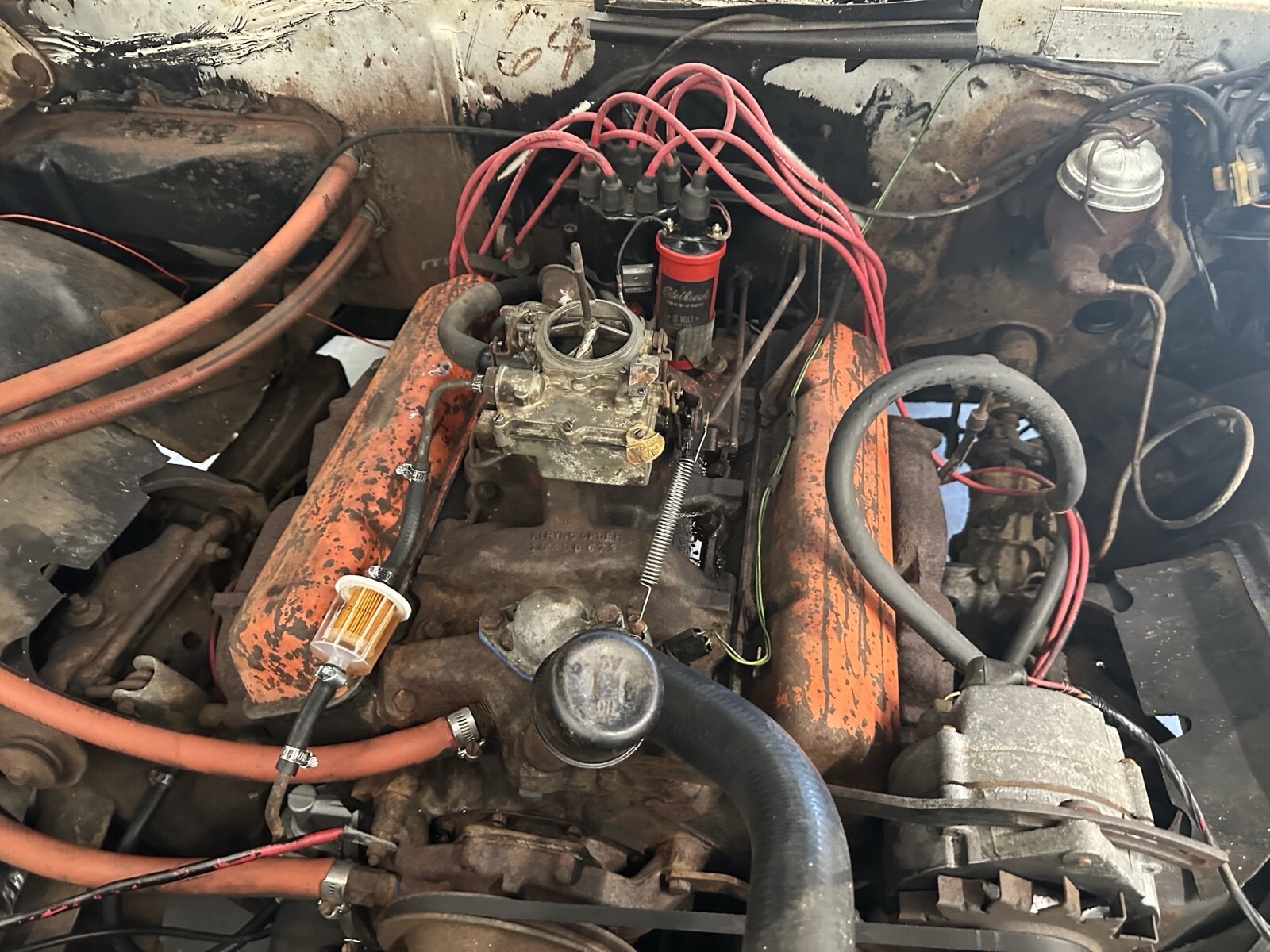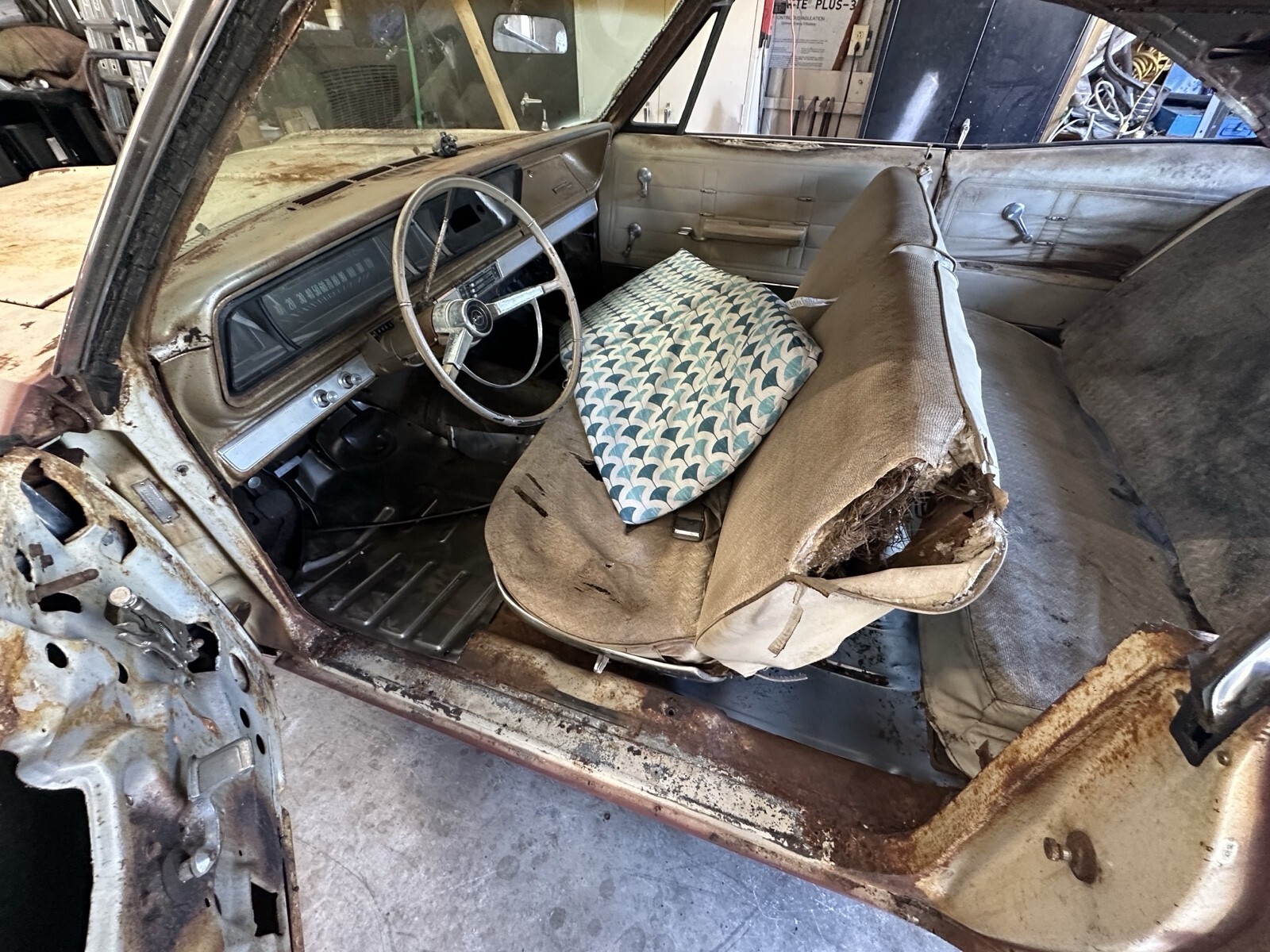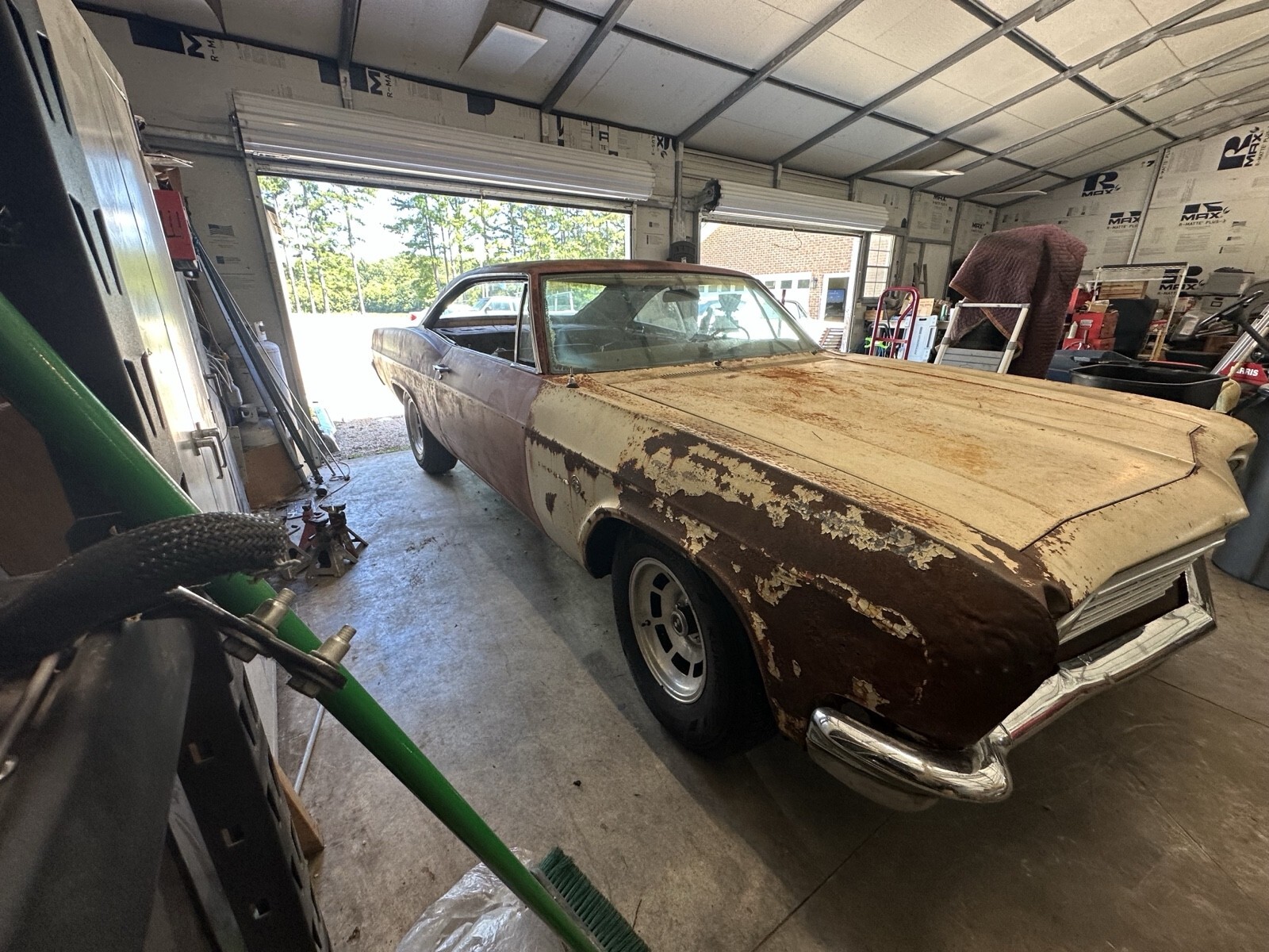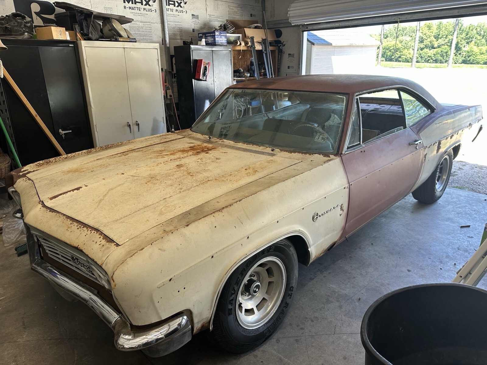 66 Impala with SS interior package most of the chrome is present. It does need floor pans and bodywork as a 283 two barrel new fuel pump rebuilt carb.